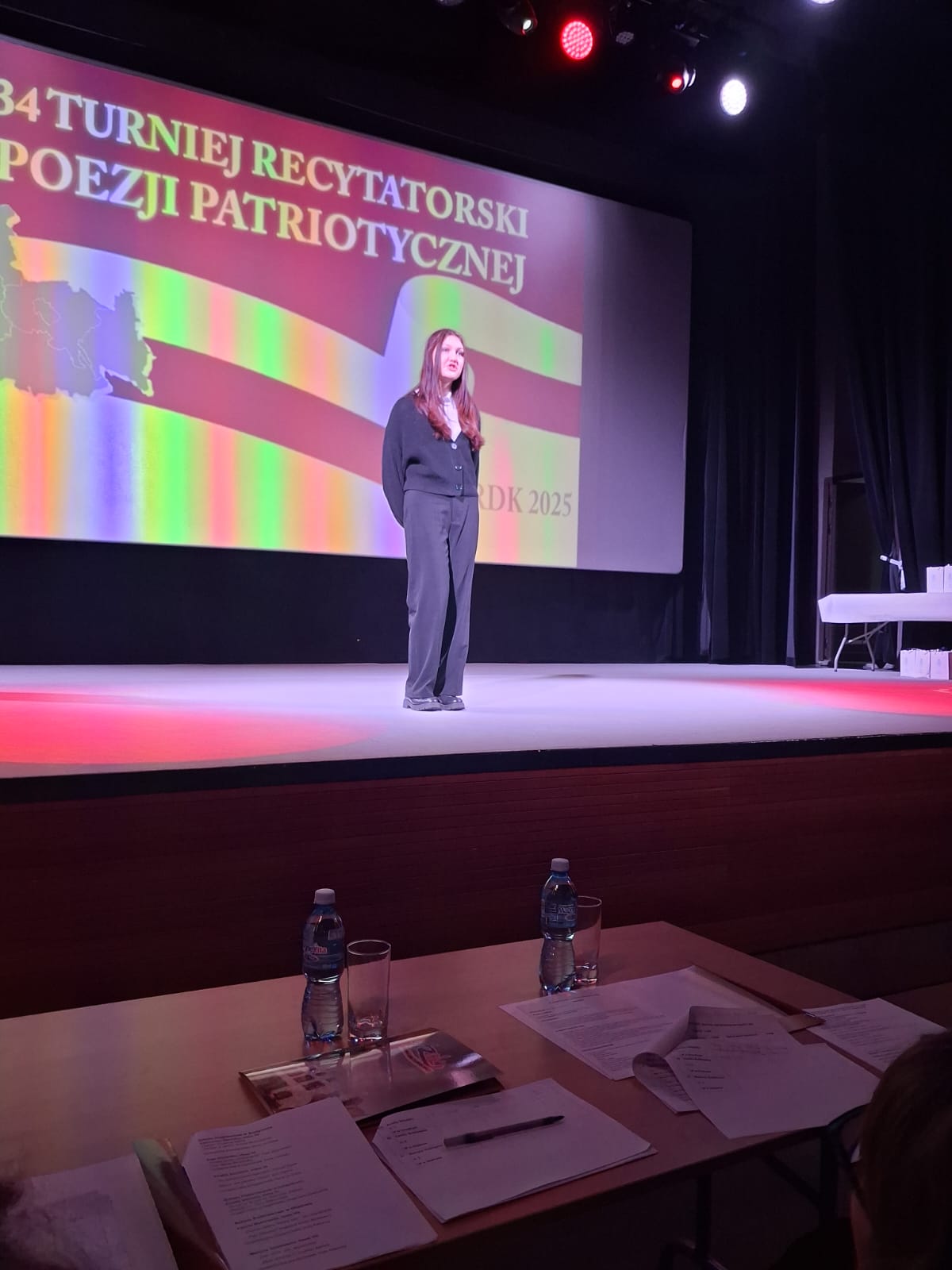 W piątek 14 listopada 2025 roku uczennice klasy ósmej: Kamila Watkowska i Martyna Staśkiewicz reprezentowały naszą szkołę podczas 34. Turnieju Recytatorskiego Poezji Patriotycznej, który został zorganizowany przez Rypiński Dom Kultury. Cele konkursu to: uczczenie rocznicy Narodowego Świętego Niepodległości, popularyzacja poezji patriotycznej wśród dzieci i młodzieży i promocja naszych małych ojczyzn poprzez ich twórców. Każda z dziewczyn zaprezentowała dwa utwory poetyckie o tematyce patriotycznej, w tym jeden stanowił twórczość poety z regionu.