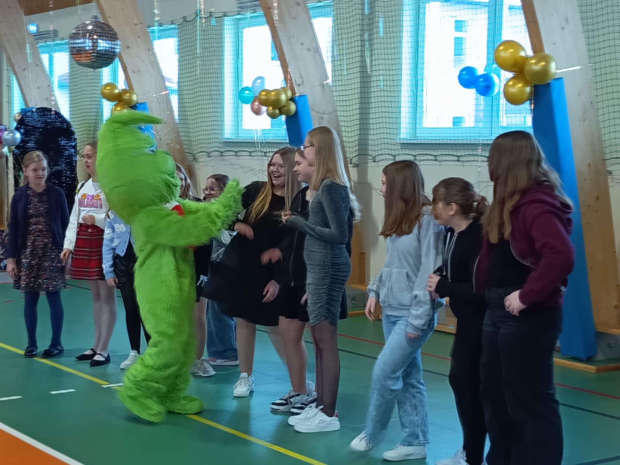 Nie zabrakło także wyjątkowej niespodzianki – żywa maskotka Grincha wzbudziła mnóstwo emocji i uśmiechu. Dzieci chętnie robiły sobie zdjęcia oraz bawiły się wspólnie z nietypowym gościem.