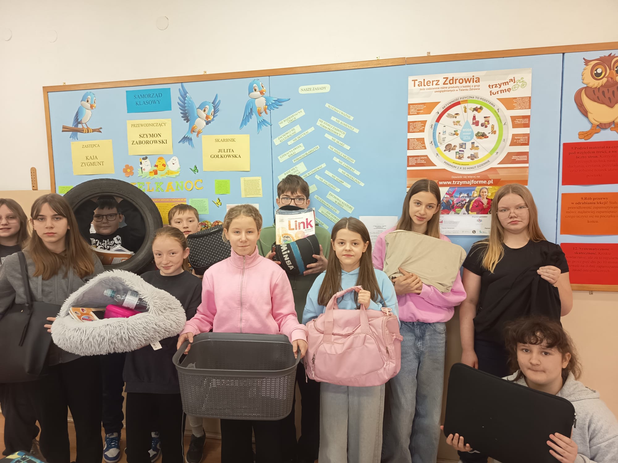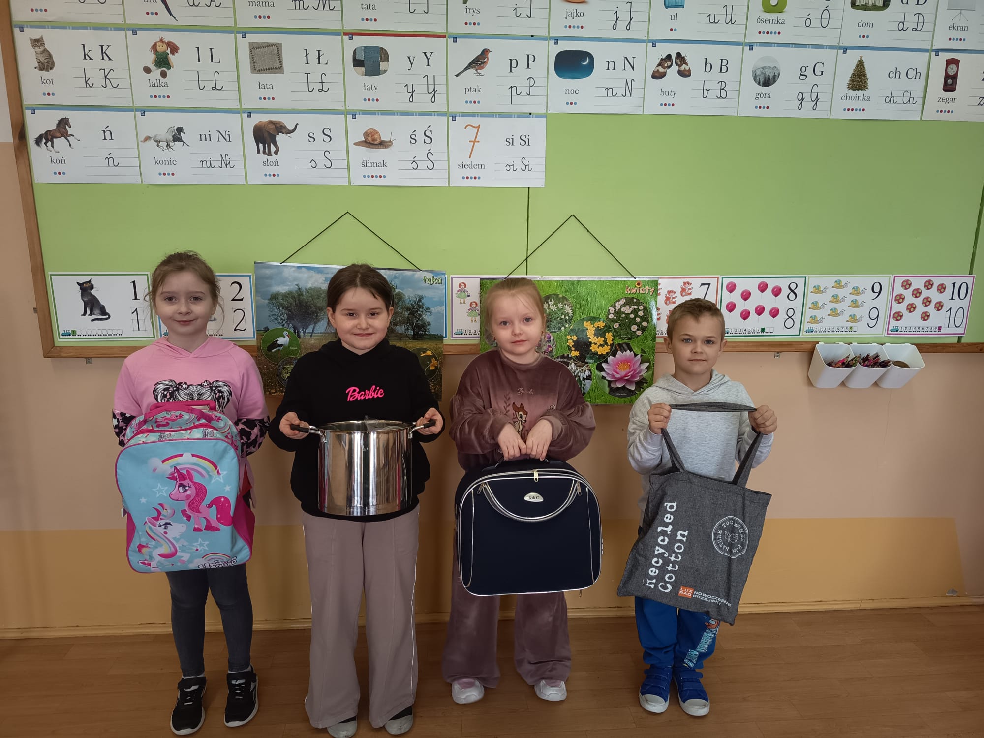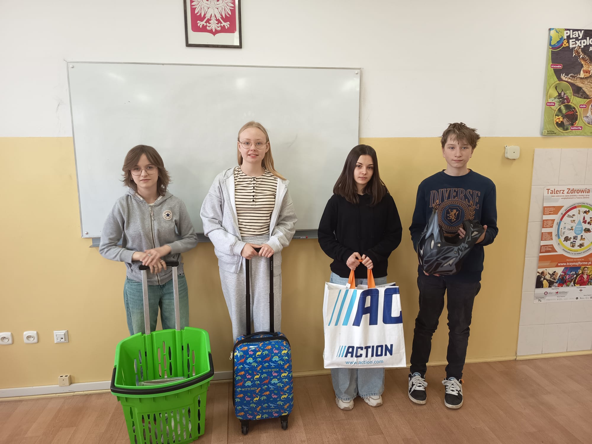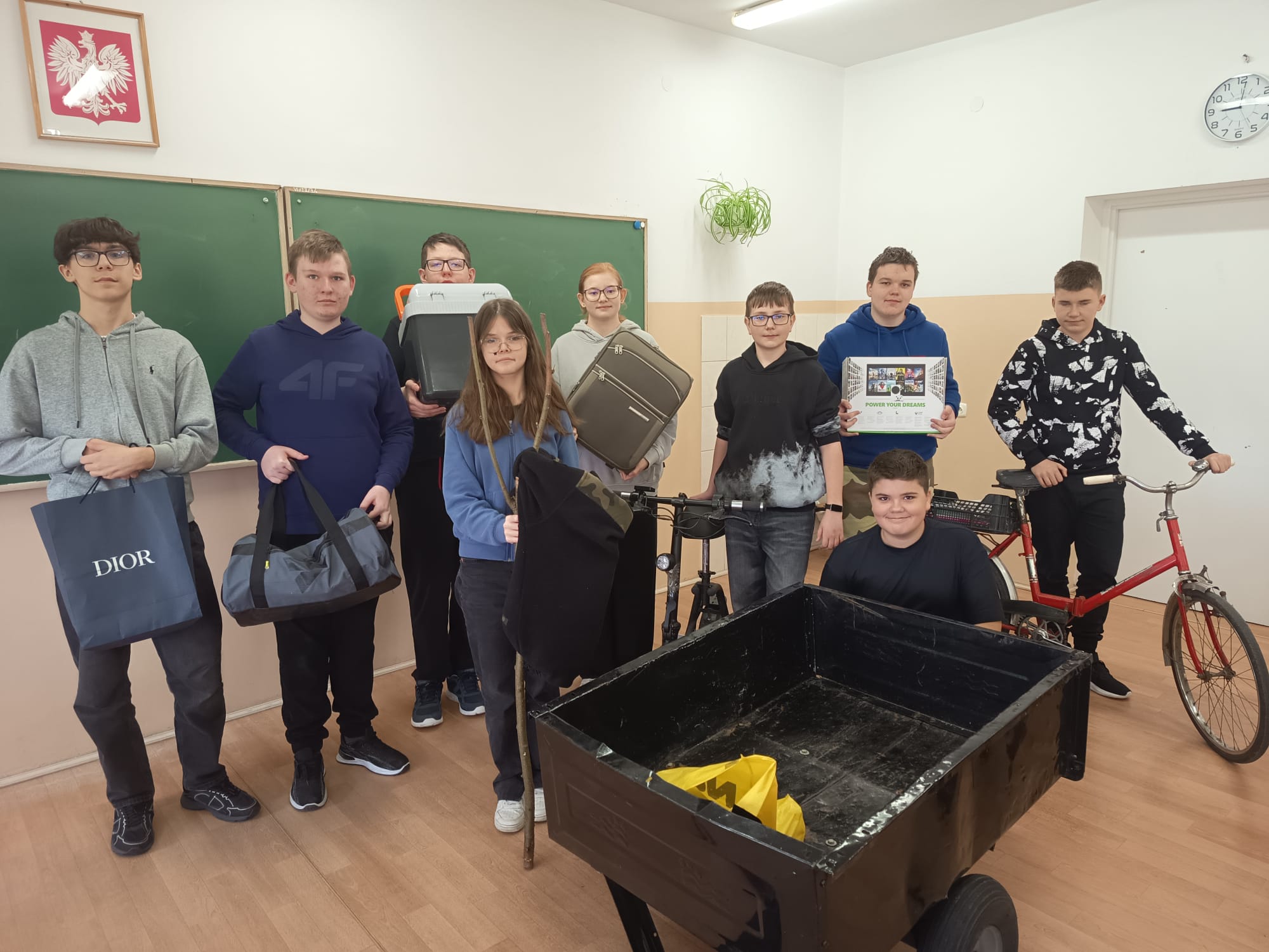 Z okazji 1 kwietnia – Prima Aprilis – w naszej szkole odbyła się wyjątkowa akcja „Dzień bez plecaka”. Tego dnia uczniowie wykazali się ogromną kreatywnością, przynosząc swoje książki i przybory szkolne w nietypowych przedmiotach, takich jak walizki, koszyki, pudełka czy nawet garnki.