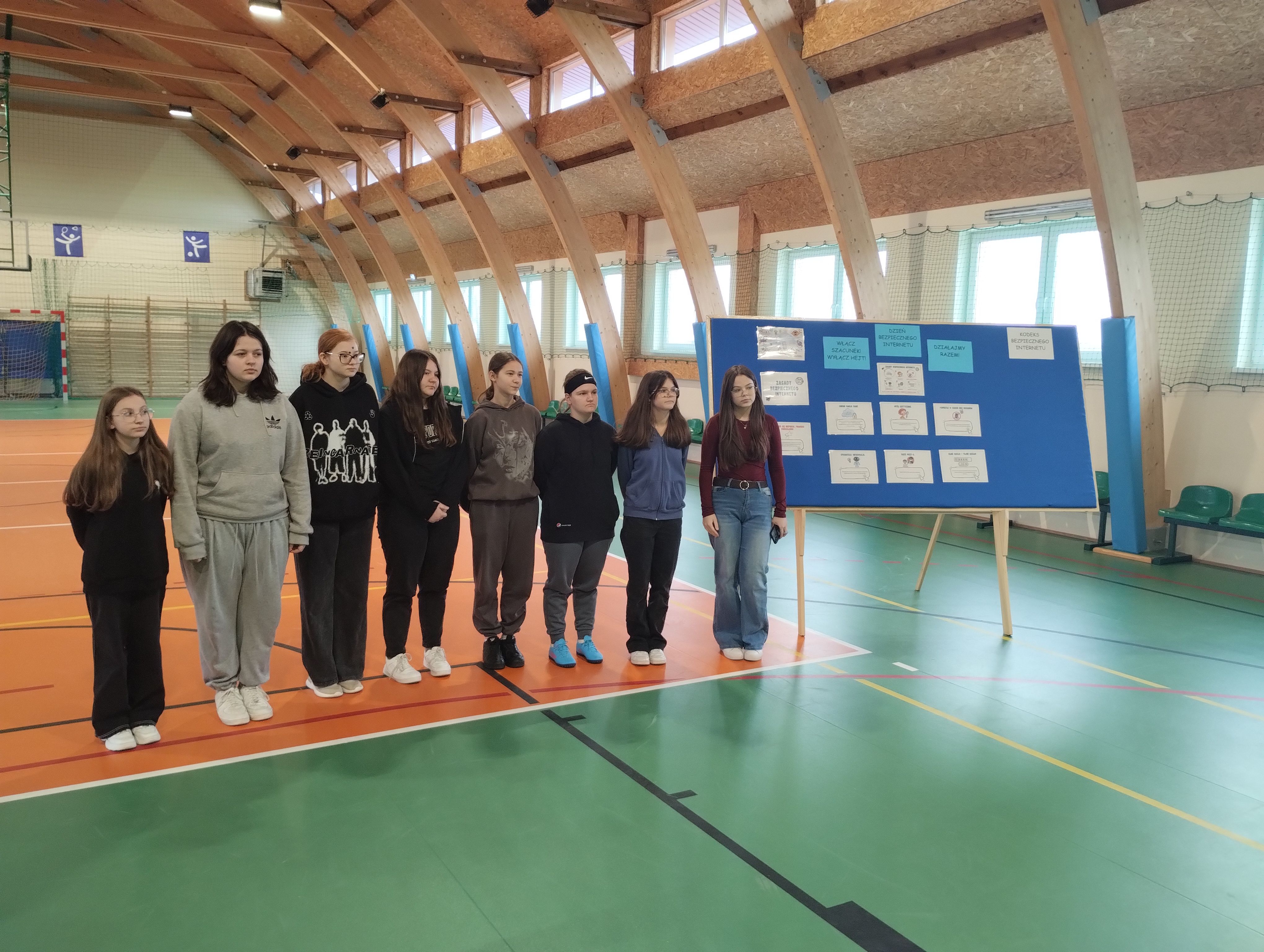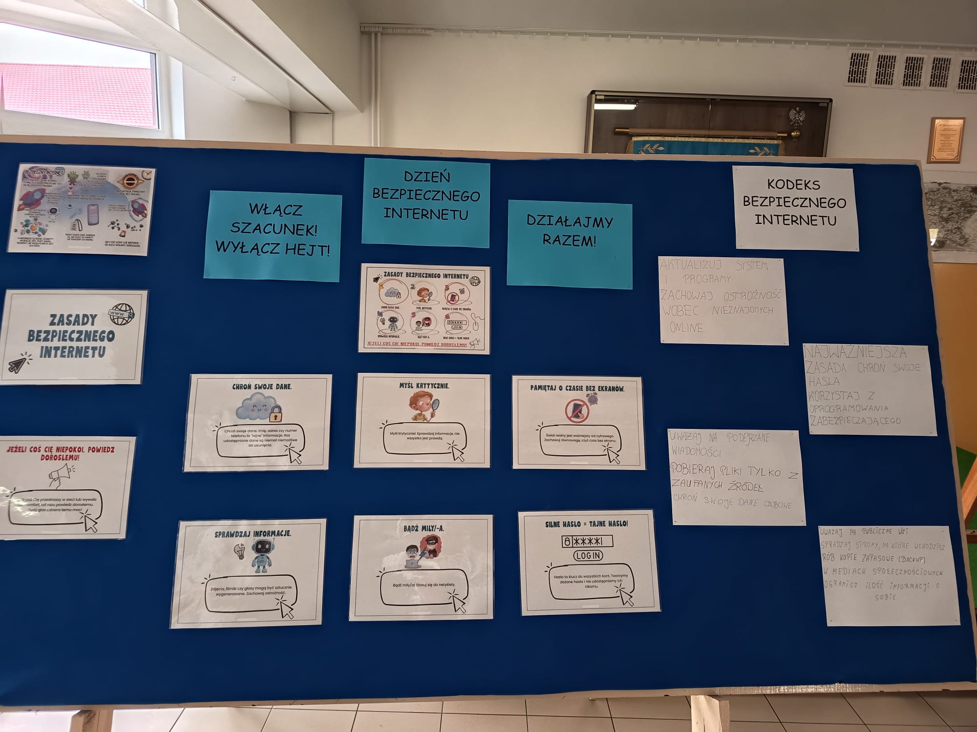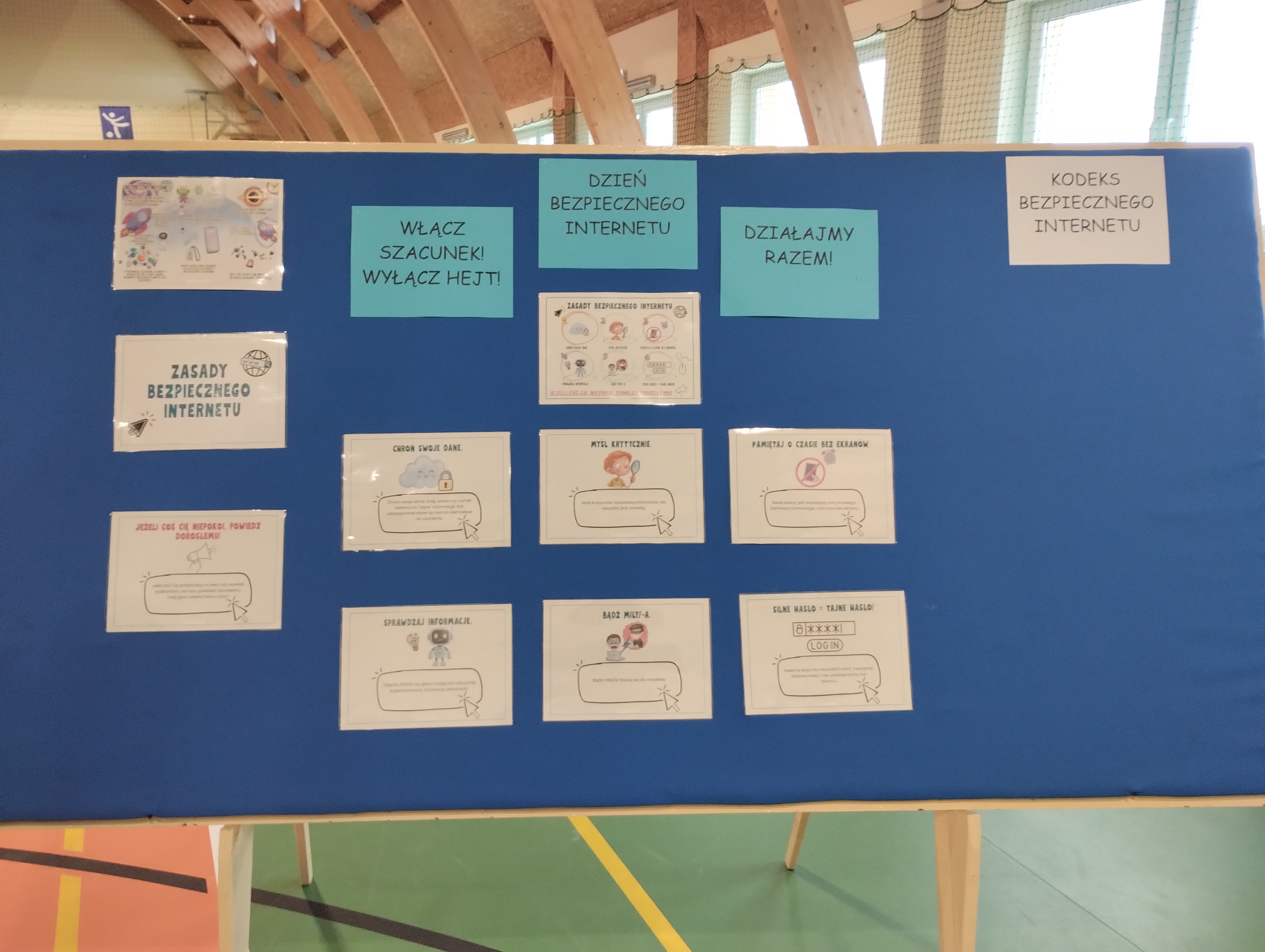 W dniach 18.02.–25.02.2026 w związku z Dniem Bezpiecznego Internetu w naszej szkole zostały przeprowadzone następujące działania: Dzieci ze starszego oddziału przedszkolnego pod opieką Pani Marioli Łasińskiej po wysłuchaniu pogadanki dotyczącej bezpieczeństwa w sieci wykonały konkursowe prace plastyczne na temat „Superbohater – obrońca Internetu”. Uczniowie klas I–III podczas zajęć komputerowych przeprowadzonych przez Panią Małgorzatę Kalinowską uzupełnili karty pracy dotyczące prywatności w sieci, bezpieczeństwa w Internecie oraz odpowiedzieli na pytanie: „Co zamiast Internetu?”. Wychowawcy klas IV–VIII podczas zajęć z wychowawcą przeprowadzili lekcje dotyczące hejtu oraz netykiety. Ponadto, pod opieką Pana Jarosława Łasińskiego i Pani Marii Daczko, uczniowie stworzyli Kodeks Bezpiecznego Internetu na podstawie haseł odczytanych z kodów QR umieszczonych w różnych miejscach sali gimnastycznej. Kodeks oraz prace uczniów można podziwiać w holu szkoły, do czego serdecznie zachęcamy. Nasza szkolna inicjatywa została zgłoszona do Polskie Centrum Programu Safer Internet (PCPSI), dzięki czemu uzyskaliśmy certyfikat. Wszystkie działania miały na celu promowanie bezpiecznego i odpowiedzialnego korzystania z Internetu. Mamy nadzieję, że udało nam się podnieść świadomość uczniów w tej materii.