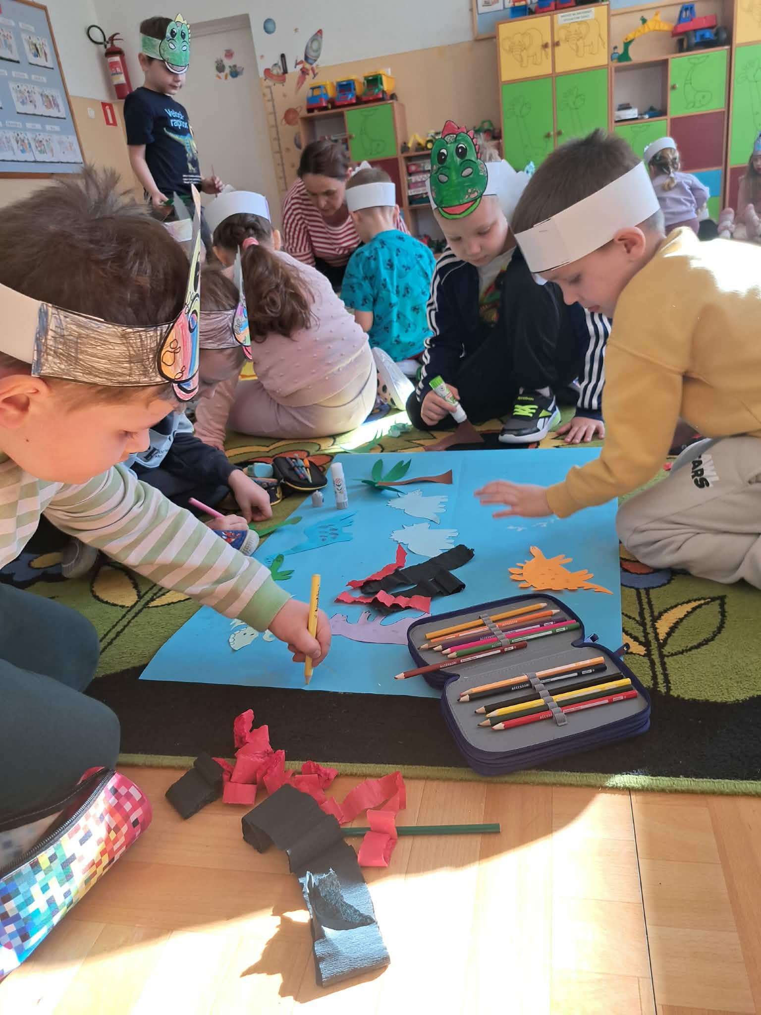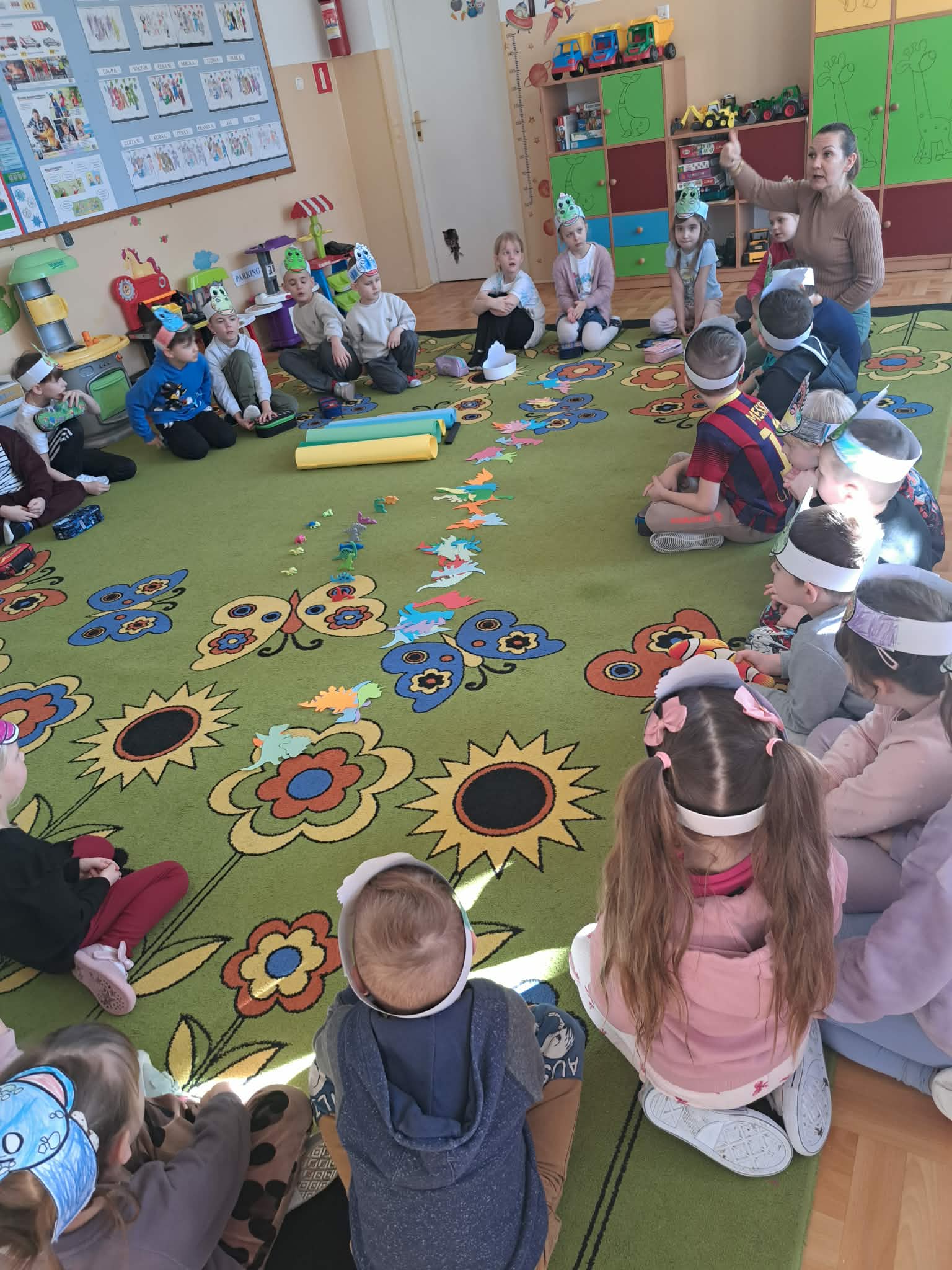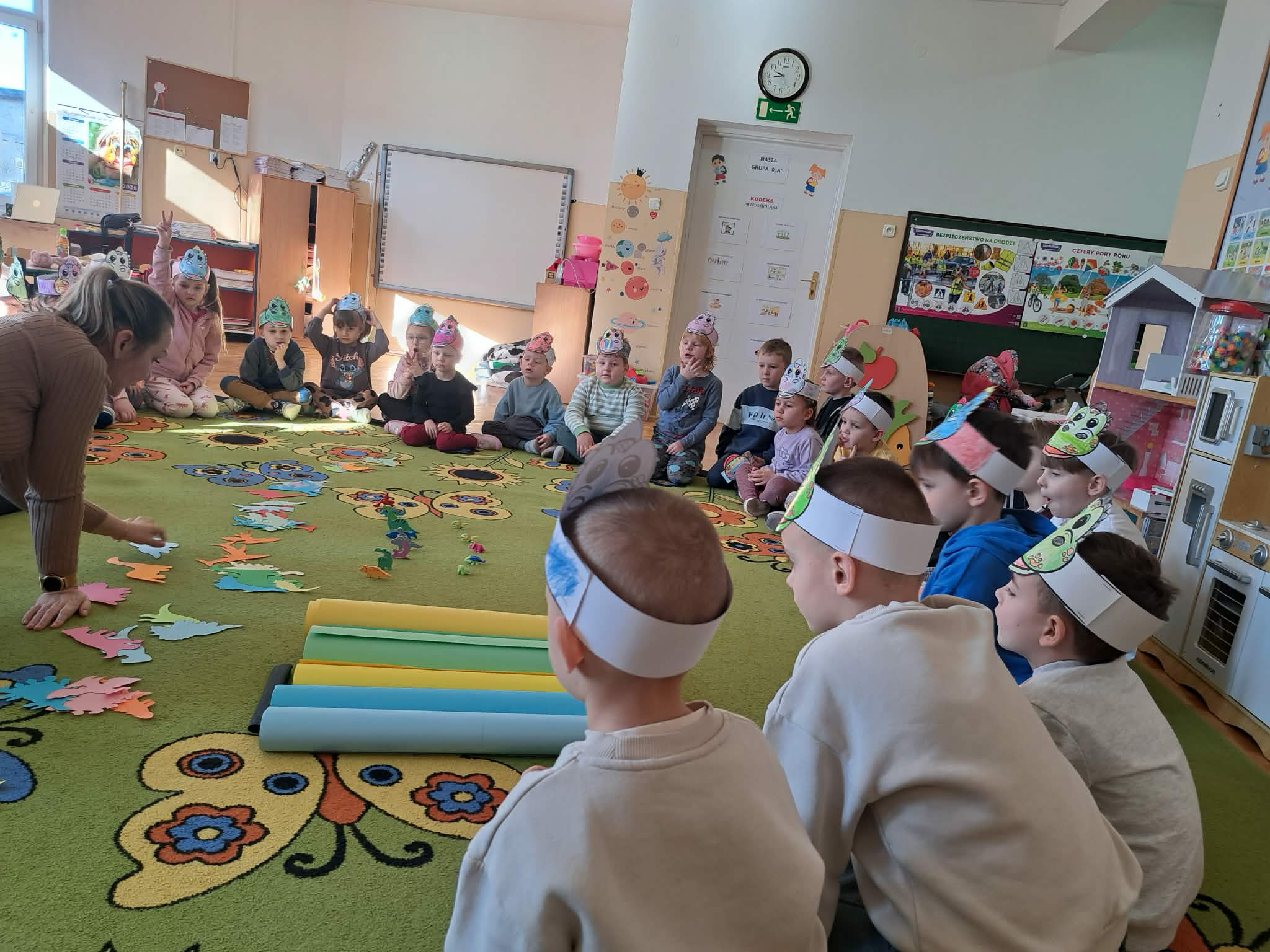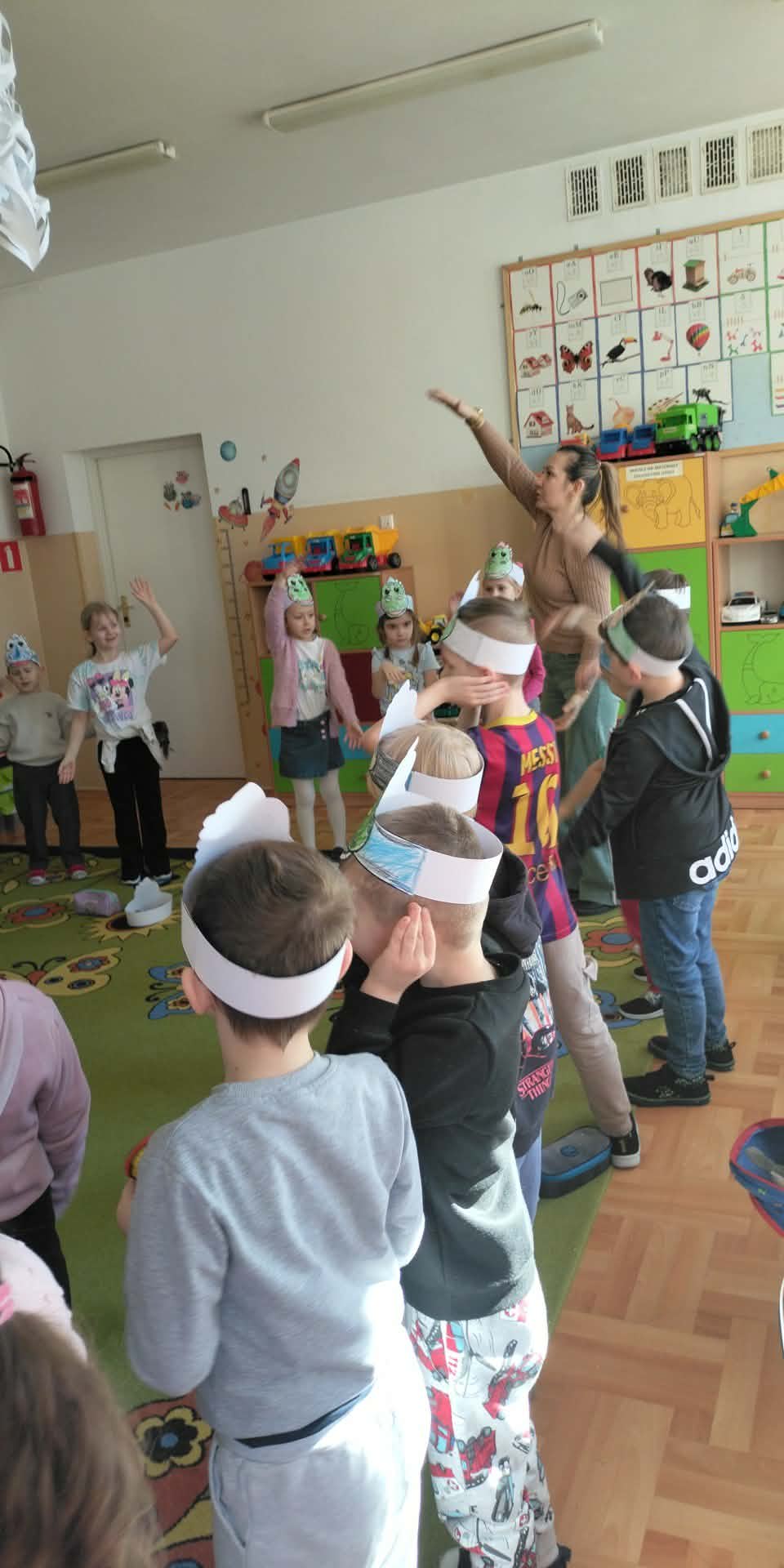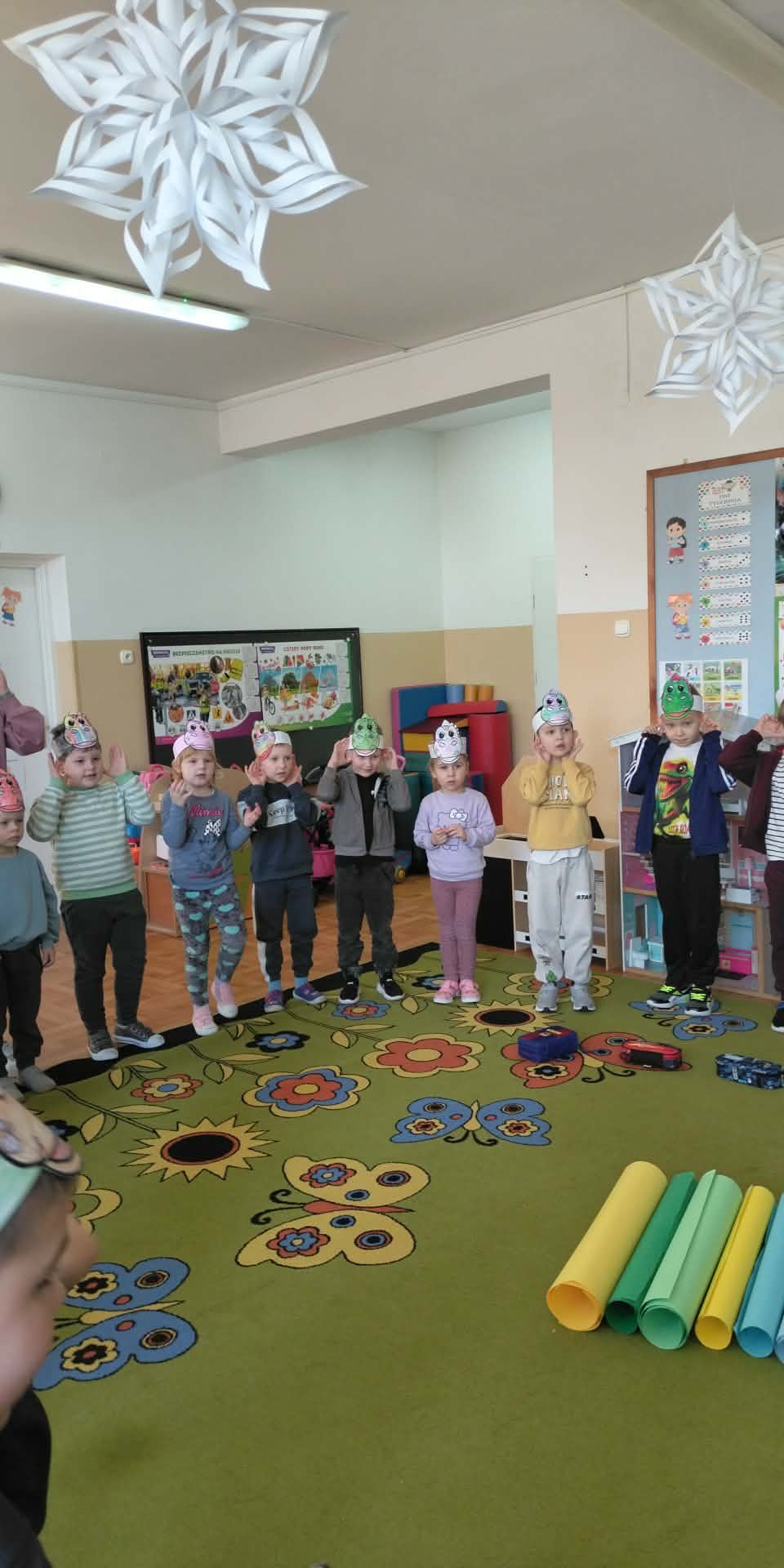 W naszych oddziałach przedszkolnych obchodziliśmy wyjątkowe święto – Dzień Dinozaura! Tego dnia sala zamieniła się w prawdziwy prehistoryczny świat pełen ciekawostek, zabawy i odkryć. Dzieci poznały fascynujące informacje o dinozaurach, takich jak Tyrannosaurus rex, Triceratops oraz Stegosaurus. Dowiedziały się, czym się żywiły, jak wyglądały oraz dlaczego wyginęły. Nie zabrakło wspólnego oglądania książek i ilustracji przedstawiających te niezwykłe stworzenia. Przedszkolaki uczestniczyły w wielu kreatywnych aktywnościach – wykonały prace plastyczne w grupach przedstawiające „Świat Dinozaurów” .Ogromną radość sprawiło dzieciom naśladowanie odgłosów i ruchów prehistorycznych gadów, podczas zabawy ruchowej przy piosence „Jakie dinozaury” . Dzień Dinozaura był doskonałą okazją do rozwijania ciekawości świata, poszerzania wiedzy przyrodniczej oraz wspólnej, radosnej zabawy. To był dzień pełen emocji i uśmiechu, który na długo pozostanie w pamięci naszych przedszkolaków!