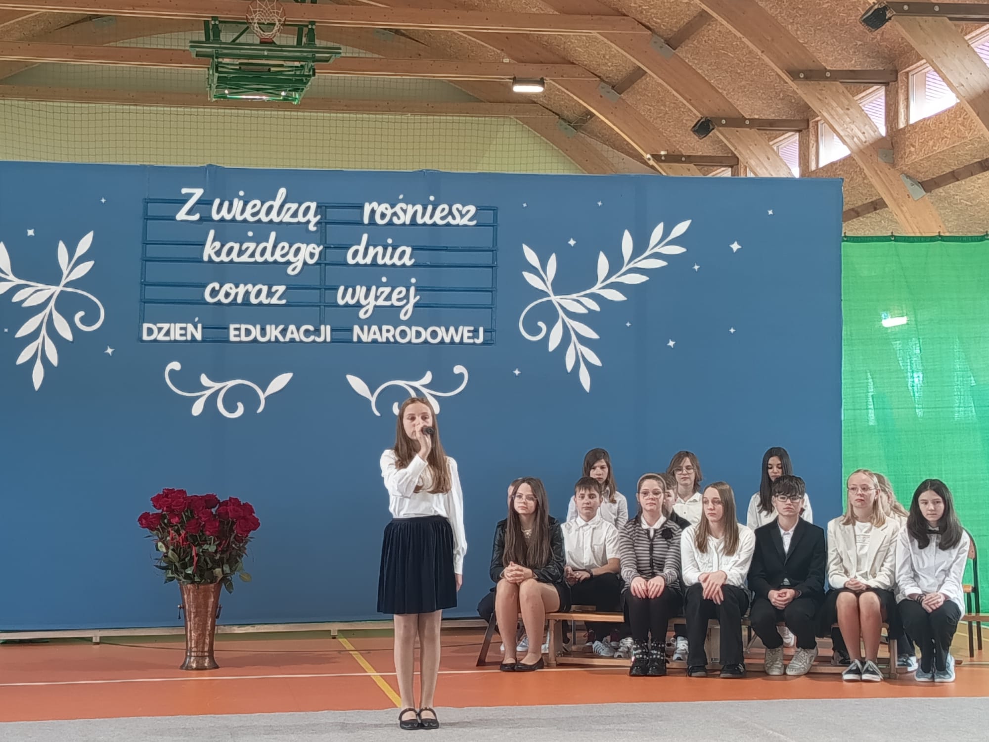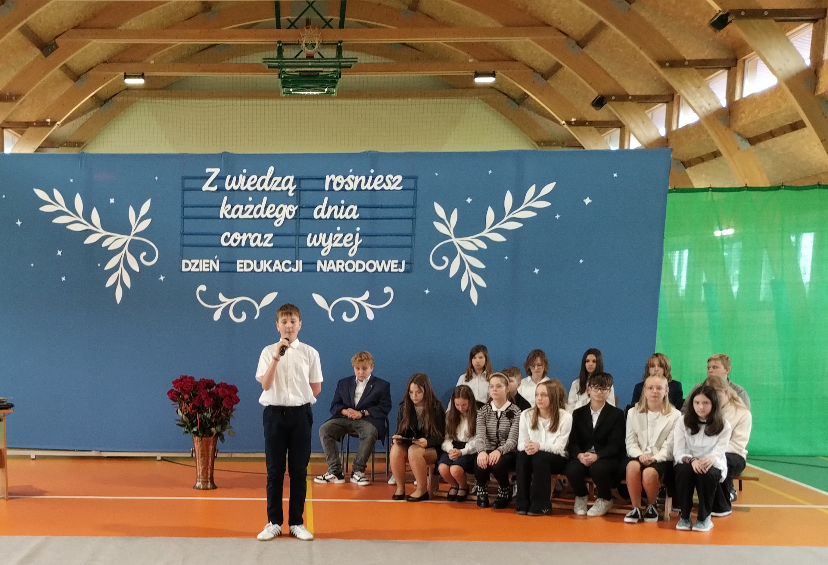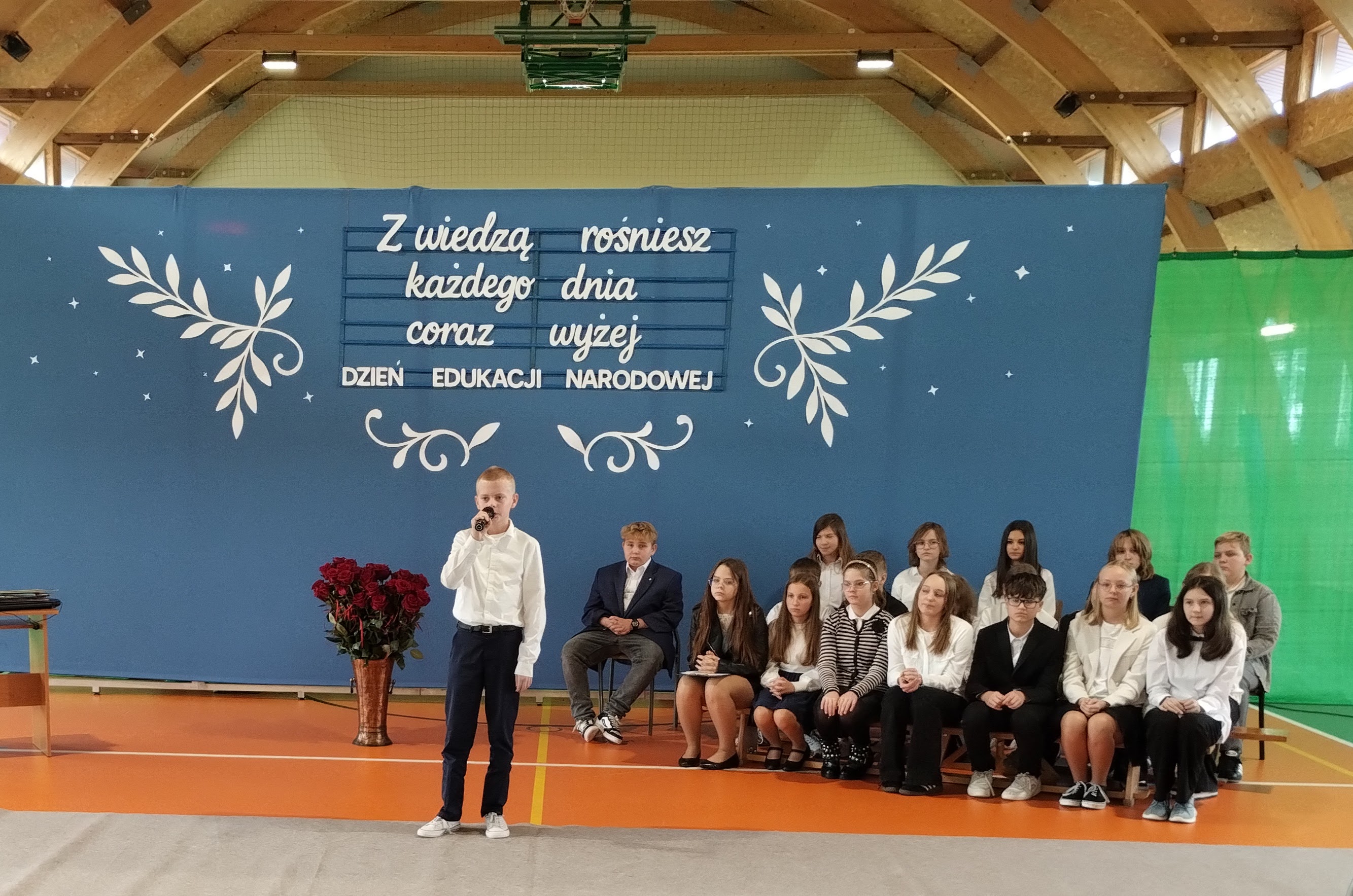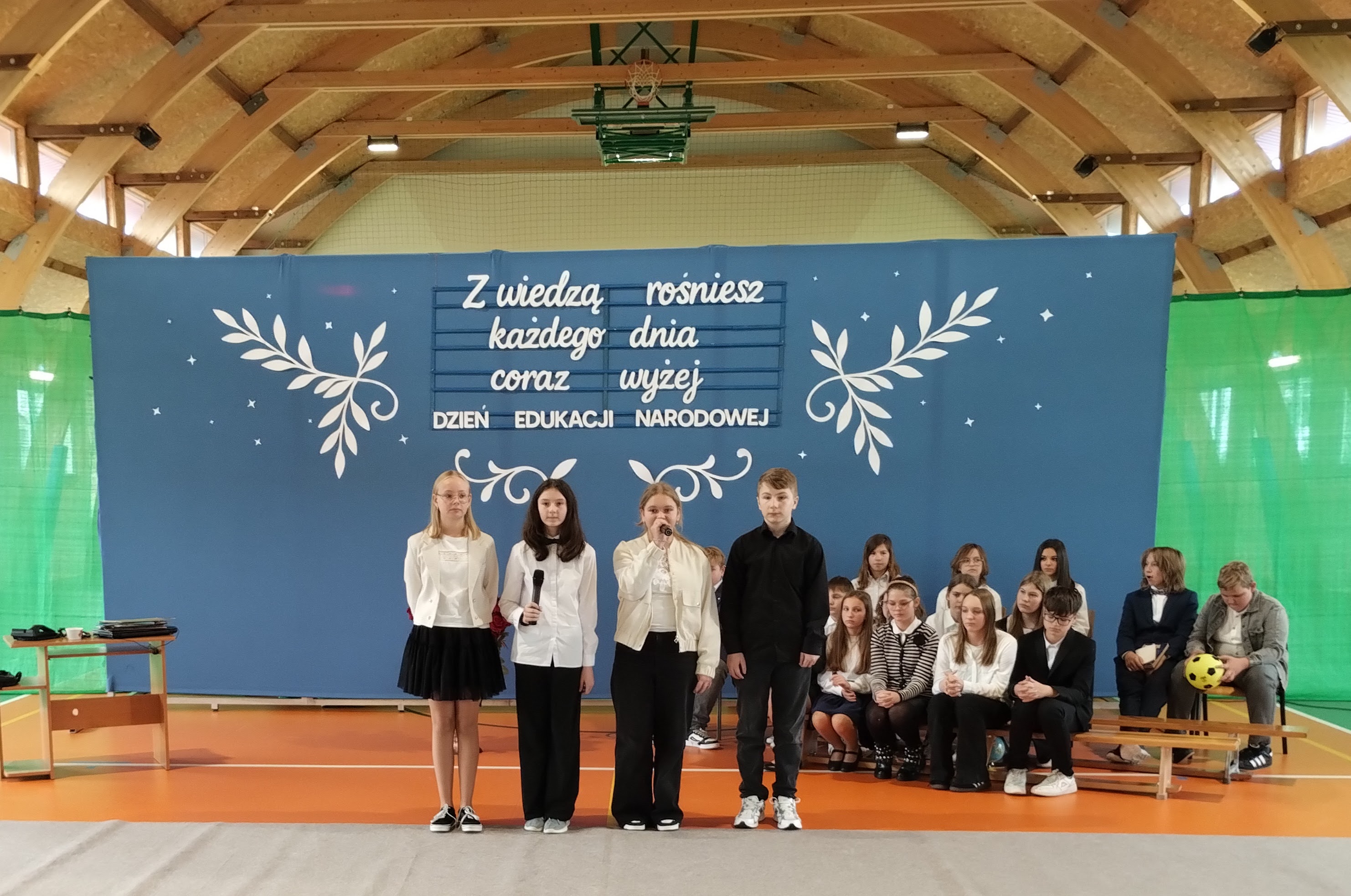 17 października 2025 roku w naszej szkole odbyła się uroczystość z okazji Dnia Edukacji Narodowej. W wydarzeniu wzięli udział uczniowie, nauczyciele, pracownicy szkoły oraz zaproszeni goście – w tym emerytowani nauczyciele i pracownicy naszej placówki. Uczniowie przygotowali i zaprezentowali humorystyczne przedstawienie, które przeplatane było wierszami i piosenkami. Występ dostarczył wszystkim wielu wzruszeń i uśmiechu, a młodzi artyści zostali nagrodzeni gromkimi brawami. Pan Dyrektor Sylwester Ziomek złożył serdeczne życzenia wszystkim nauczycielom i pracownikom oświaty, dziękując im za codzienny trud, zaangażowanie i serce wkładane w wychowanie młodego pokolenia. Głos zabrał również zaproszony gość – były dyrektor szkoły, Pan Kazimierz Rojek, który skierował do zebranych ciepłe słowa i wspomnienia związane z pracą w naszej szkole. W imieniu Rady Rodziców, Pani Paulina Siemiątkowska, przewodnicząca Rady, złożyła nauczycielom i pracownikom życzenia z okazji ich święta oraz przekazała na ręce Pana Dyrektora piękne kwiaty jako wyraz wdzięczności i uznania za pracę pedagogiczną.