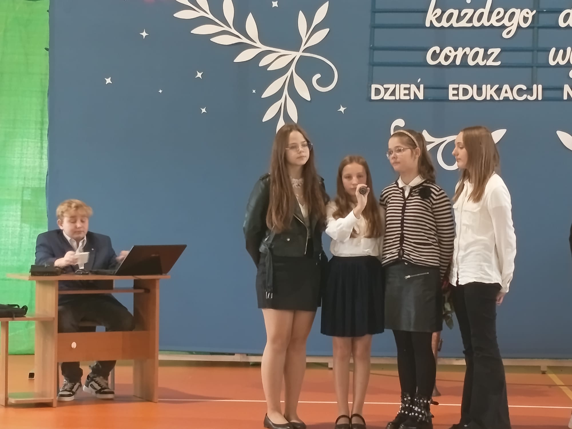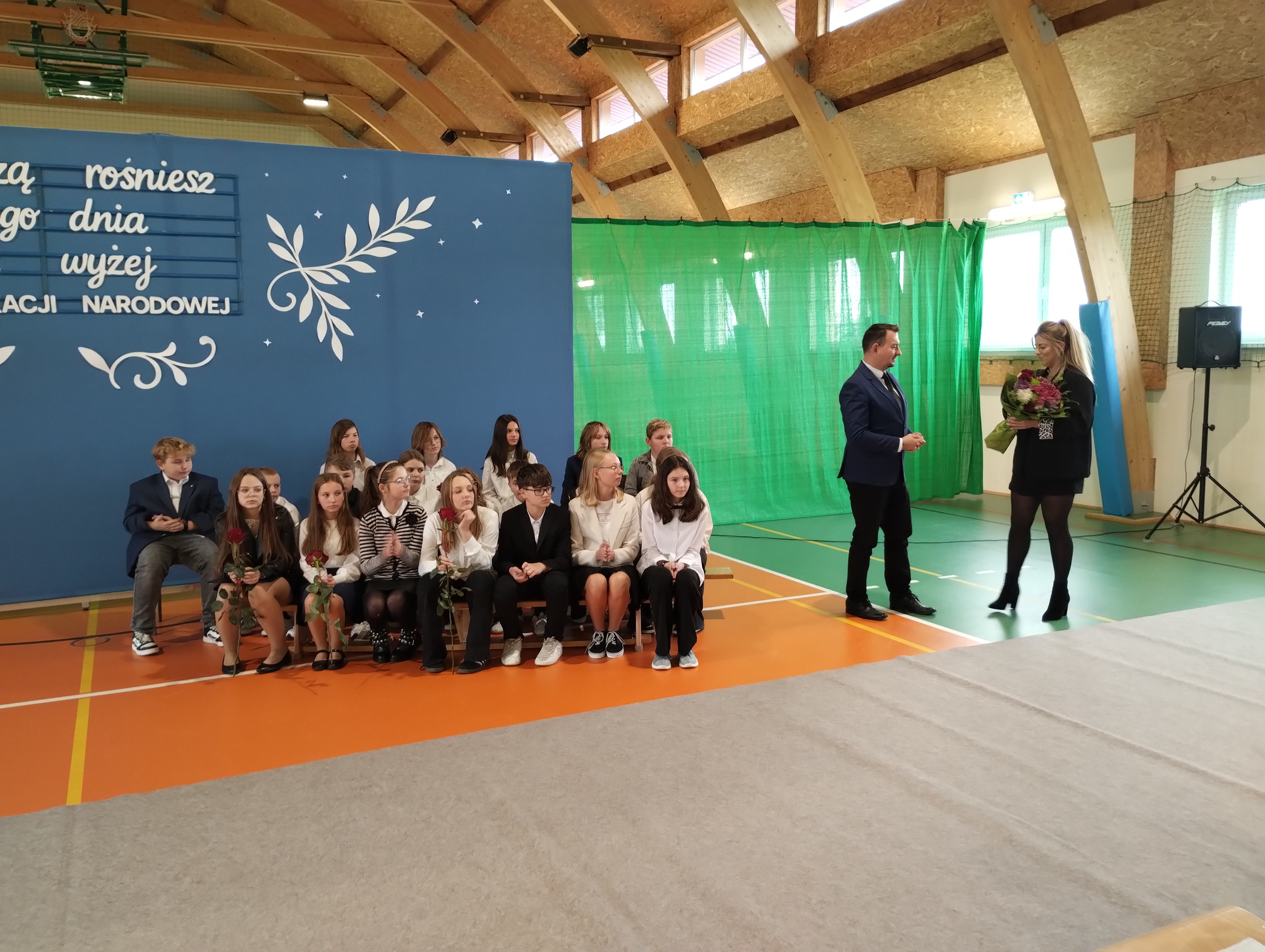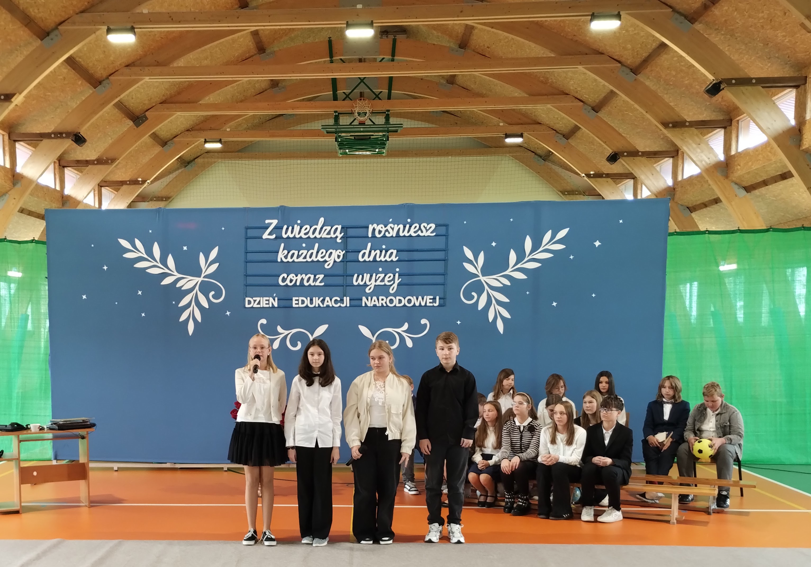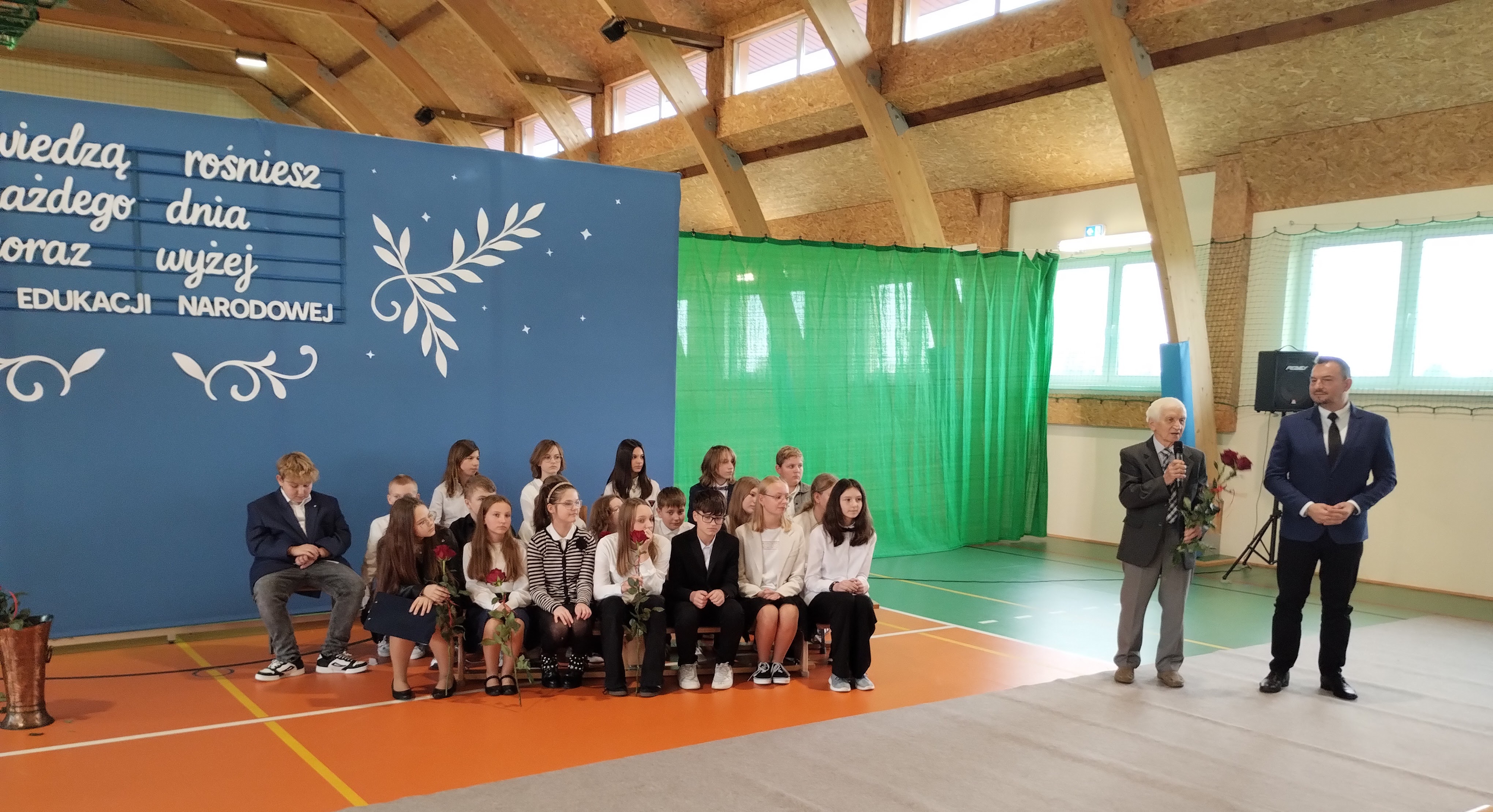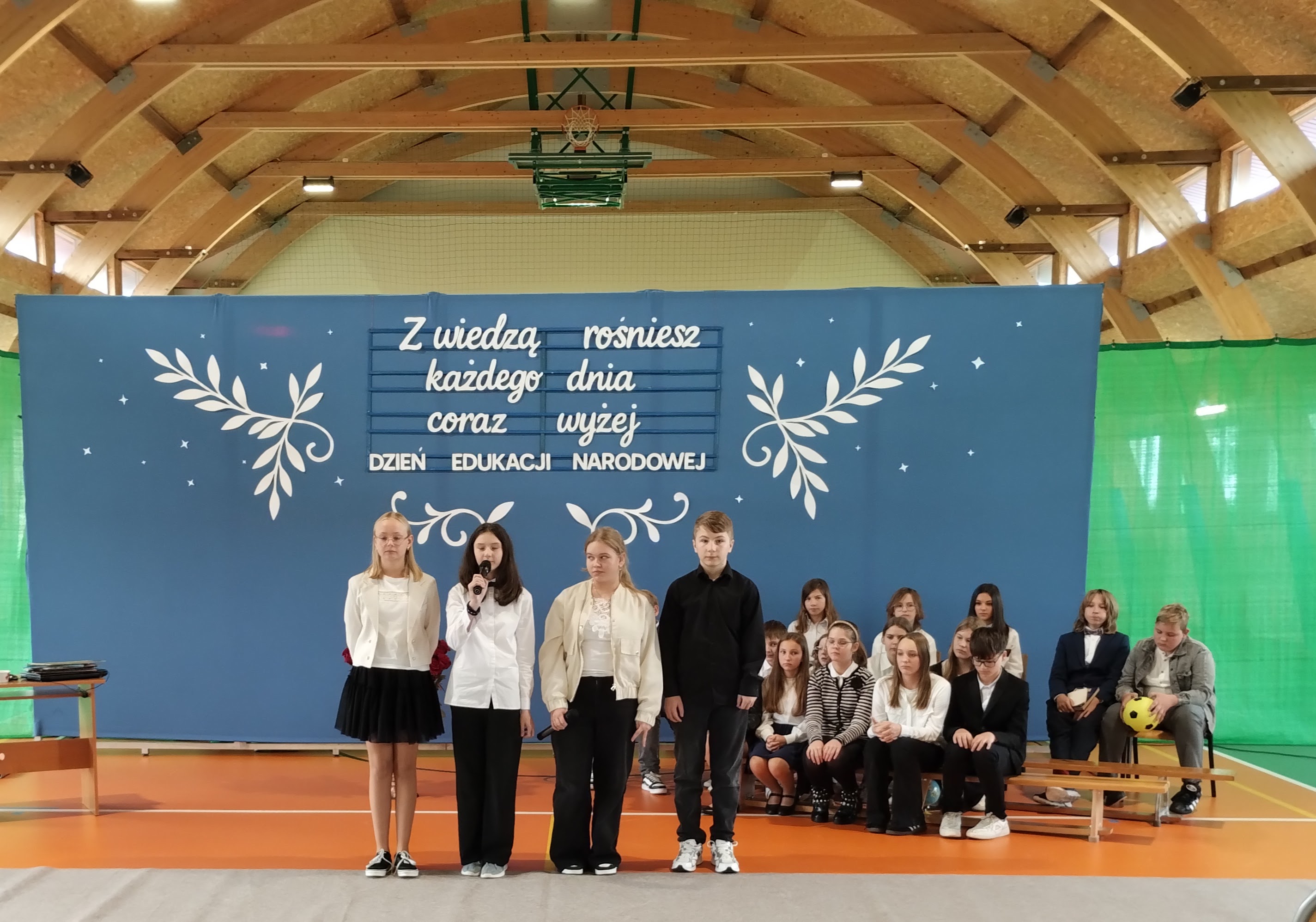 17 października 2025 roku w naszej szkole odbyła się uroczystość z okazji Dnia Edukacji Narodowej. W wydarzeniu wzięli udział uczniowie, nauczyciele, pracownicy szkoły oraz zaproszeni goście – w tym emerytowani nauczyciele i pracownicy naszej placówki. Uczniowie przygotowali i zaprezentowali humorystyczne przedstawienie, które przeplatane było wierszami i piosenkami. Występ dostarczył wszystkim wielu wzruszeń i uśmiechu, a młodzi artyści zostali nagrodzeni gromkimi brawami. Pan Dyrektor Sylwester Ziomek złożył serdeczne życzenia wszystkim nauczycielom i pracownikom oświaty, dziękując im za codzienny trud, zaangażowanie i serce wkładane w wychowanie młodego pokolenia. Głos zabrał również zaproszony gość – były dyrektor szkoły, Pan Kazimierz Rojek, który skierował do zebranych ciepłe słowa i wspomnienia związane z pracą w naszej szkole. W imieniu Rady Rodziców, Pani Paulina Siemiątkowska, przewodnicząca Rady, złożyła nauczycielom i pracownikom życzenia z okazji ich święta oraz przekazała na ręce Pana Dyrektora piękne kwiaty jako wyraz wdzięczności i uznania za pracę pedagogiczną.