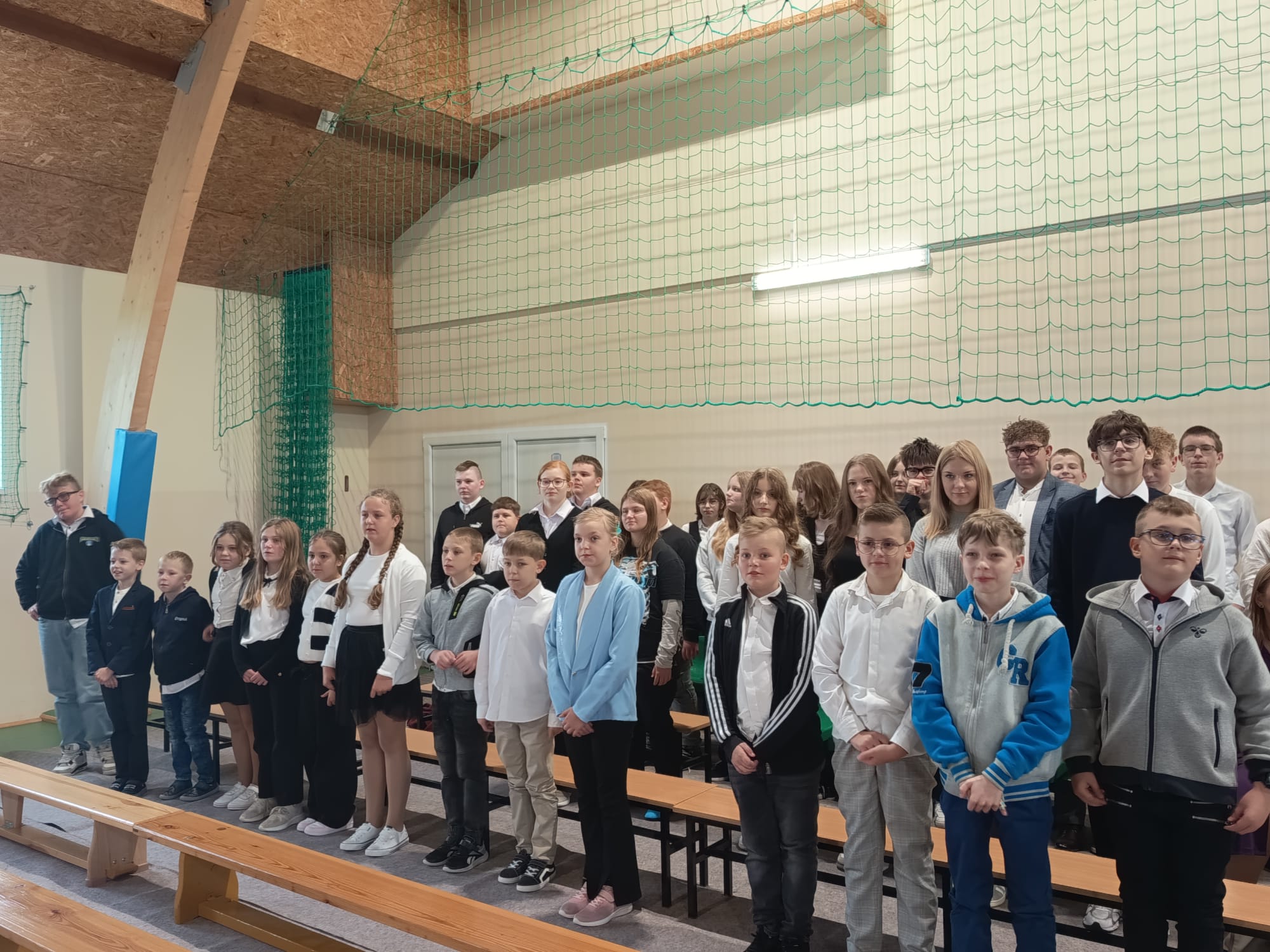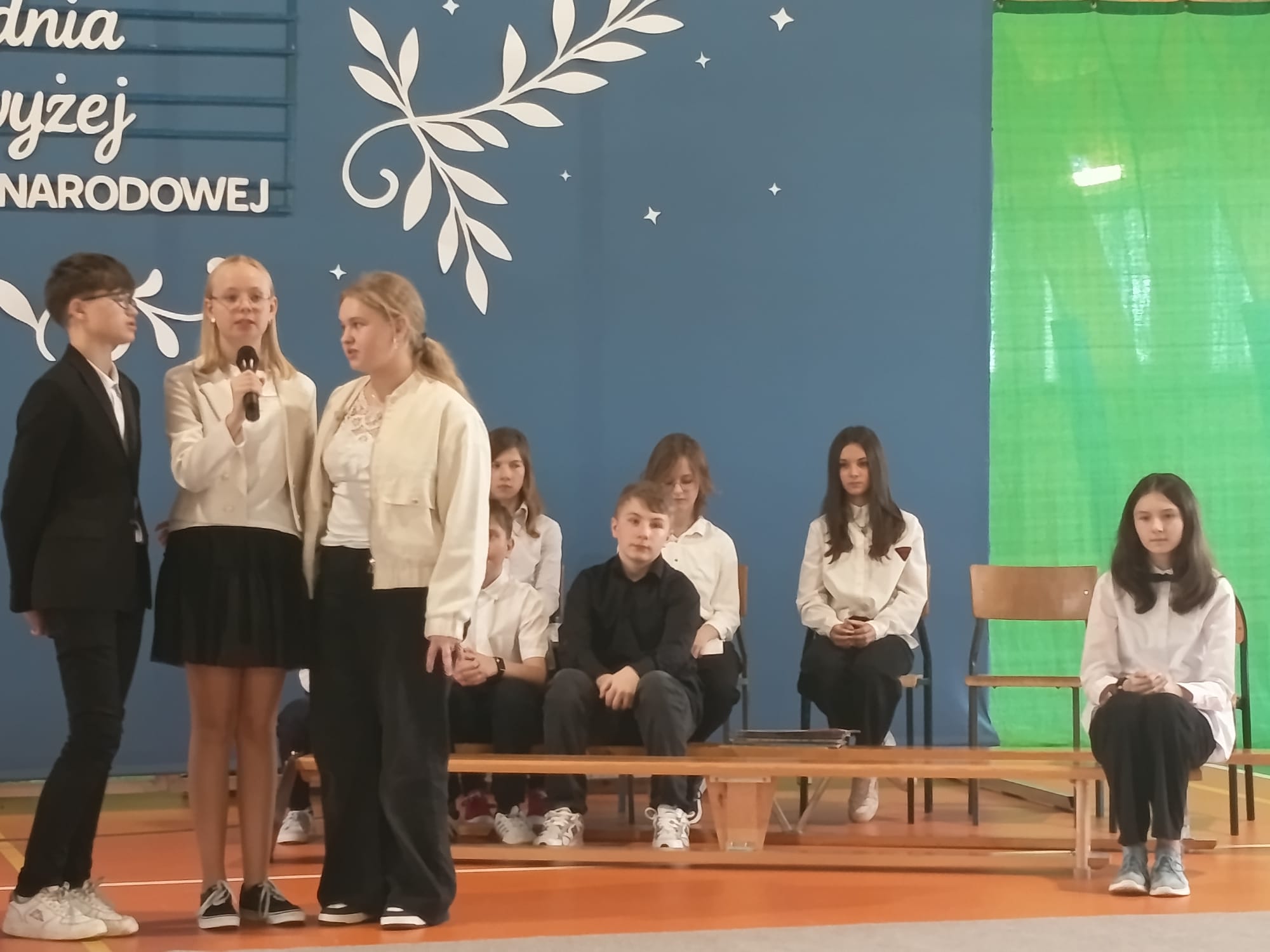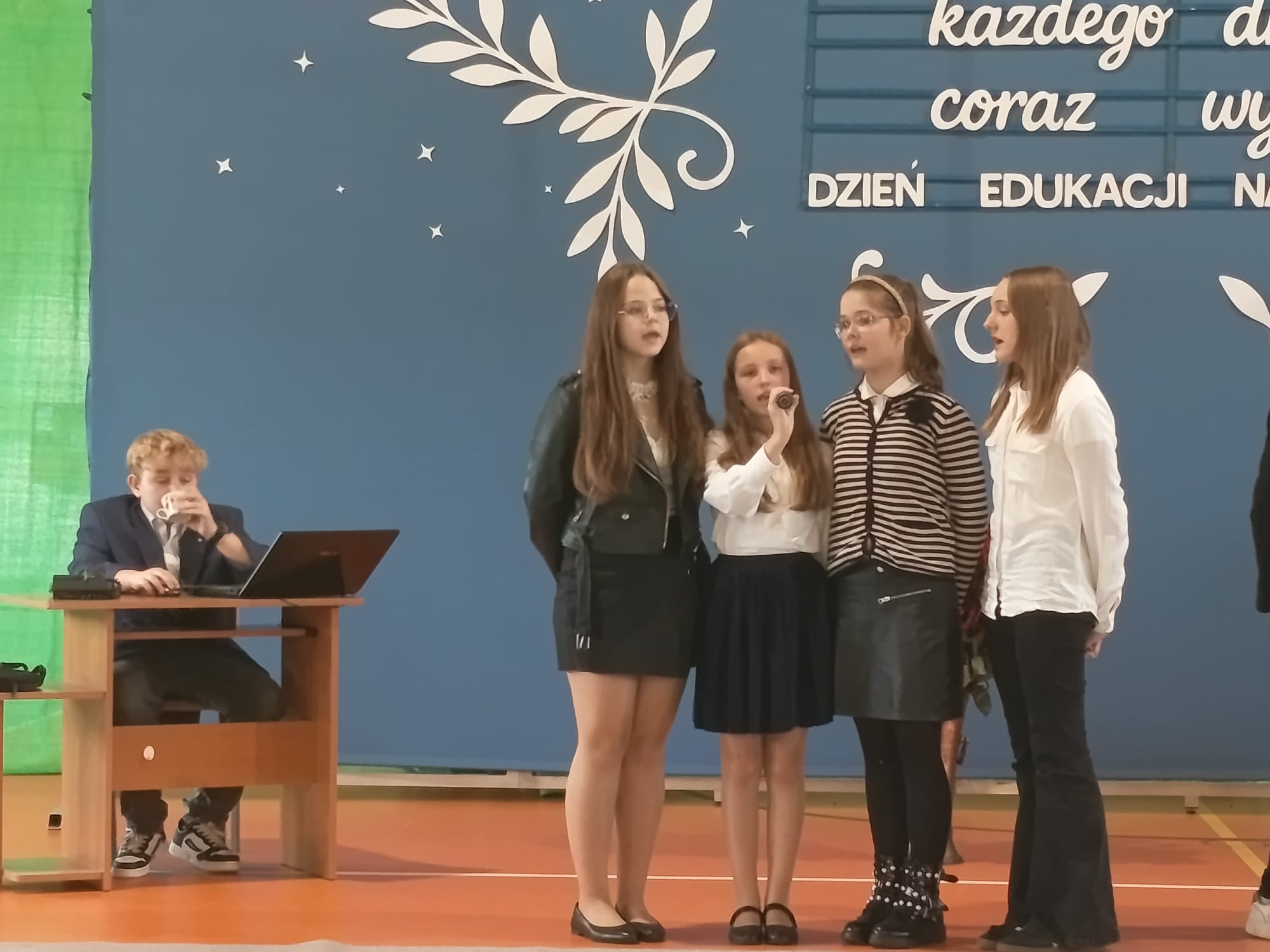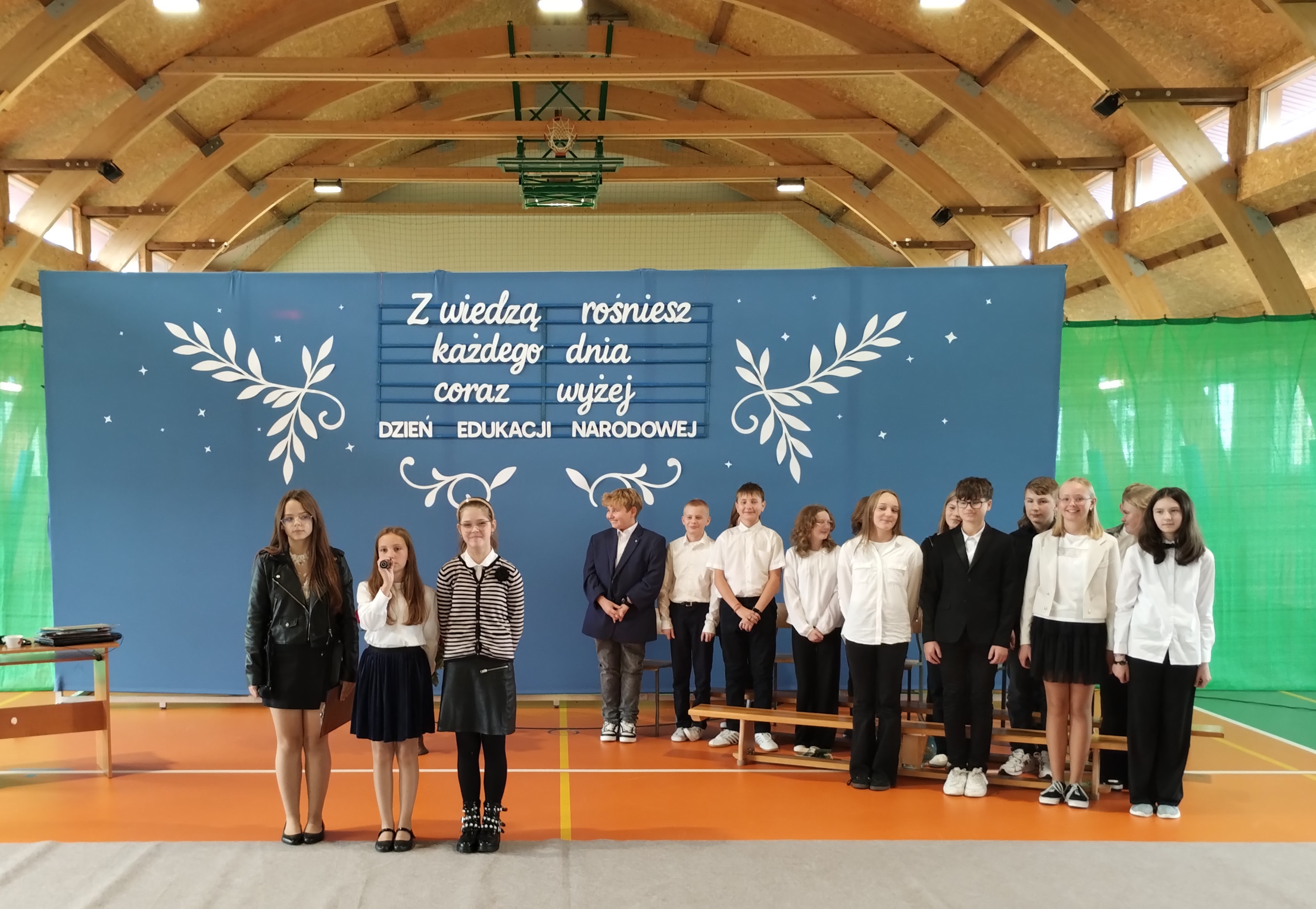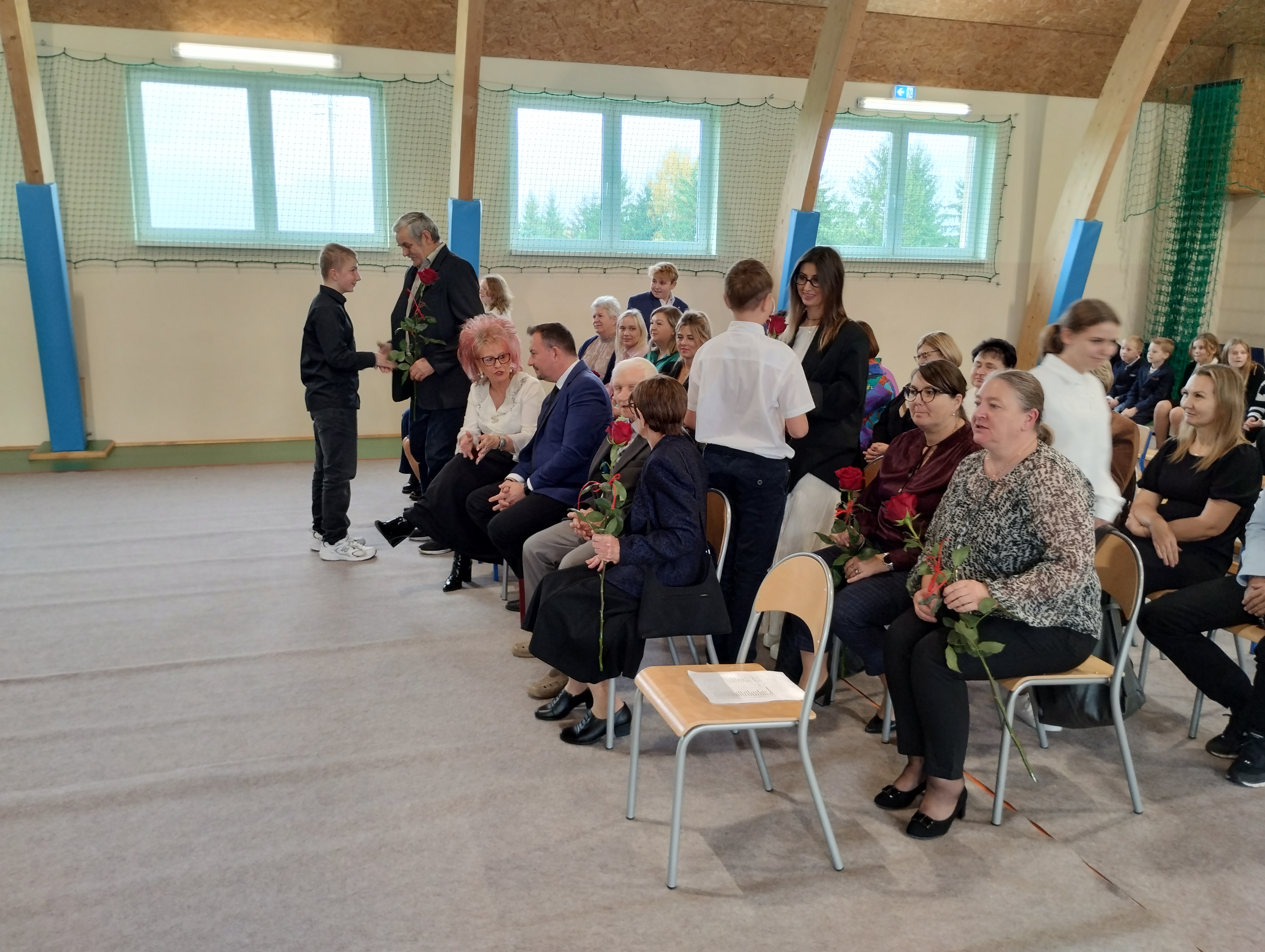 17 października 2025 roku w naszej szkole odbyła się uroczystość z okazji Dnia Edukacji Narodowej. W wydarzeniu wzięli udział uczniowie, nauczyciele, pracownicy szkoły oraz zaproszeni goście – w tym emerytowani nauczyciele i pracownicy naszej placówki. Uczniowie przygotowali i zaprezentowali humorystyczne przedstawienie, które przeplatane było wierszami i piosenkami. Występ dostarczył wszystkim wielu wzruszeń i uśmiechu, a młodzi artyści zostali nagrodzeni gromkimi brawami. Pan Dyrektor Sylwester Ziomek złożył serdeczne życzenia wszystkim nauczycielom i pracownikom oświaty, dziękując im za codzienny trud, zaangażowanie i serce wkładane w wychowanie młodego pokolenia. Głos zabrał również zaproszony gość – były dyrektor szkoły, Pan Kazimierz Rojek, który skierował do zebranych ciepłe słowa i wspomnienia związane z pracą w naszej szkole. W imieniu Rady Rodziców, Pani Paulina Siemiątkowska, przewodnicząca Rady, złożyła nauczycielom i pracownikom życzenia z okazji ich święta oraz przekazała na ręce Pana Dyrektora piękne kwiaty jako wyraz wdzięczności i uznania za pracę pedagogiczną.