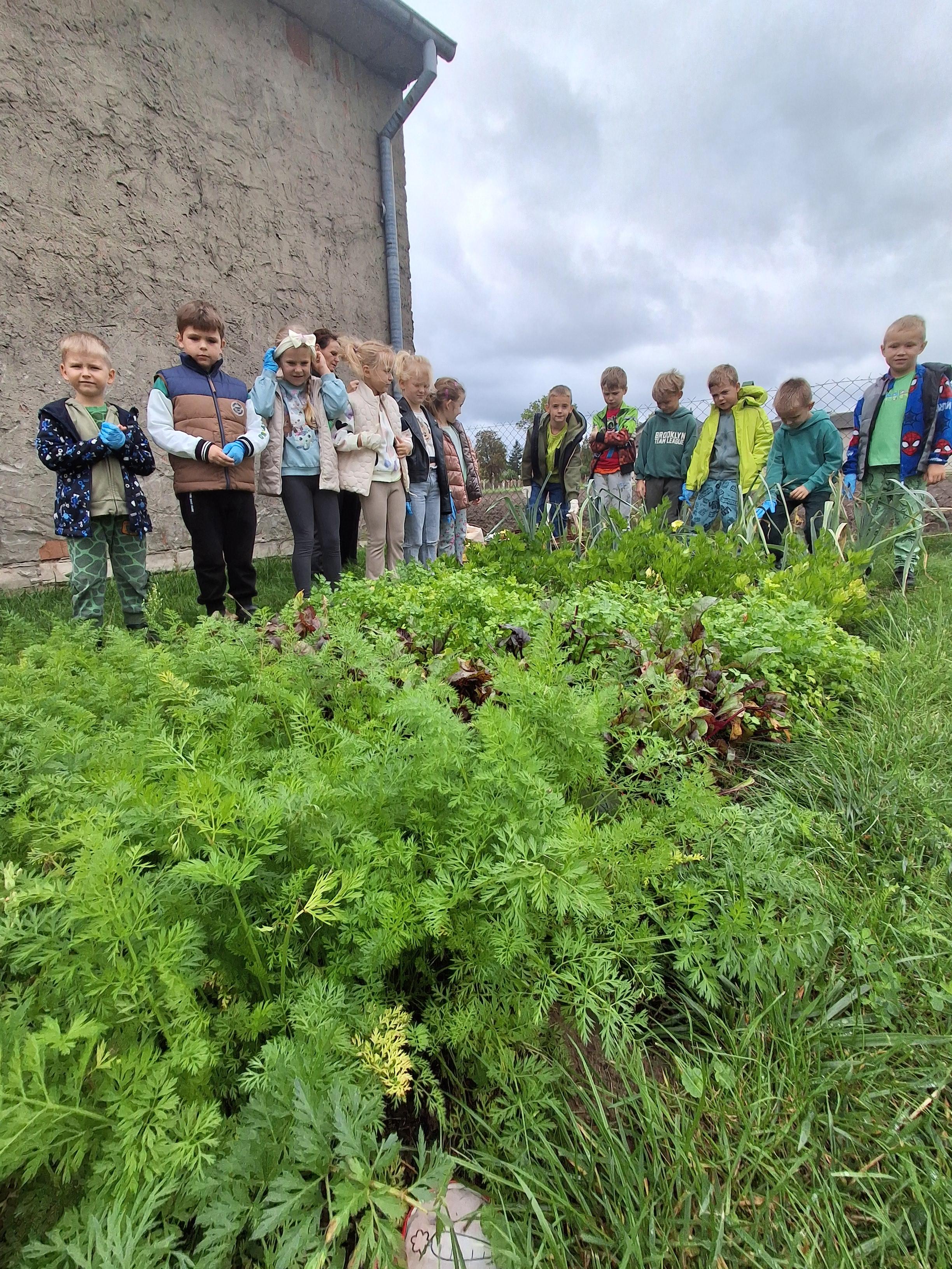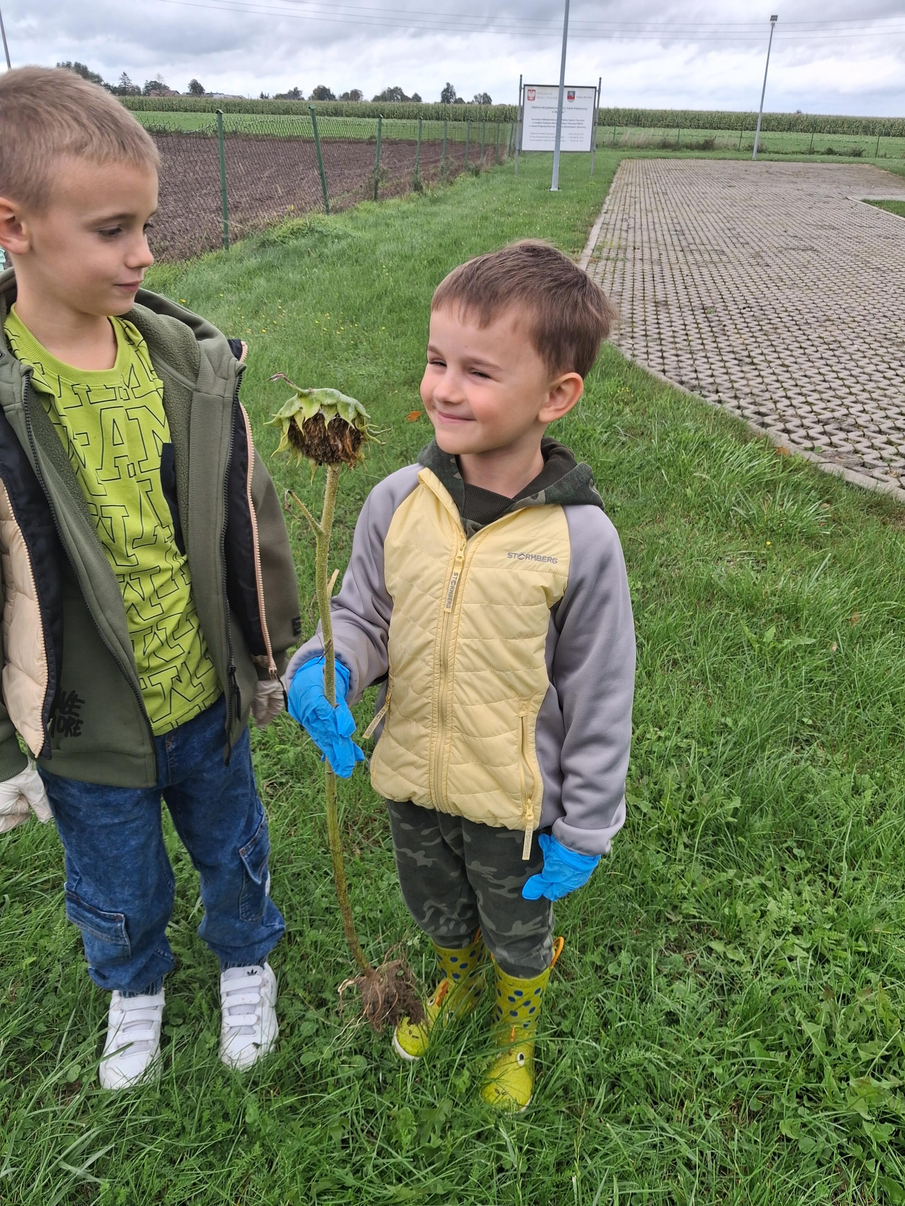 19 września 2025 roku Przedszkolaki, jak co roku, włączyły się w akcję Sprzątanie Świata pod hasłem „W naturę z kulturą”. Tym razem dzieci miały za zadanie uporządkować szkolny ogródek pełen zdrowych i pysznych warzyw i przygotować grządki do zimy.