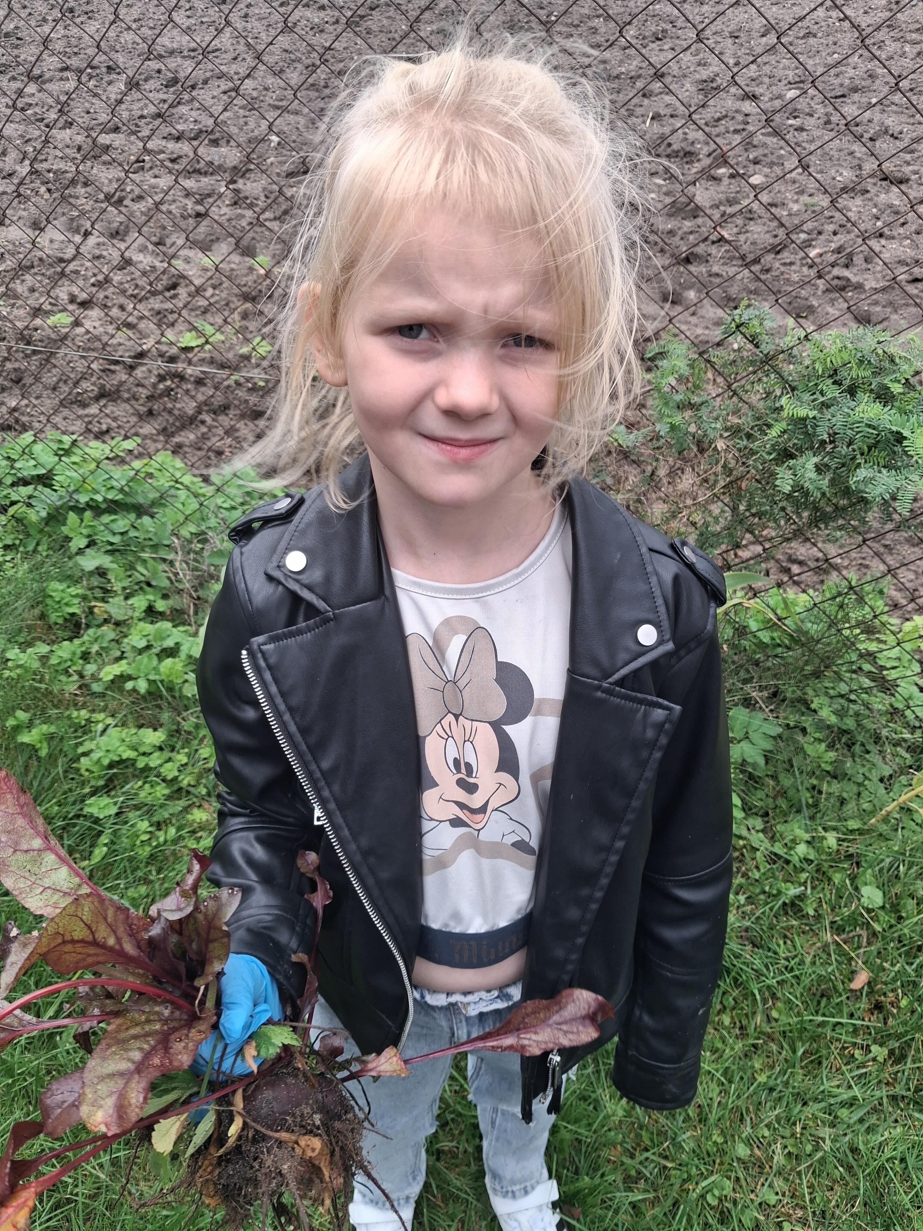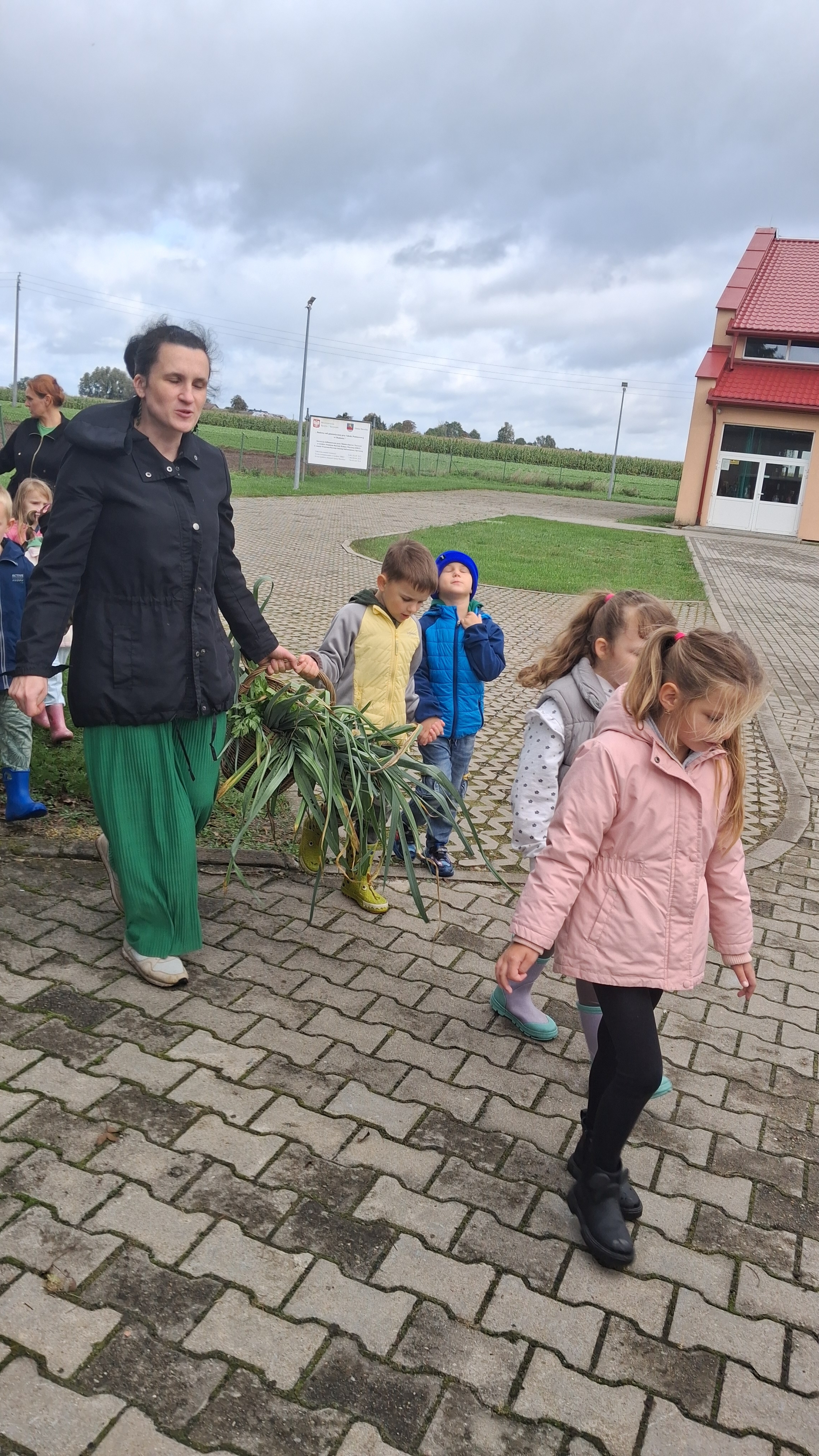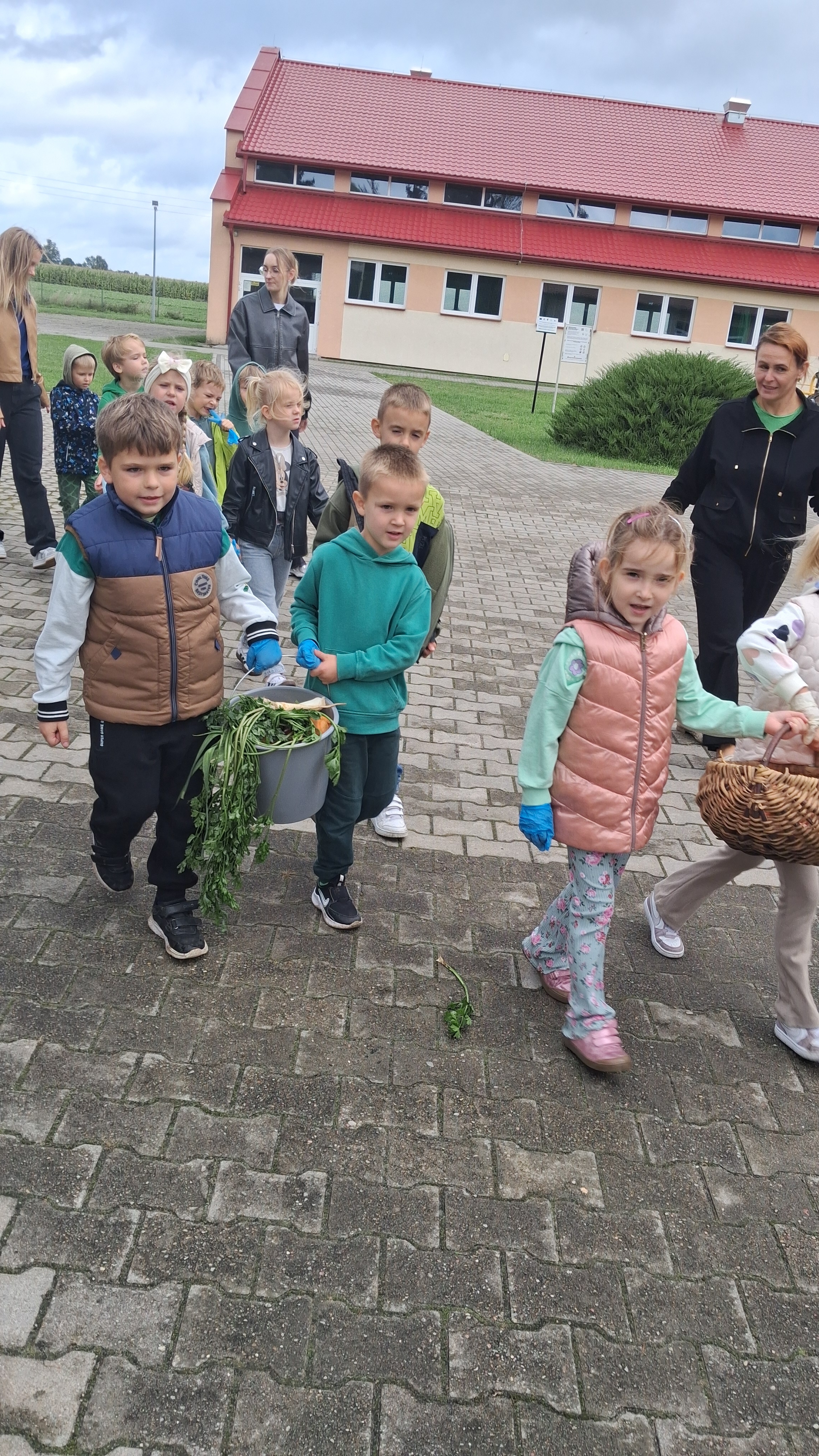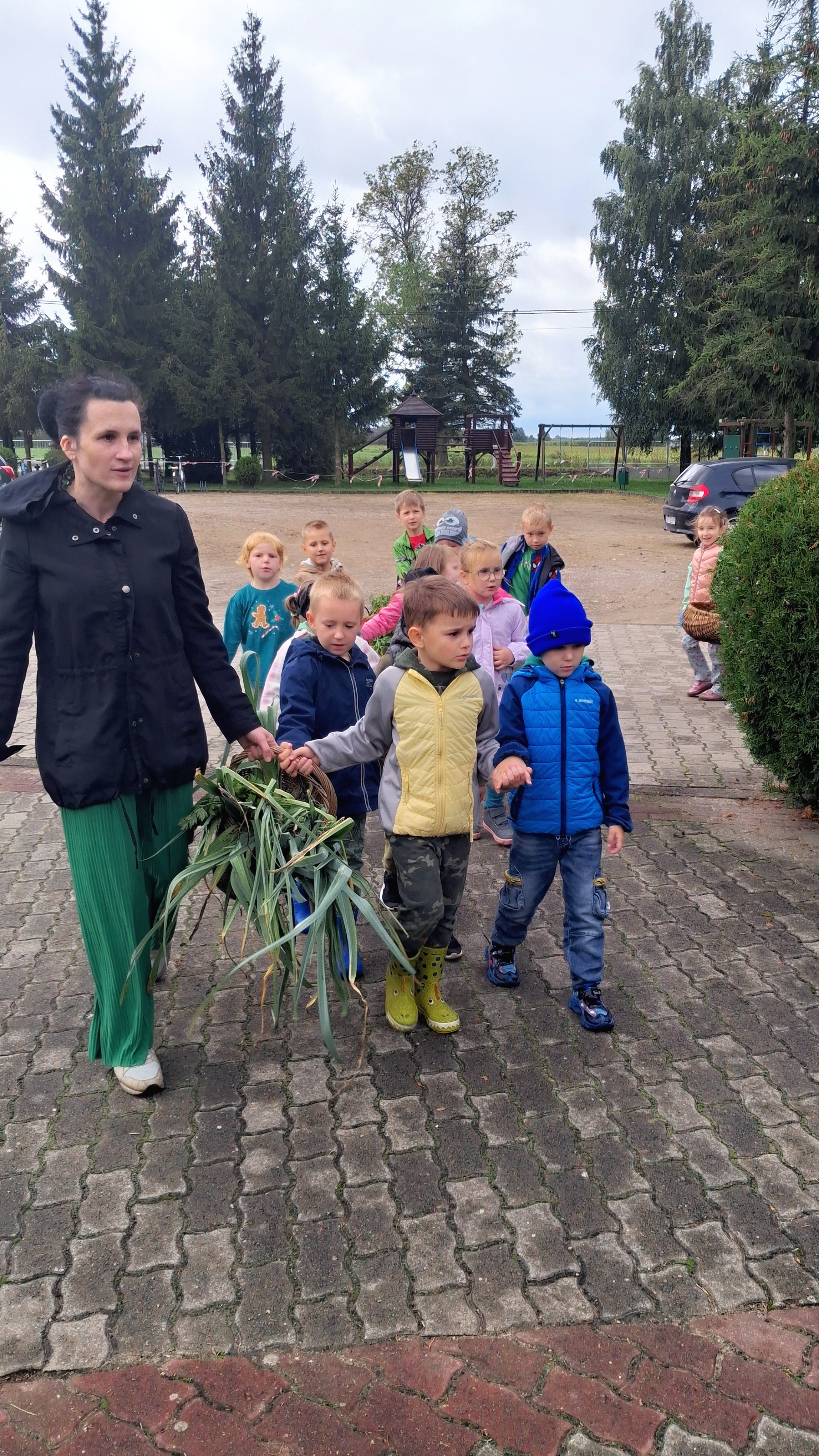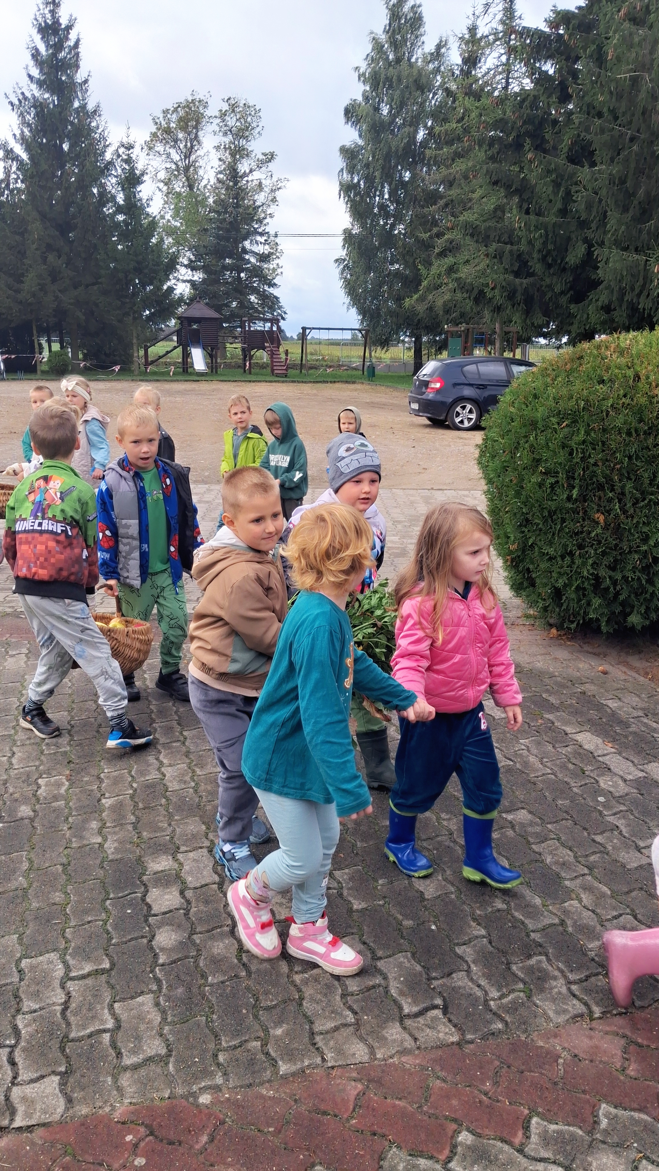 Przedszkolaki z wielkim zaangażowaniem wykopywały warzywa, które urosły latem – marchewki, buraki i pietruszkę, selery i pory. Była to dla nich świetna zabawa, a jednocześnie nauka, skąd biorą się zdrowe warzywa. Dzieci z radością zbierały plony i z dumą układały je w koszykach.