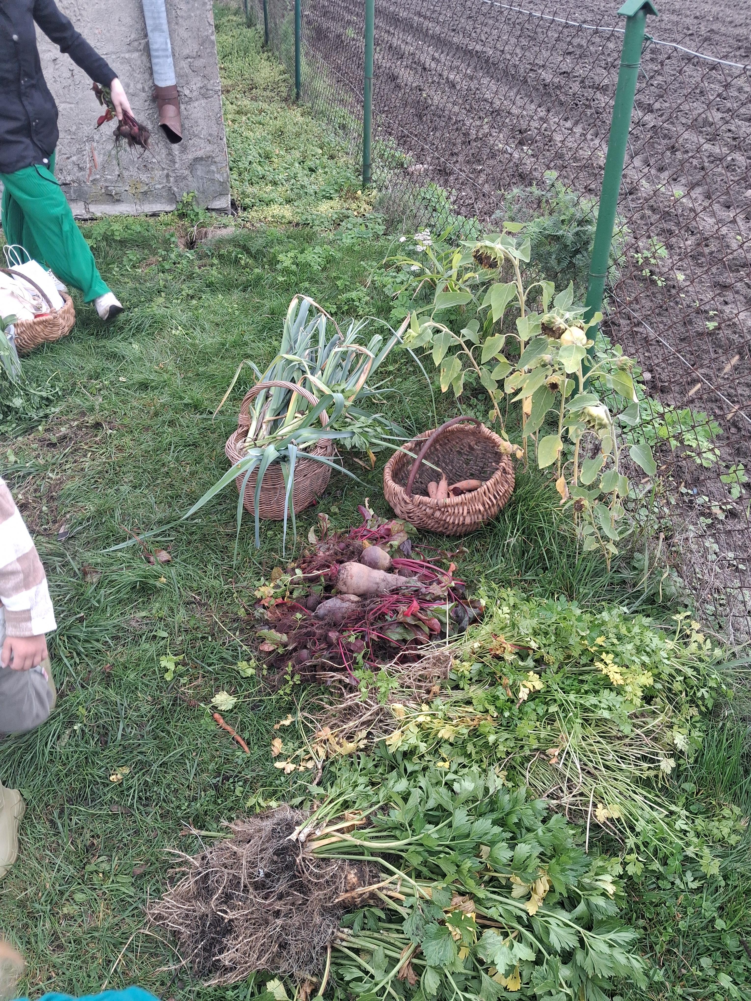 Oprócz zbiorów wykonaliśmy również inne prace ogrodowe. Grabiliśmy ogródek, usuwaliśmy chwasty i resztki przekwitłych roślin. Na koniec wyczyściliśmy narzędzia ogrodnicze i schowaliśmy je do garażu.
