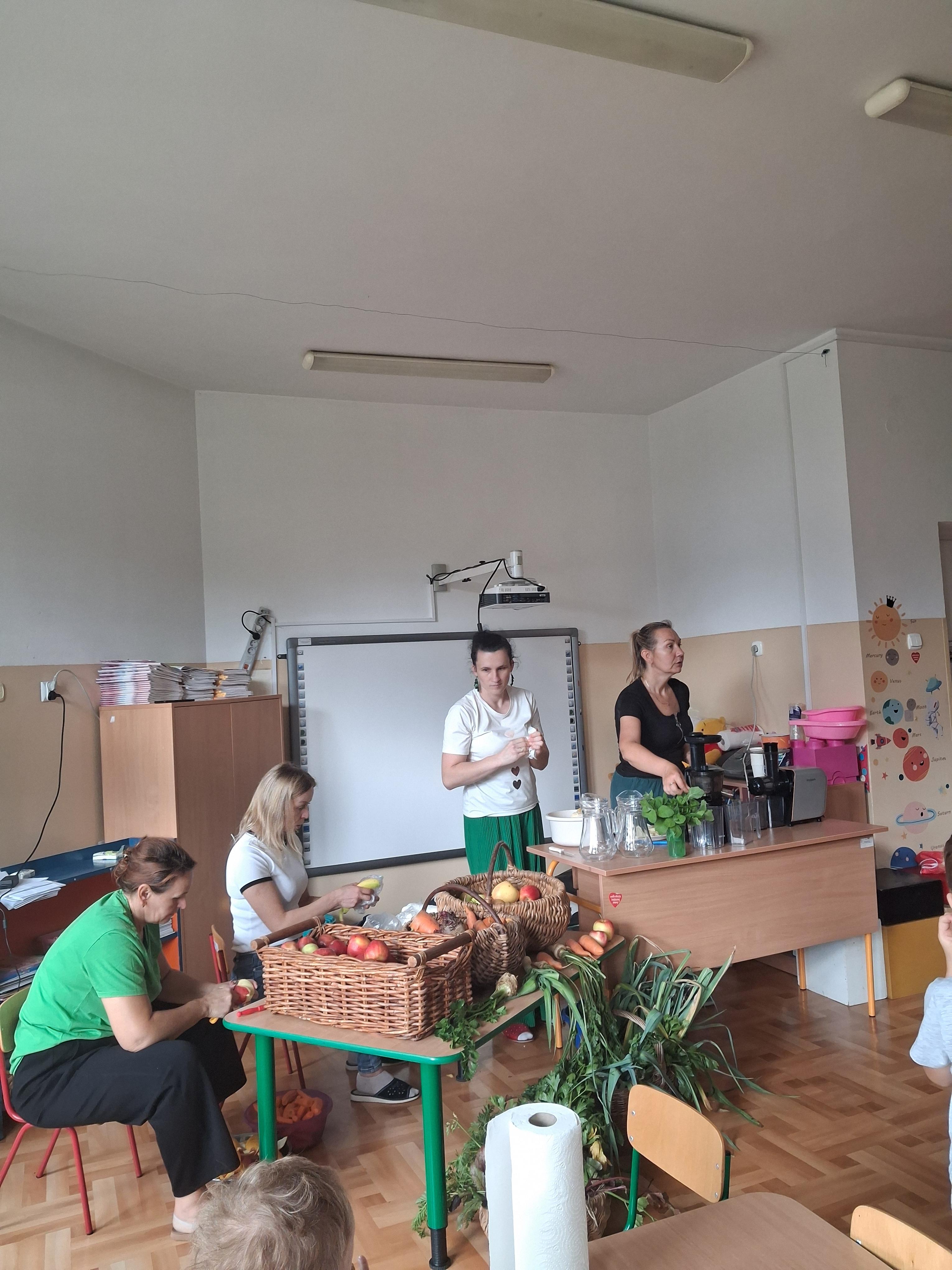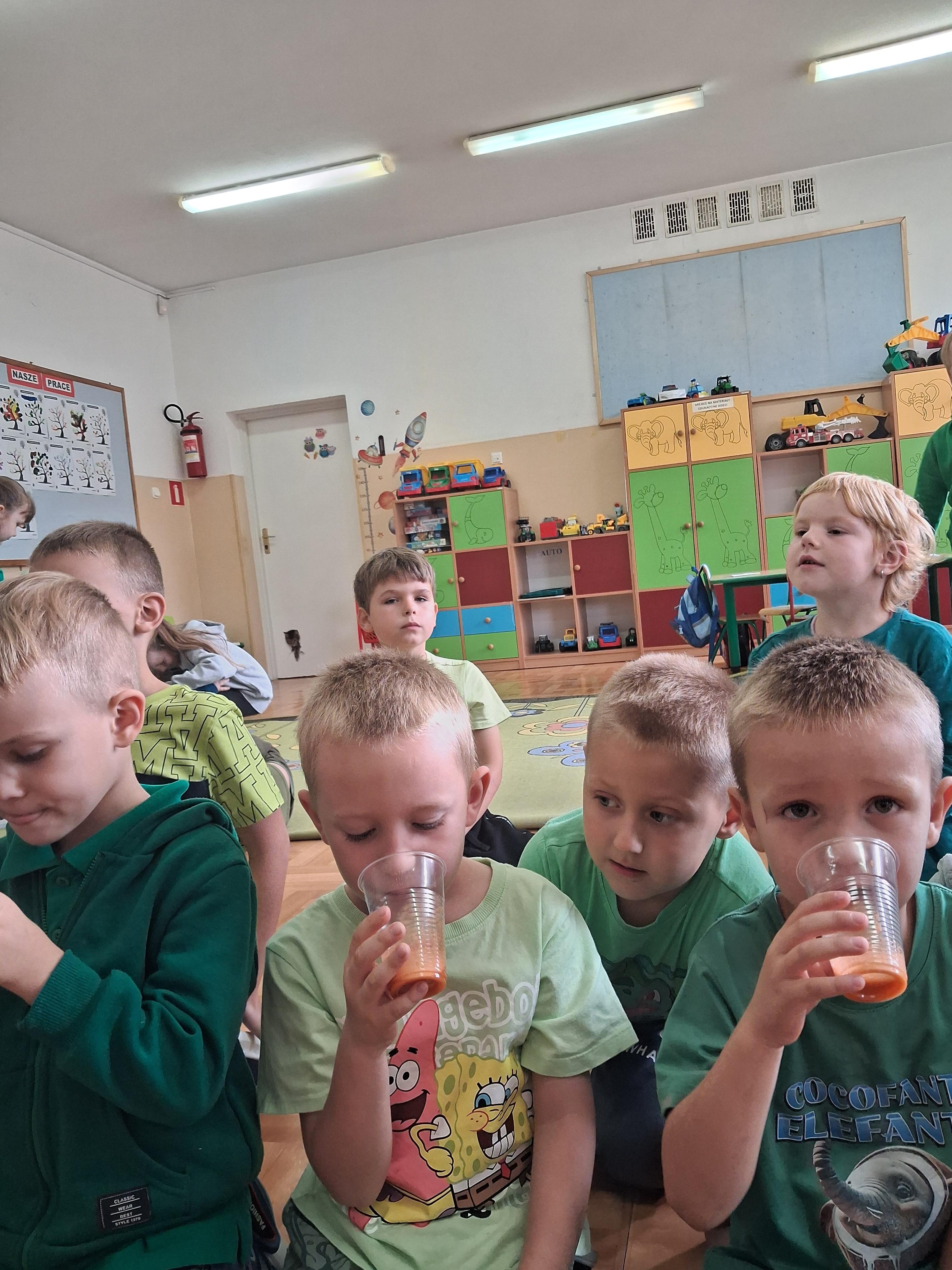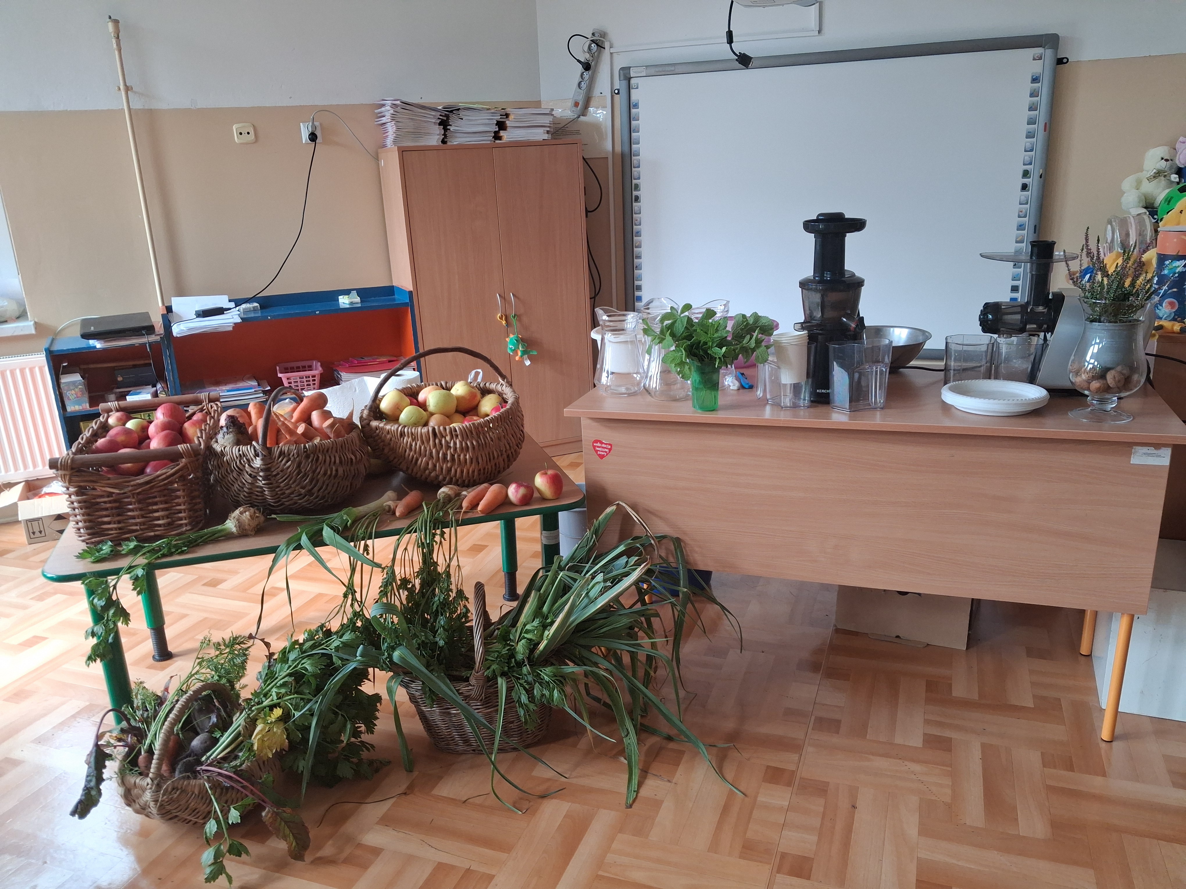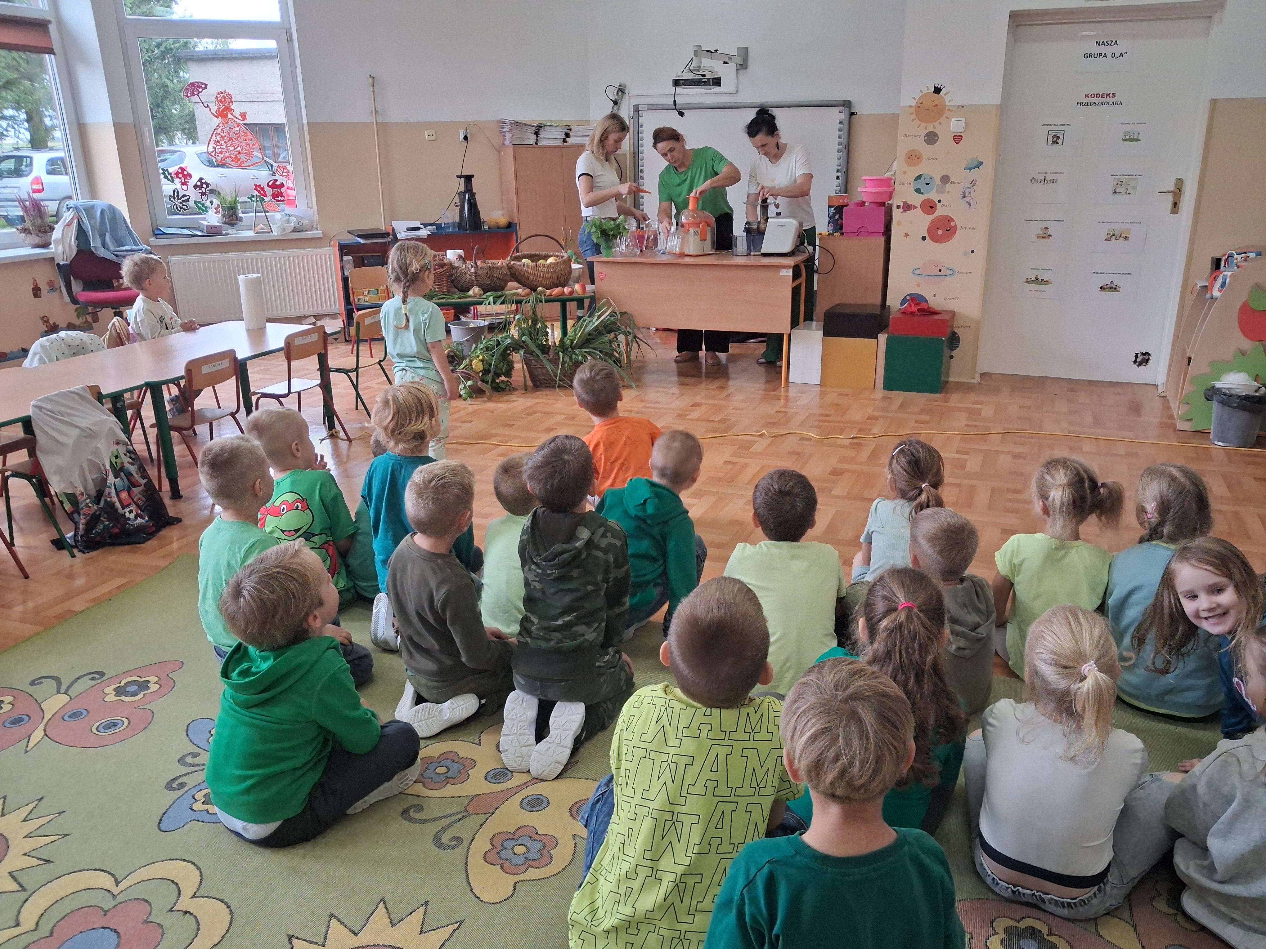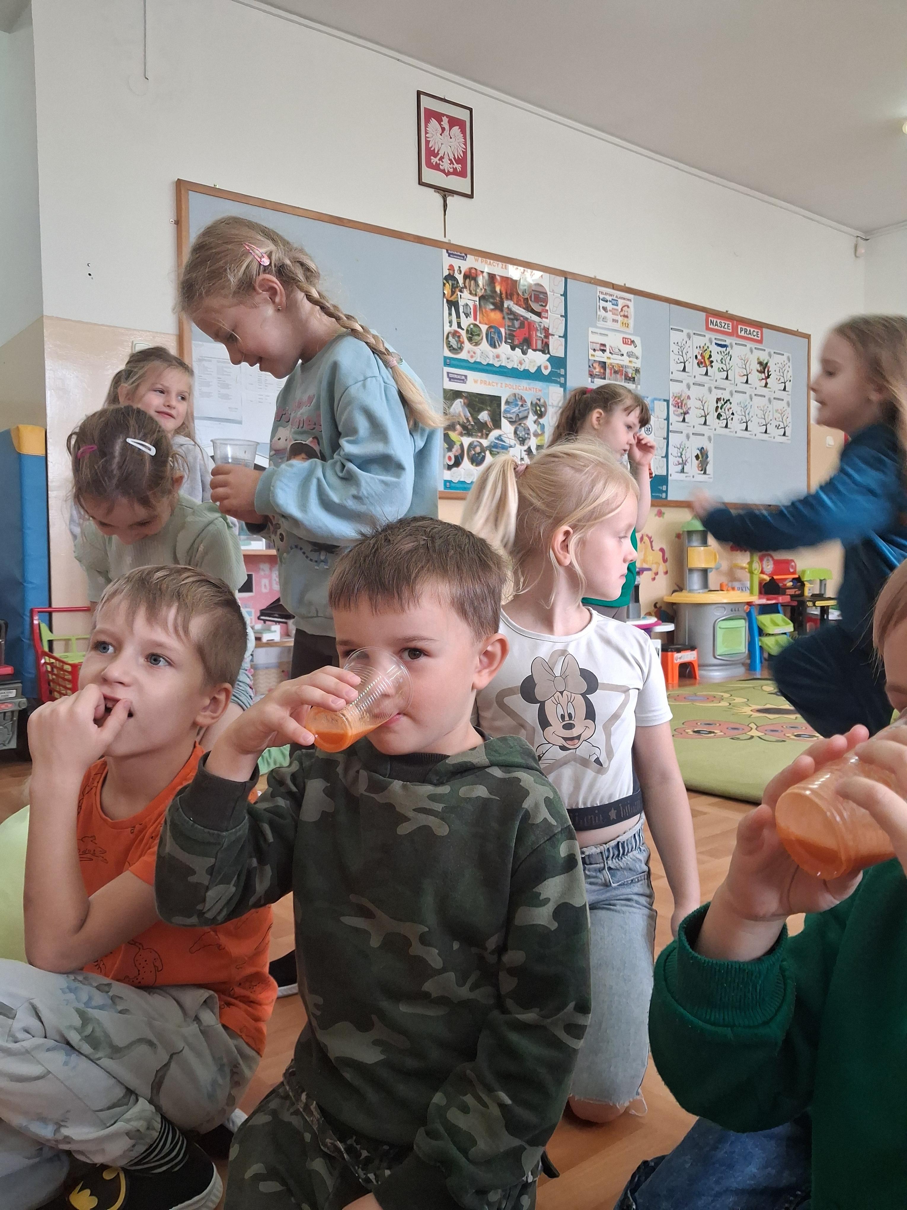 Z zebranych warzyw dzieci wspólnie z nauczycielami przygotowały pyszne i zdrowe przekąski oraz świeżo wyciskane soki. Każdy mógł spróbować świeżo wyciśniętej marchewki czy buraczka prosto z naszego ogródka. To była wspaniała i bardzo zdrowa nagroda za ciężką pracę!