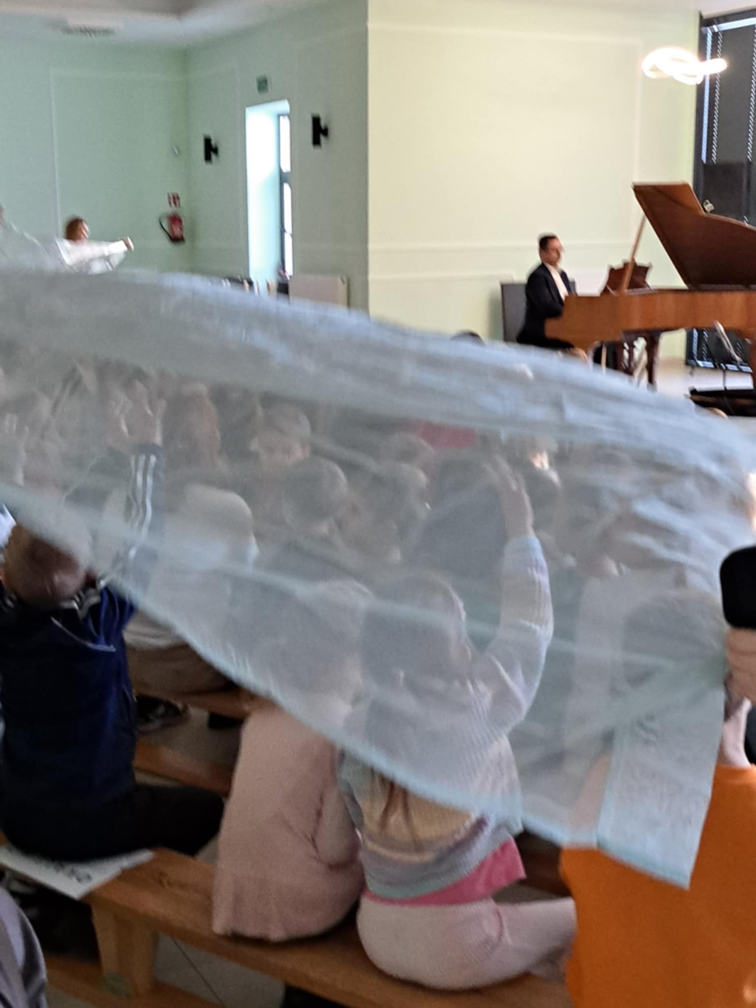 Koncert miał formę interaktywnej zabawy – dzieci aktywnie uczestniczyły w zajęciach, poznawały instrument, rytmy oraz ciekawostki dotyczące historii i twórczości Fryderyka Chopina. Wydarzenie dostarczyło im nie tylko wartościowych doznań artystycznych, ale również cennej wiedzy o polskim dziedzictwie muzycznym.