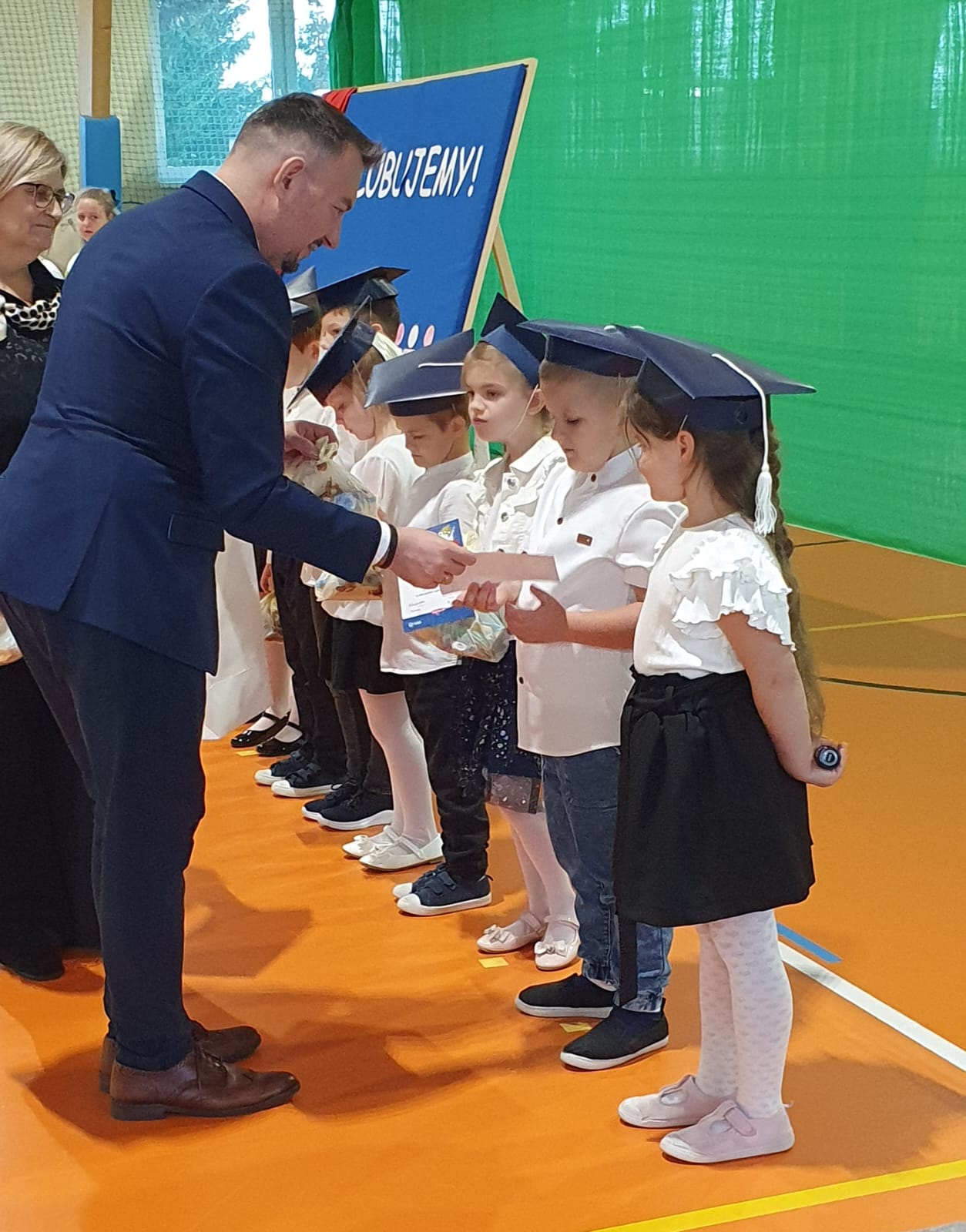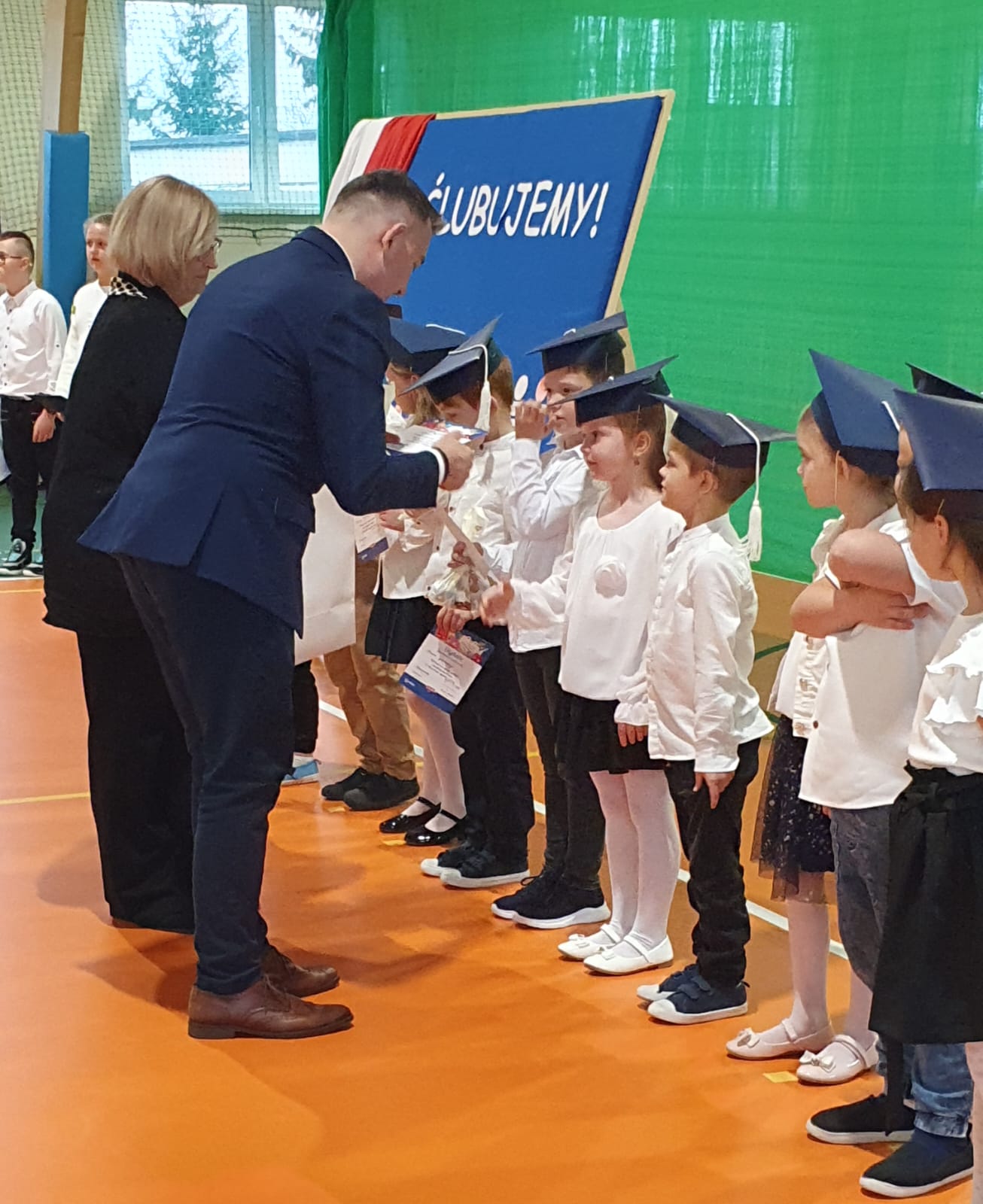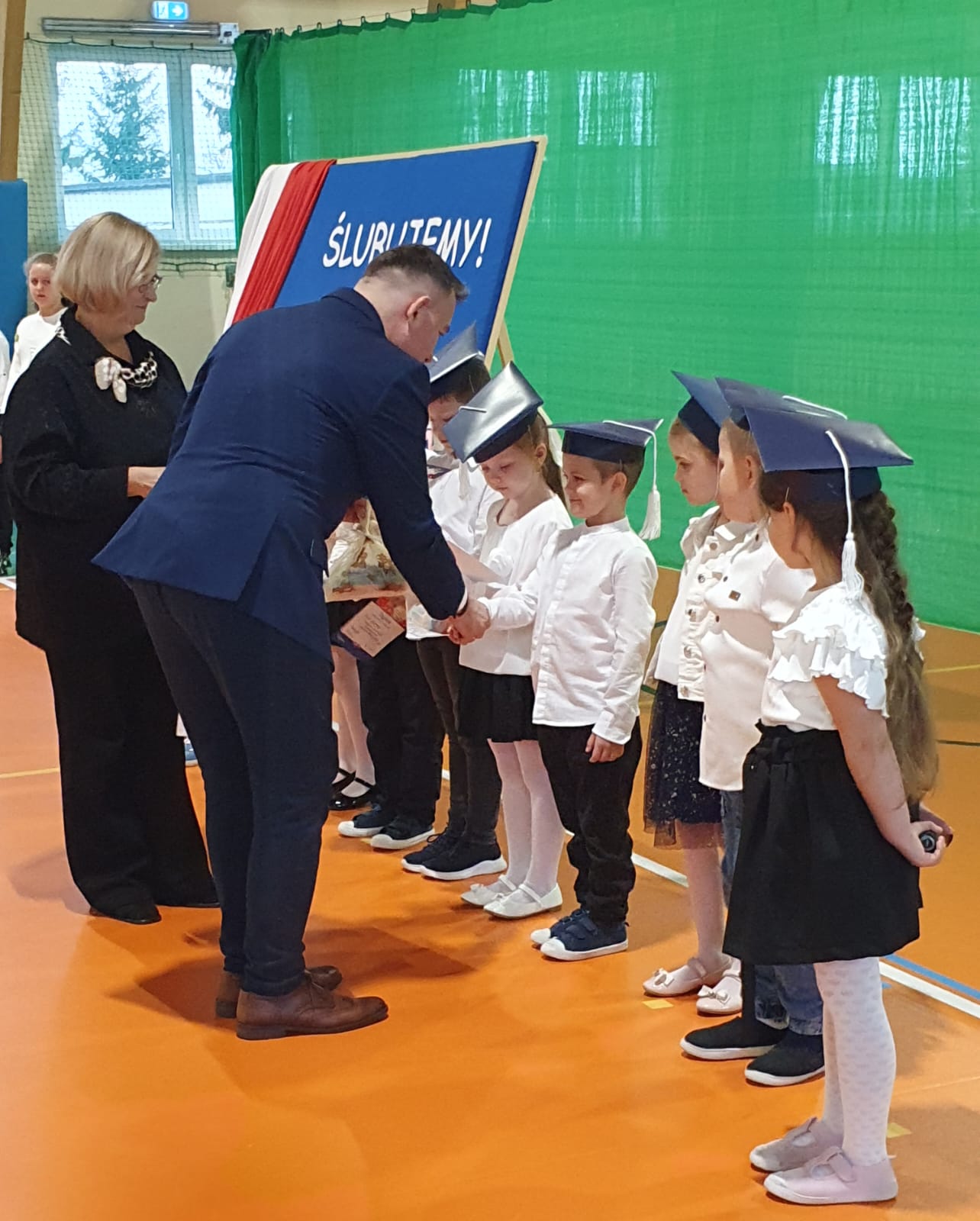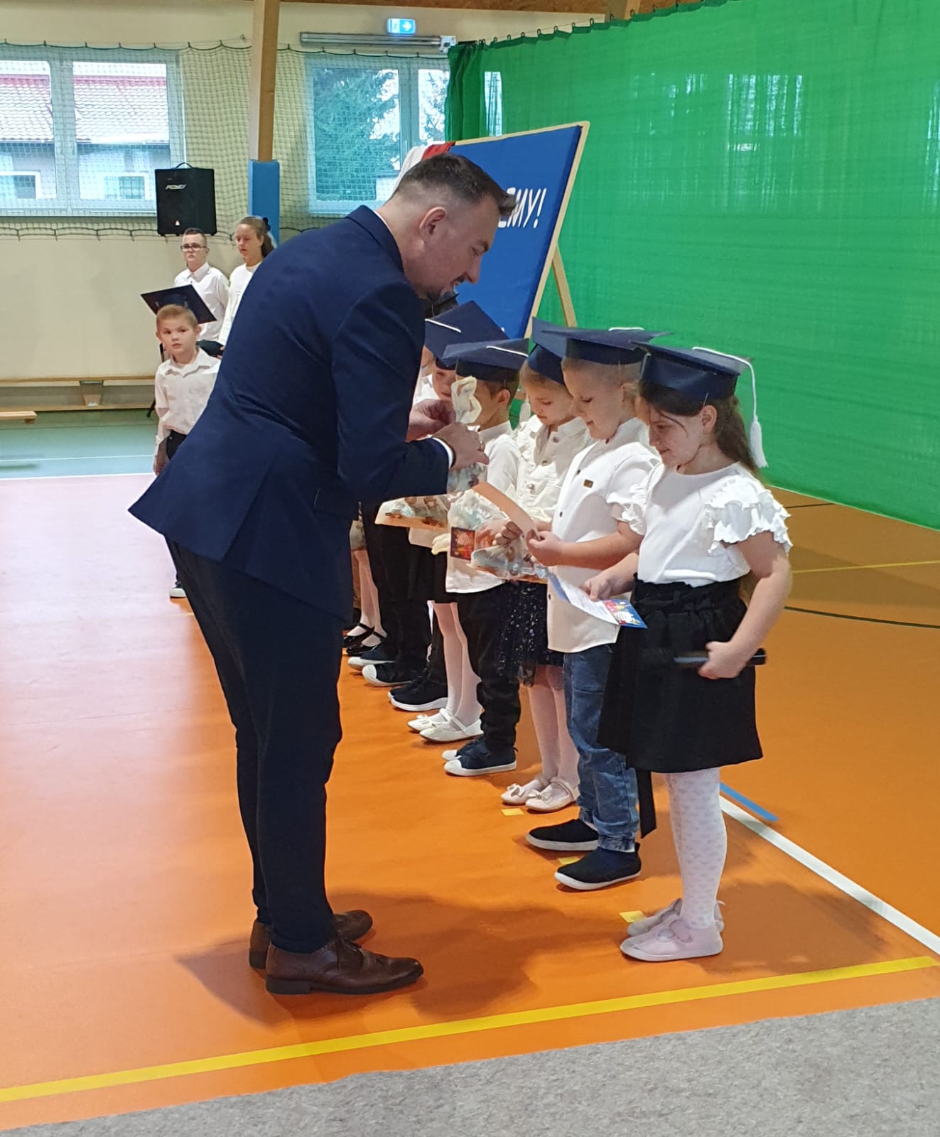 W części oficjalnej uczniowie złożyli ślubowanie na sztandar szkoły, po czym pan Dyrektor pasował ich na uczniów Szkoły Podstawowej w Okalewie. Nie zabrakło również drobnych upominków, które sprawiły pierwszakom wiele radości.