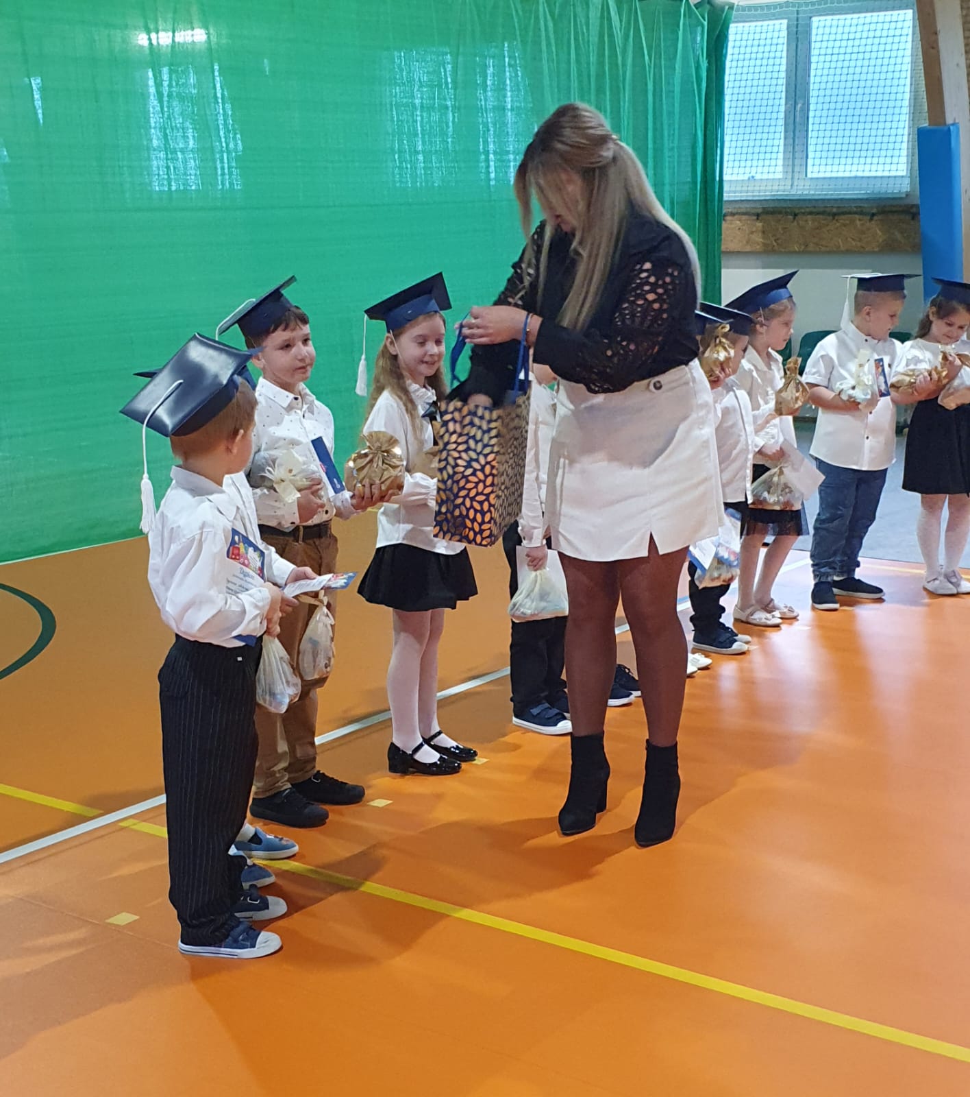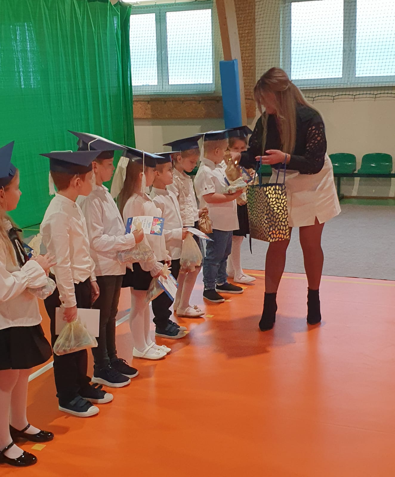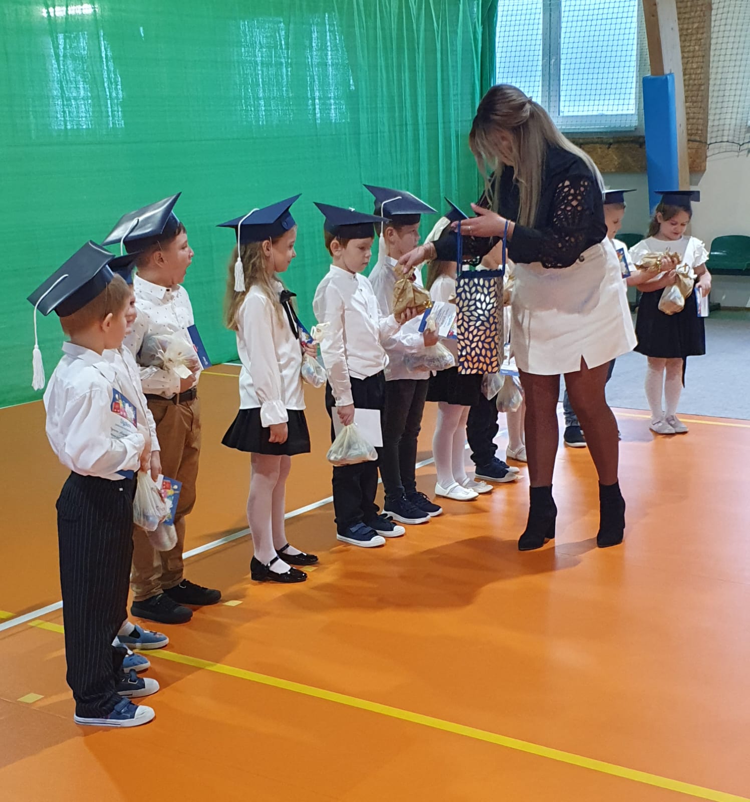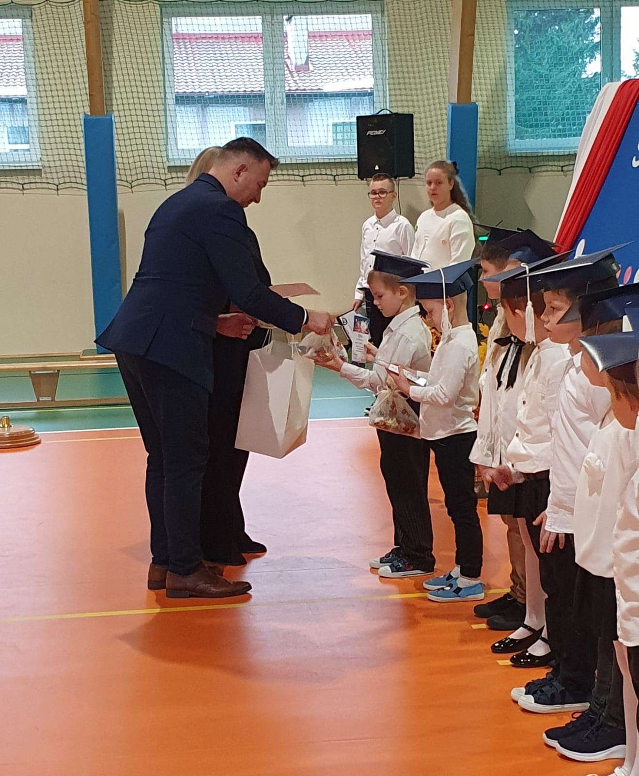W części oficjalnej uczniowie złożyli ślubowanie na sztandar szkoły, po czym pan Dyrektor pasował ich na uczniów Szkoły Podstawowej w Okalewie. Nie zabrakło również drobnych upominków, które sprawiły pierwszakom wiele radości.