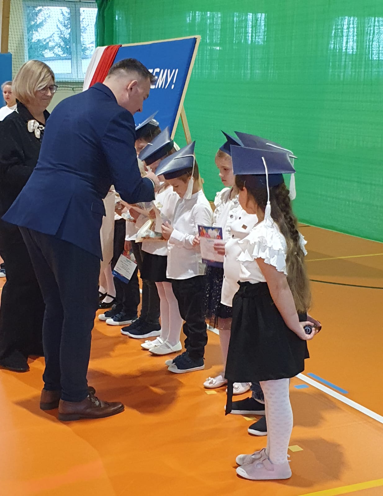 „Co wiemy, to mała kropelka, czego nie wiemy, to wielki ocean.” Nawiązując do tych słów, pan Dyrektor zachęcił uczniów do odkrywania świata, zadawania pytań i nieustannego poszerzania wiedzy. Życzył pierwszoklasistom wielu sukcesów, satysfakcji z nauki oraz odwagi w pokonywaniu trudności. Rodzicom podziękował za zaufanie, a wychowawczyni klasy pierwszej wyraził wdzięczność za dotychczasową pracę i zaangażowanie.
