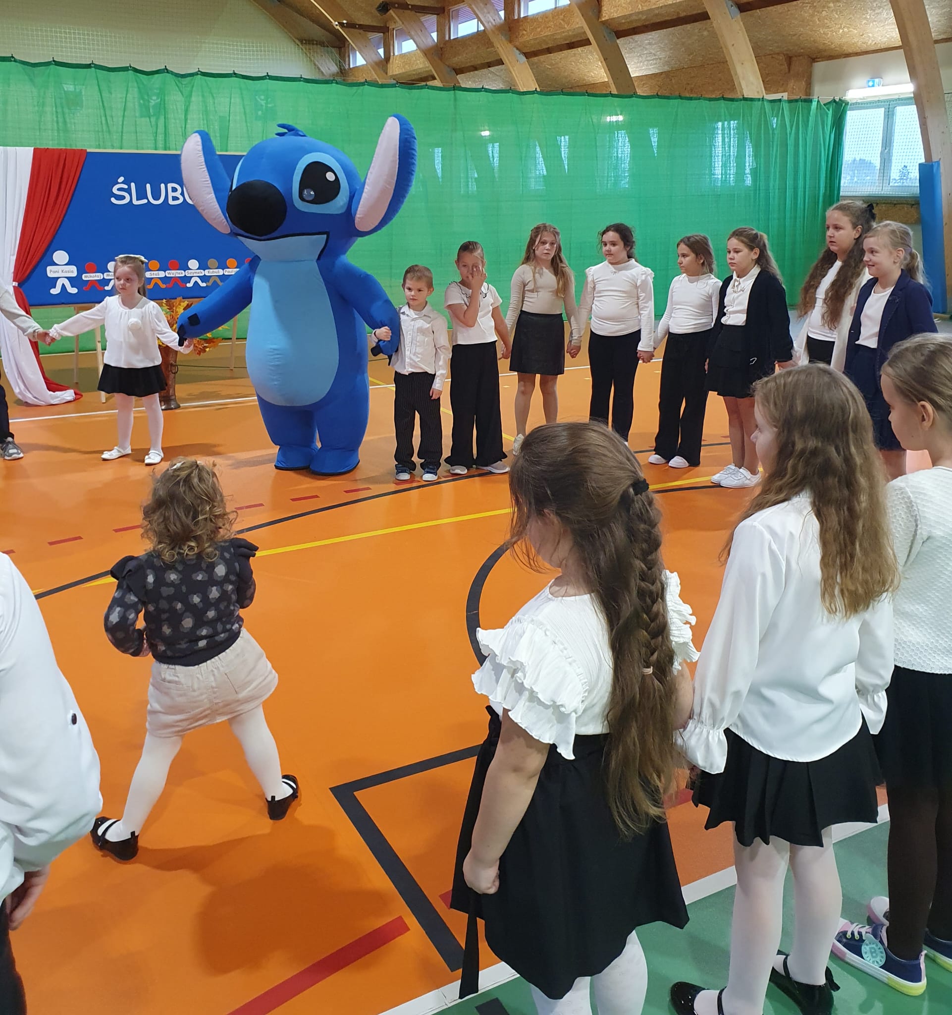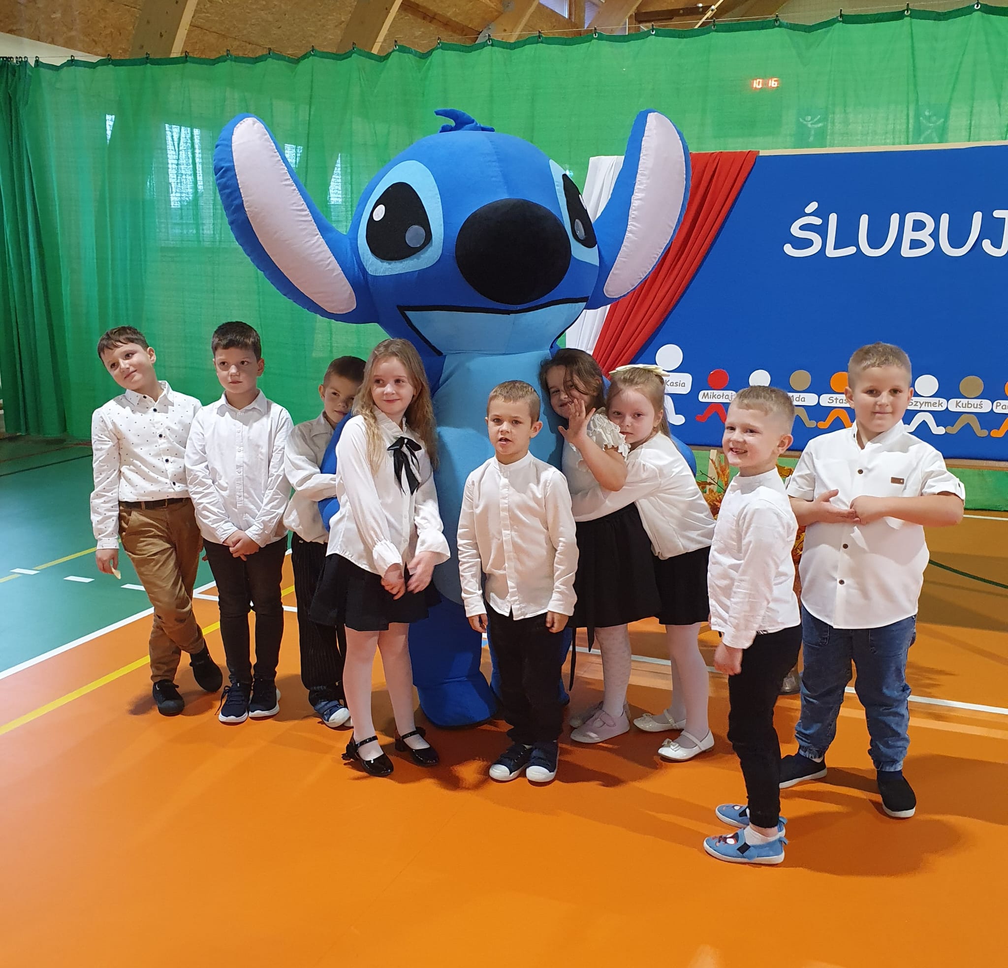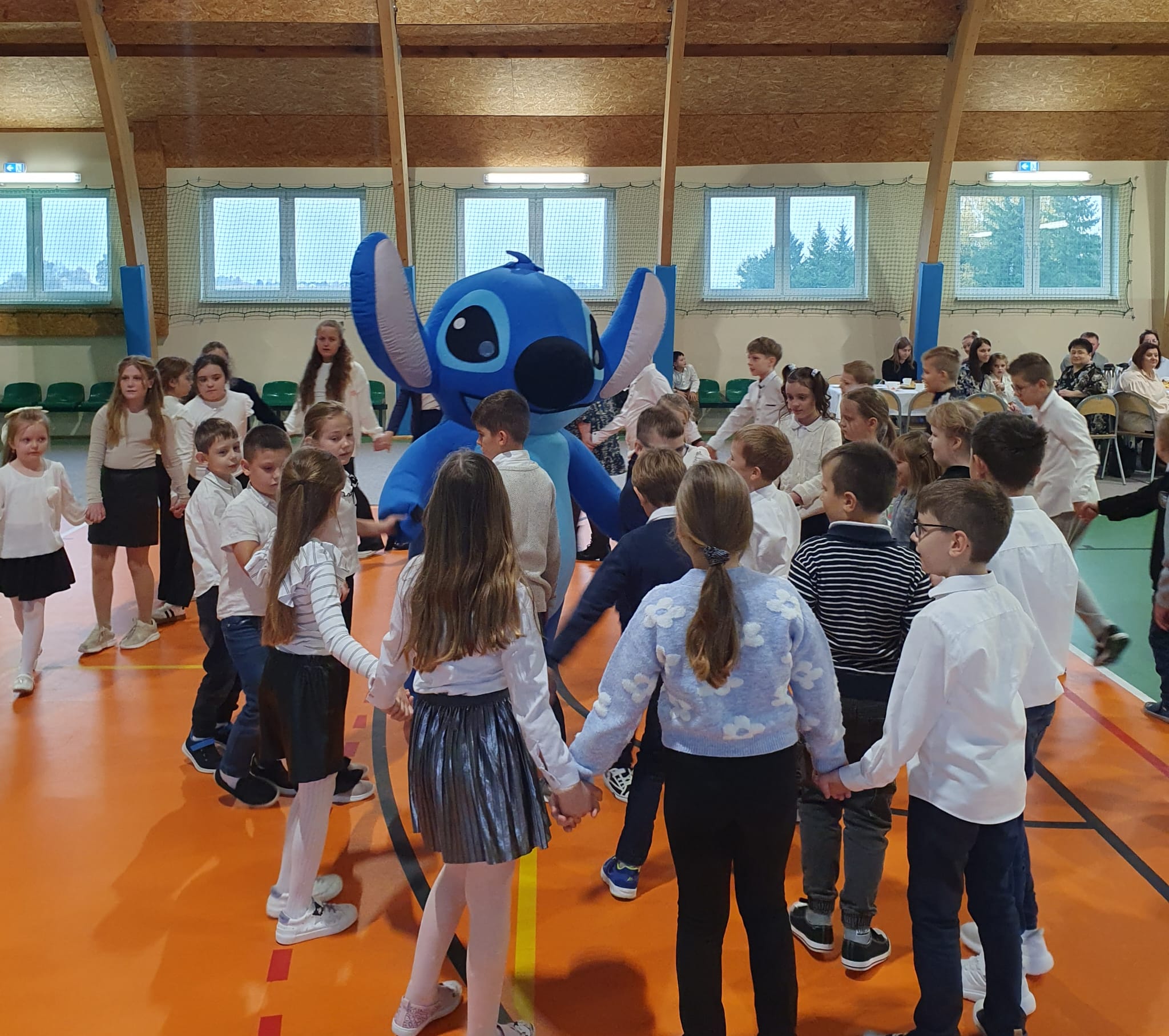 Po zakończeniu części oficjalnej na dzieci czekała miła niespodzianka – wspólna zabawa z maskotką Stitchem, która dostarczyła wszystkim mnóstwo uśmiechu i pozytywnych emocji.