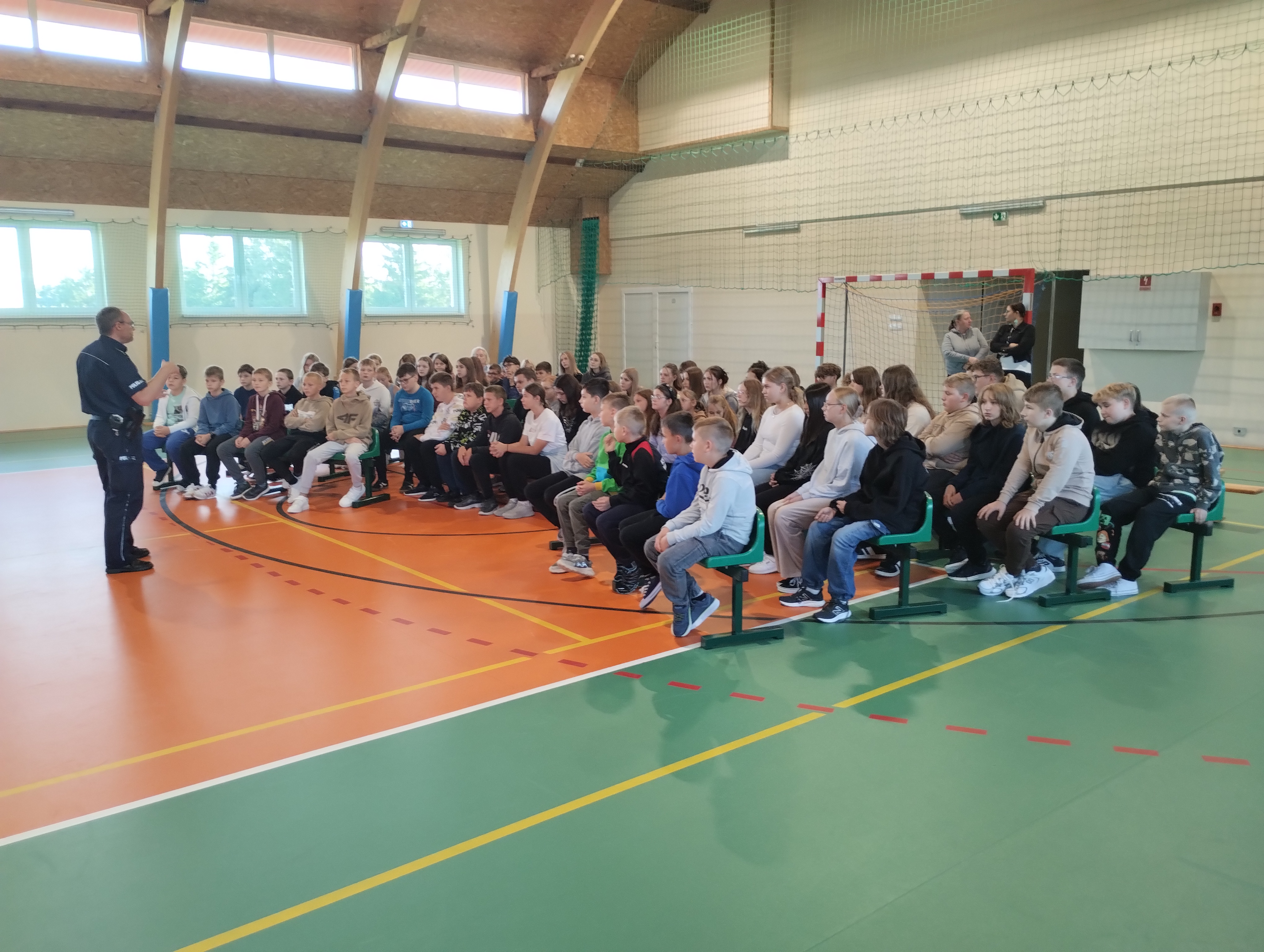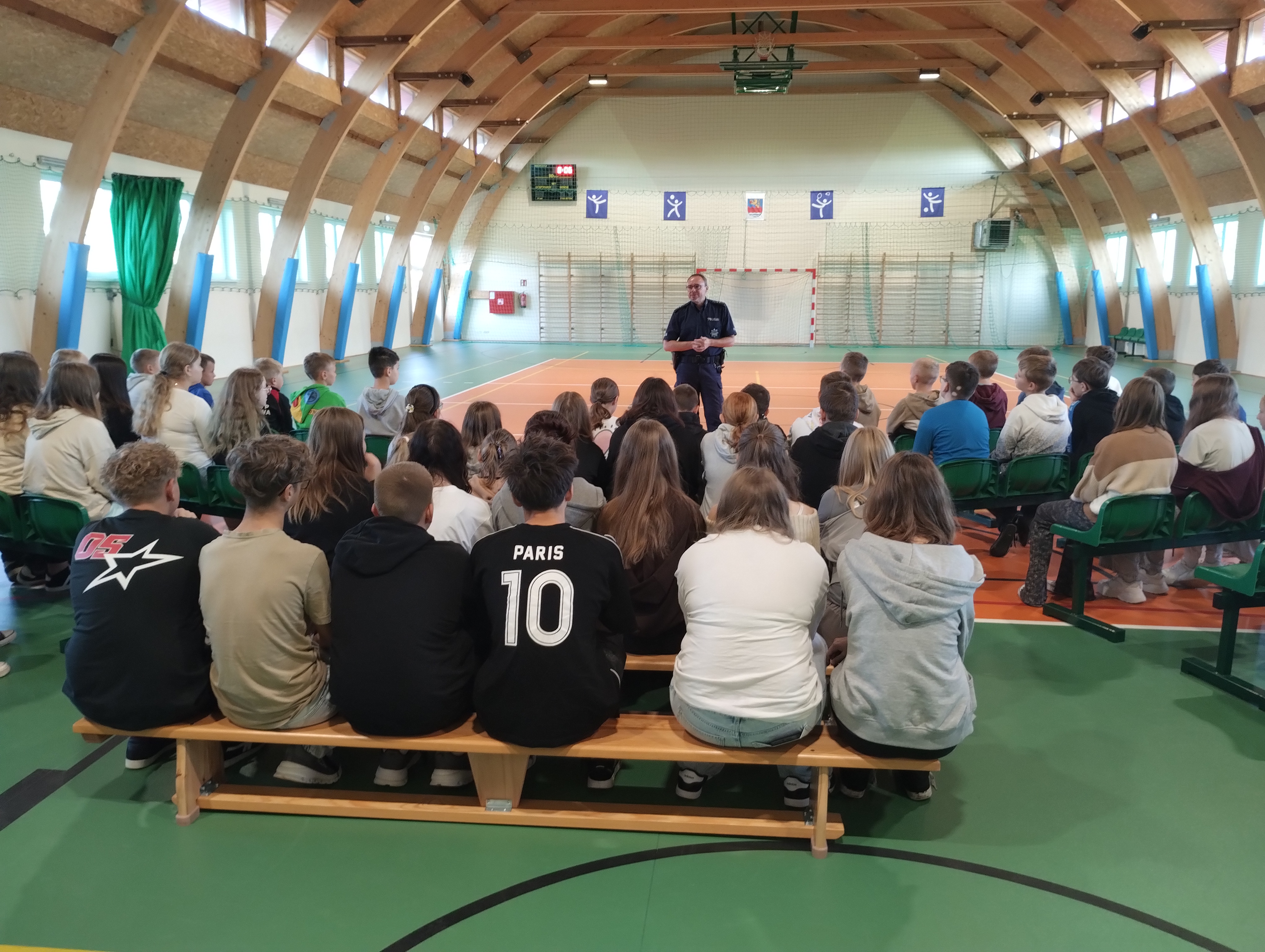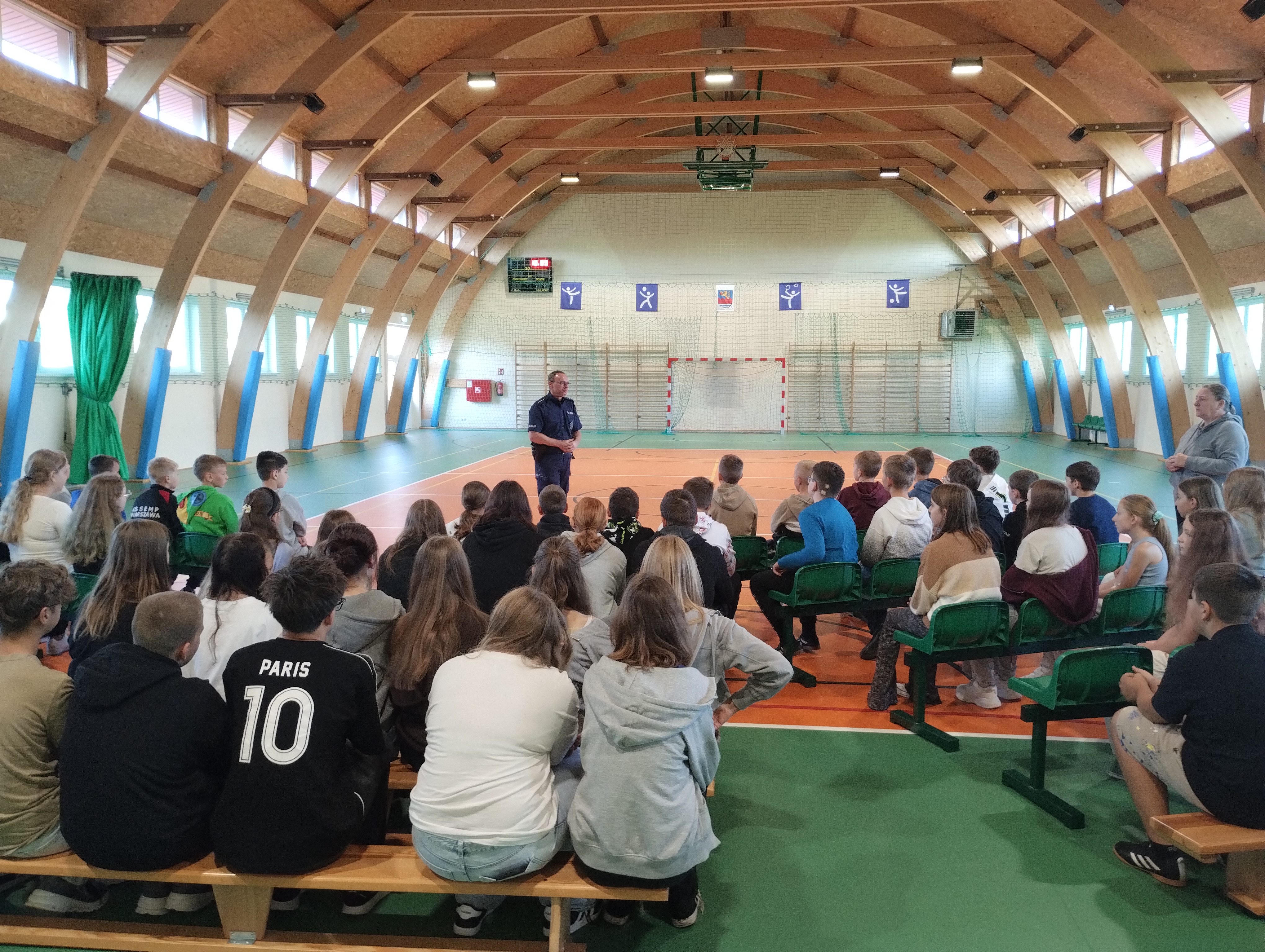 Dnia 18 września 2025 roku dzielnicowi Komendy Powiatowej Policji w Rypinie z gminy Skrwilno - st. asp. Marcin Jackowski i asp. Artur Grzegorzewski spotkali się z uczniami wszystkich klas naszej szkoły.