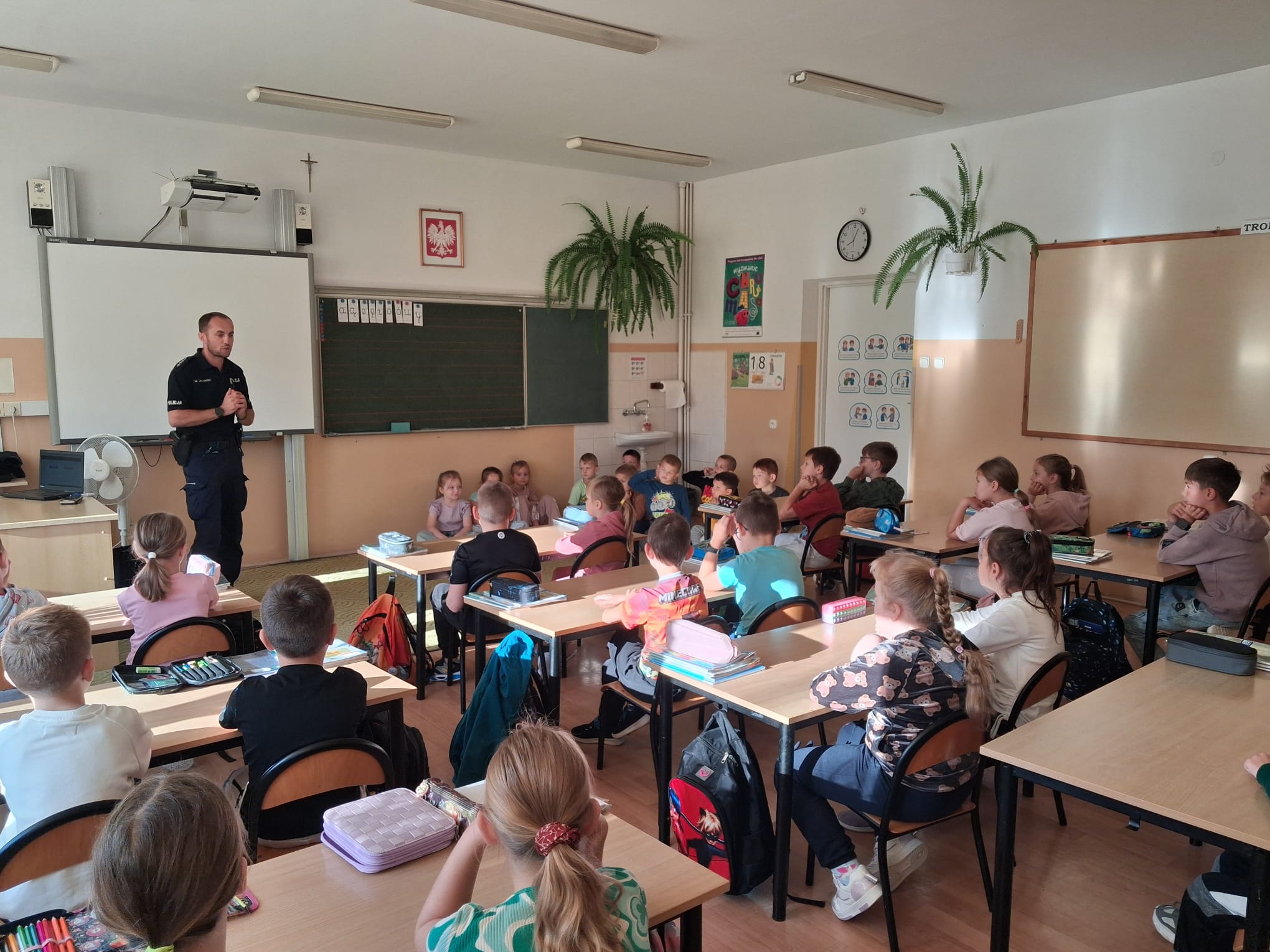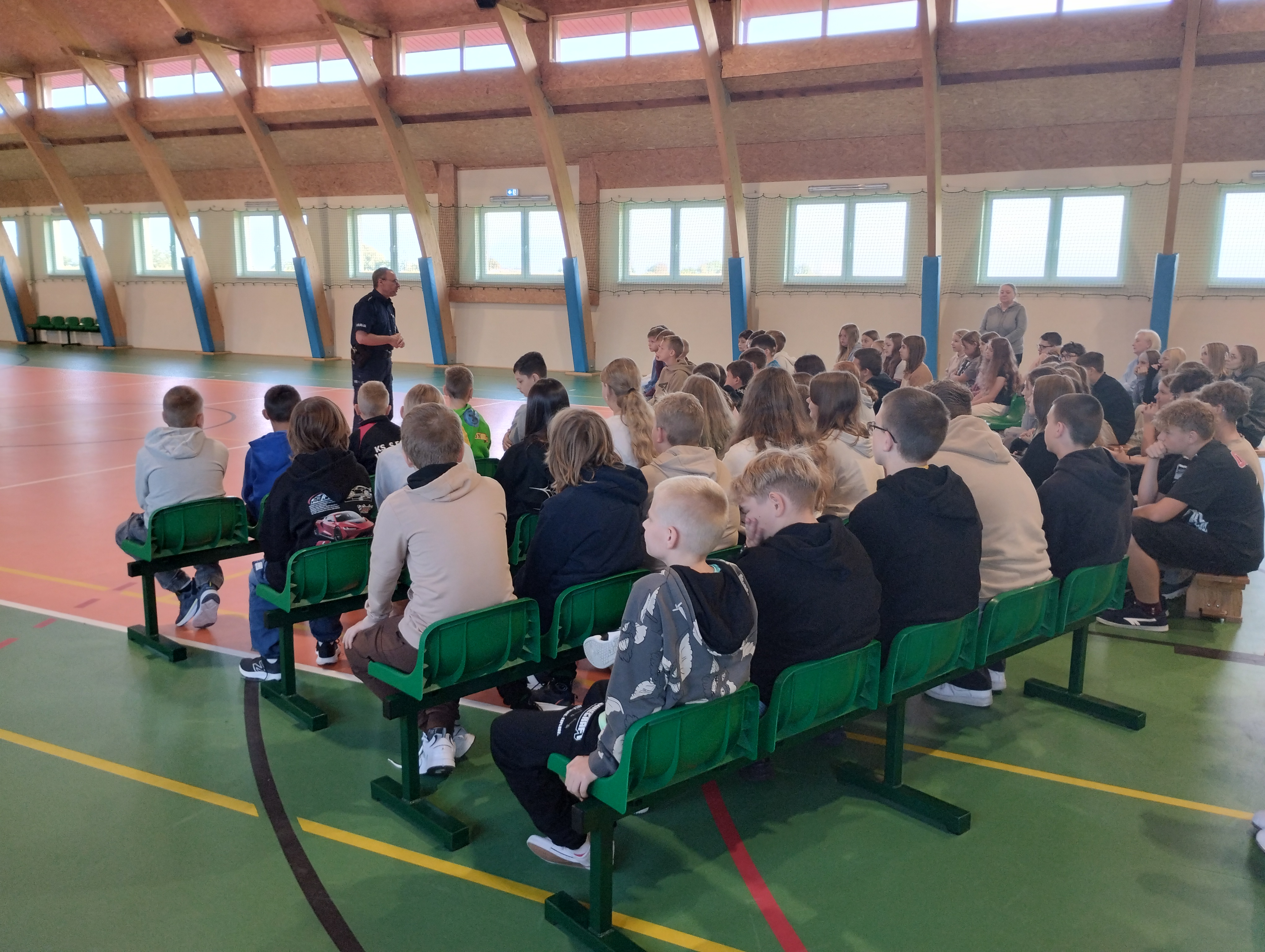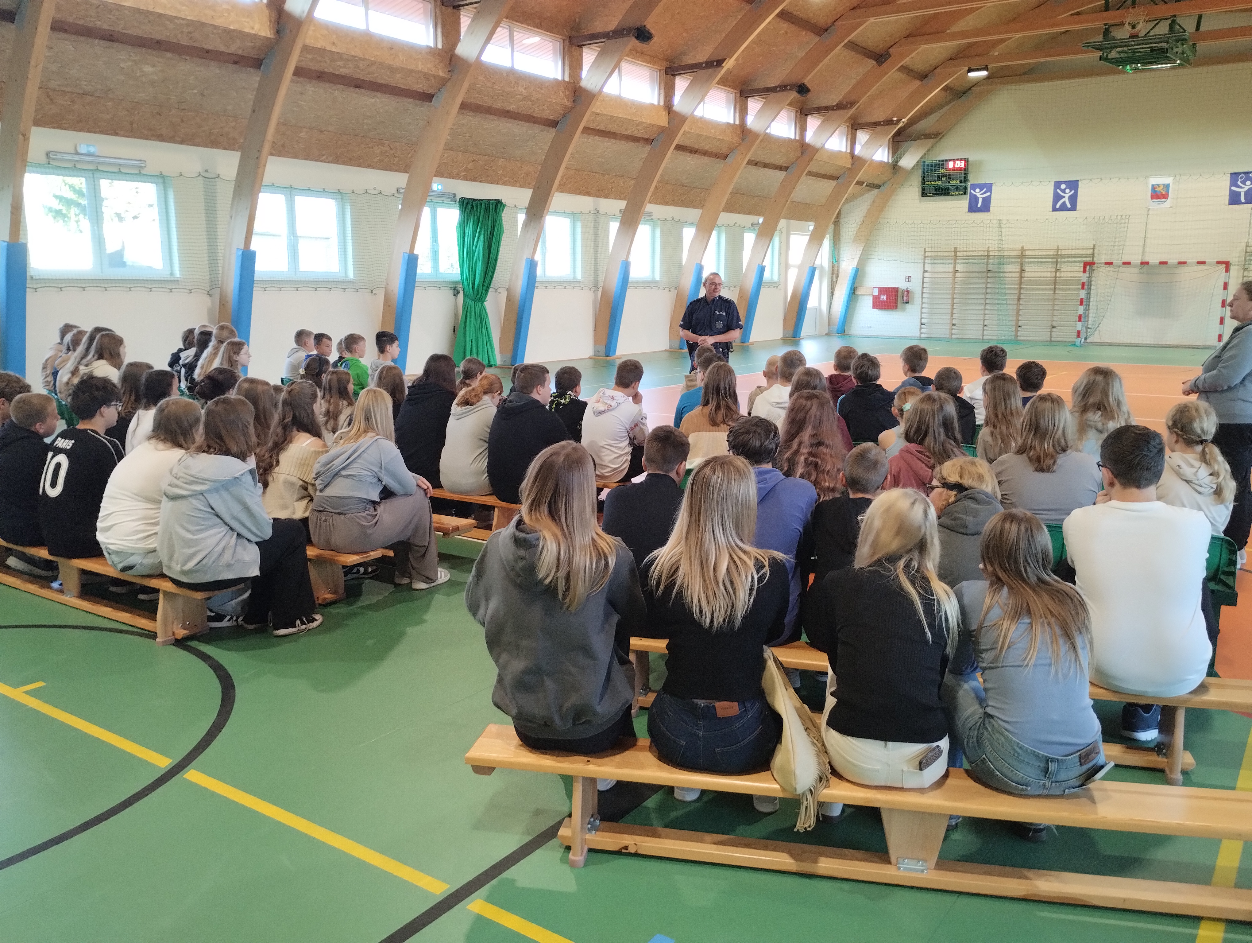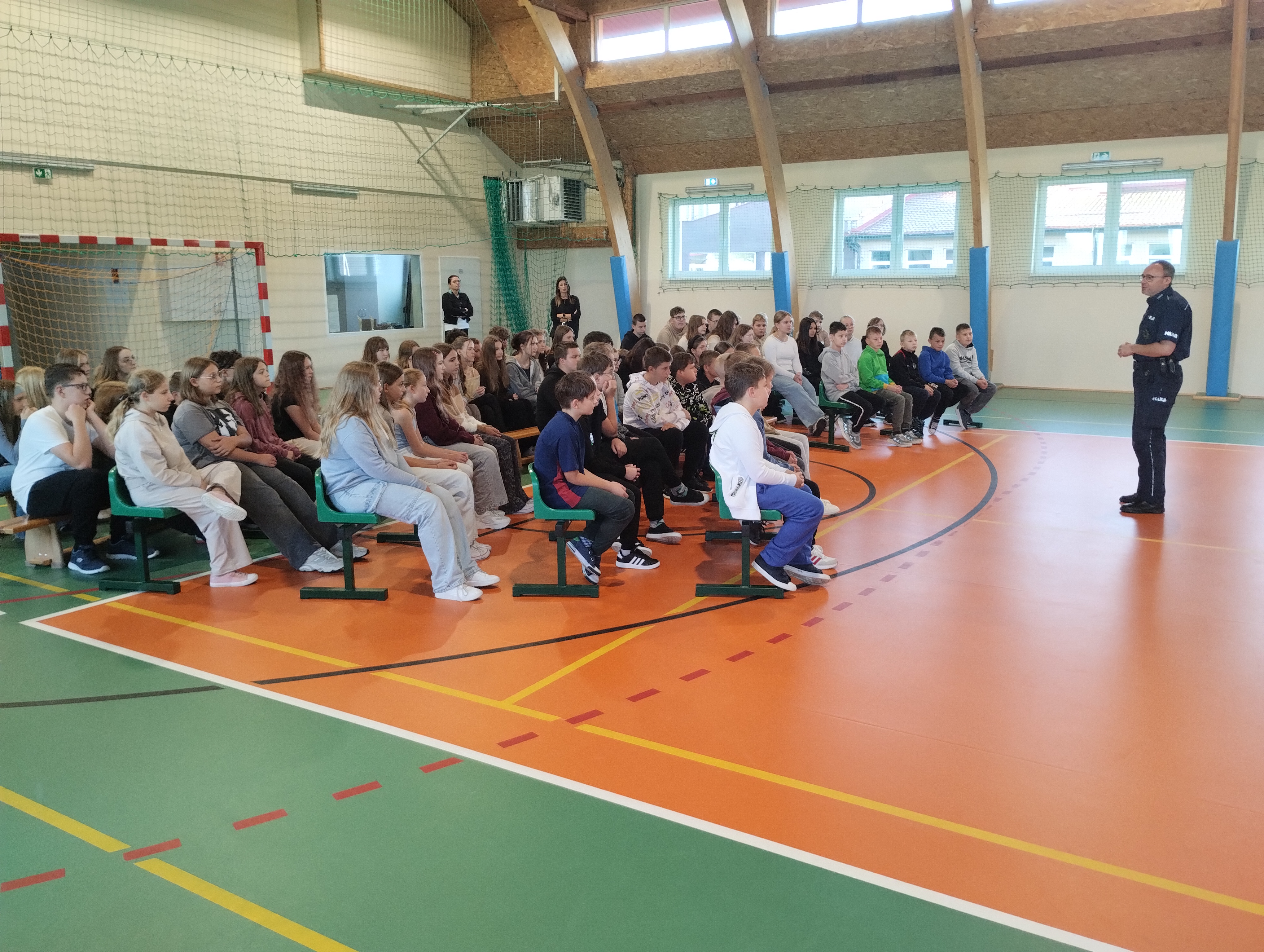 Dnia 18 września 2025 roku dzielnicowi Komendy Powiatowej Policji w Rypinie z gminy Skrwilno - st. asp. Marcin Jackowski i asp. Artur Grzegorzewski spotkali się z uczniami wszystkich klas naszej szkoły.