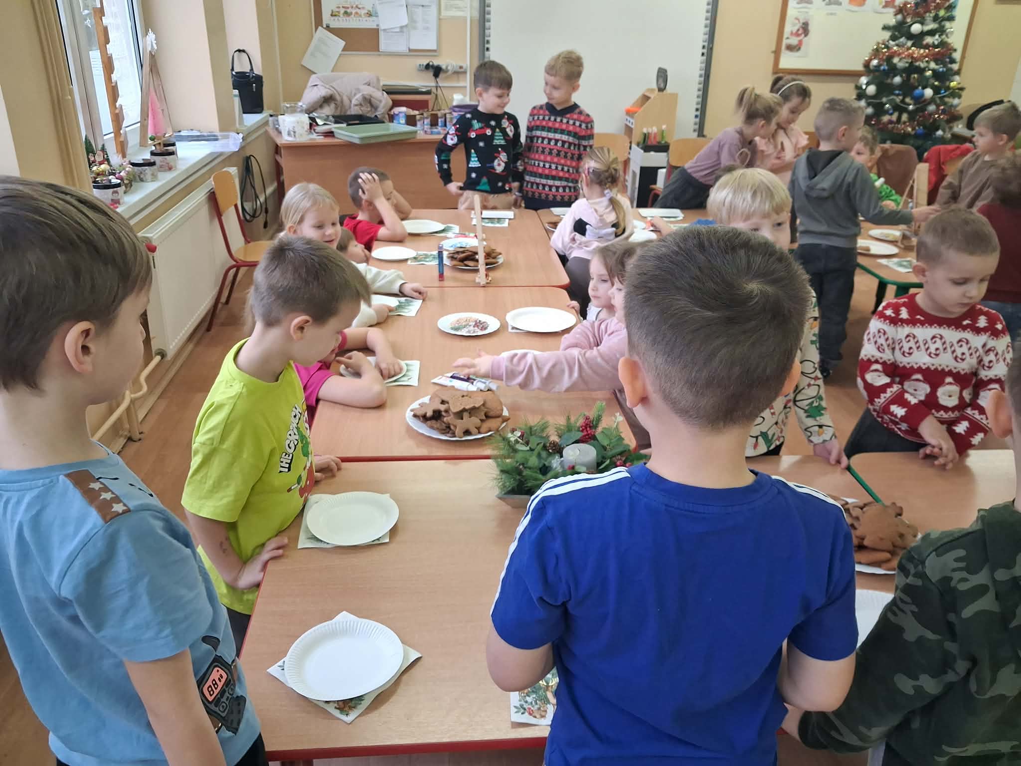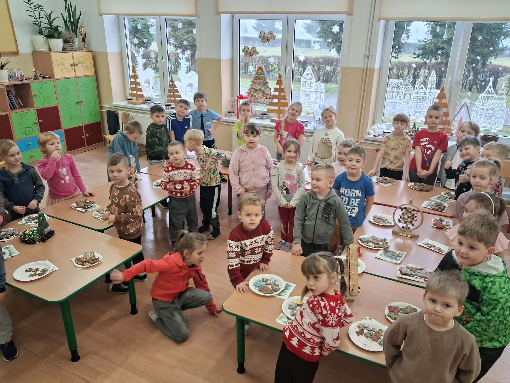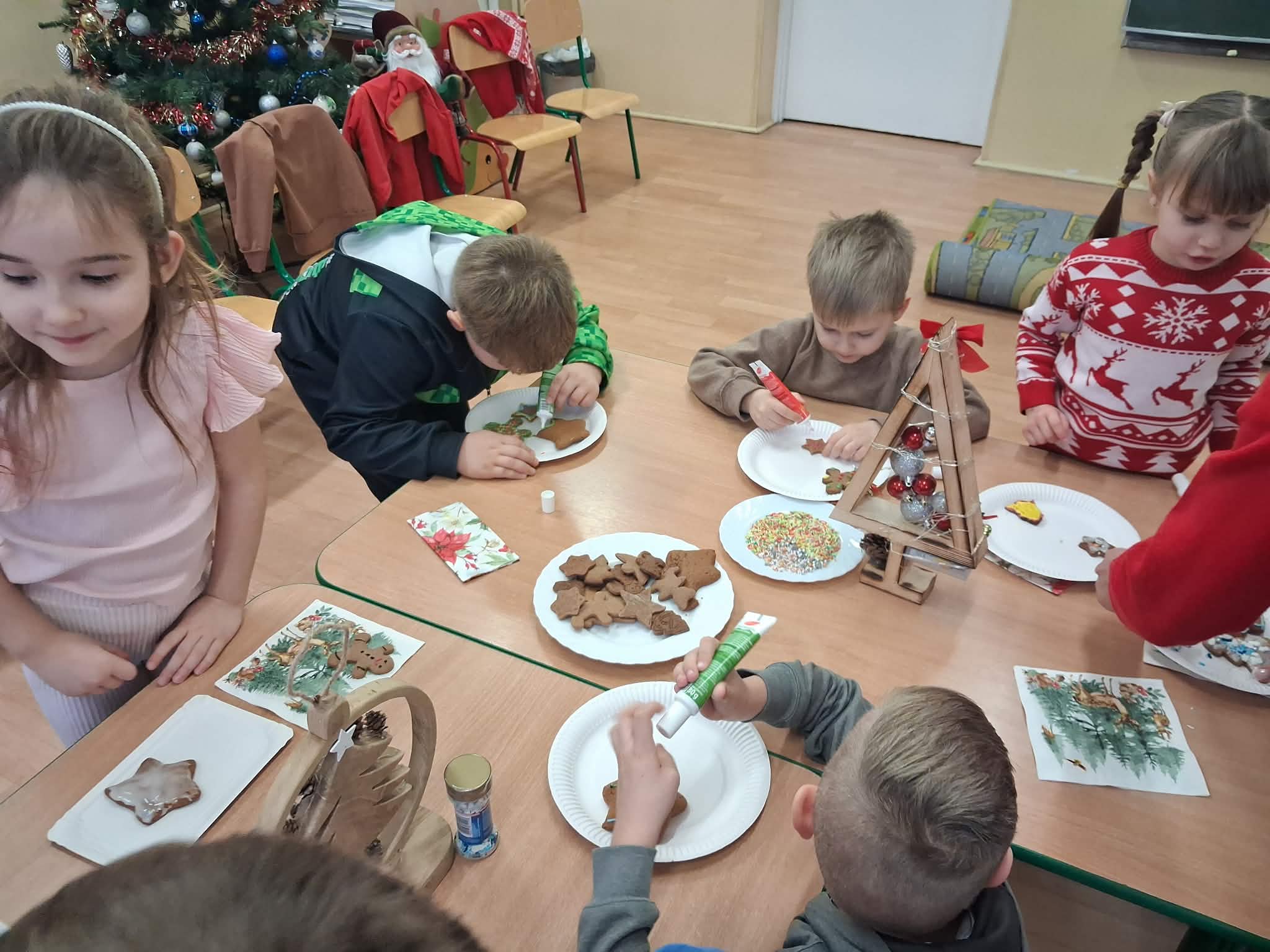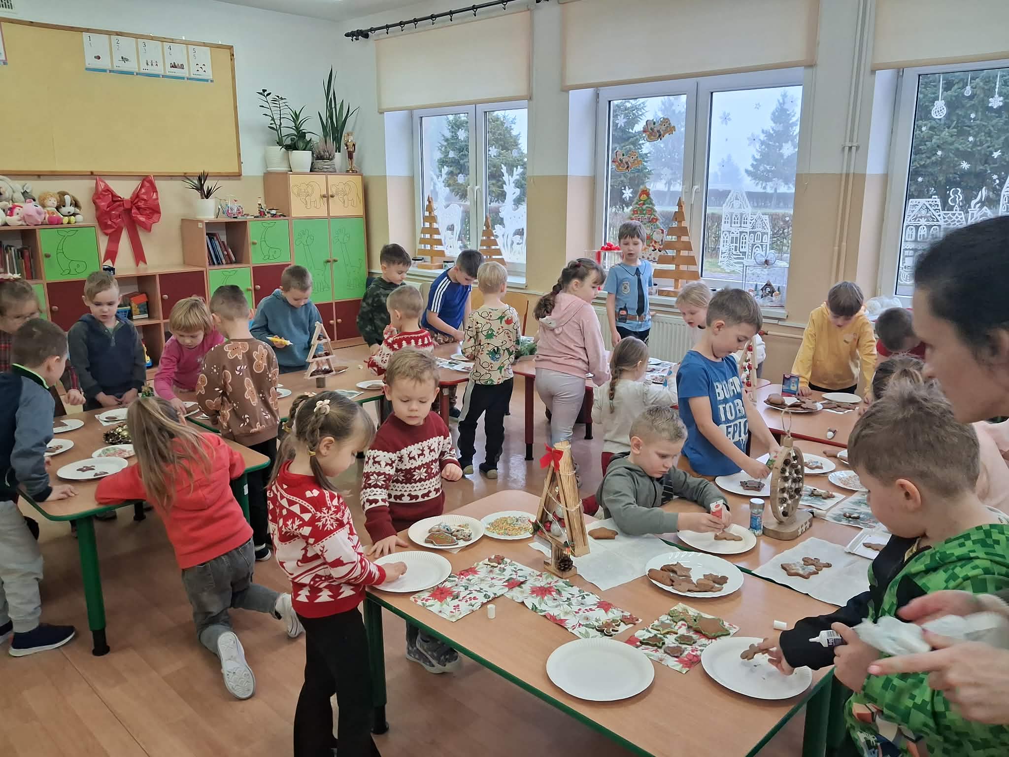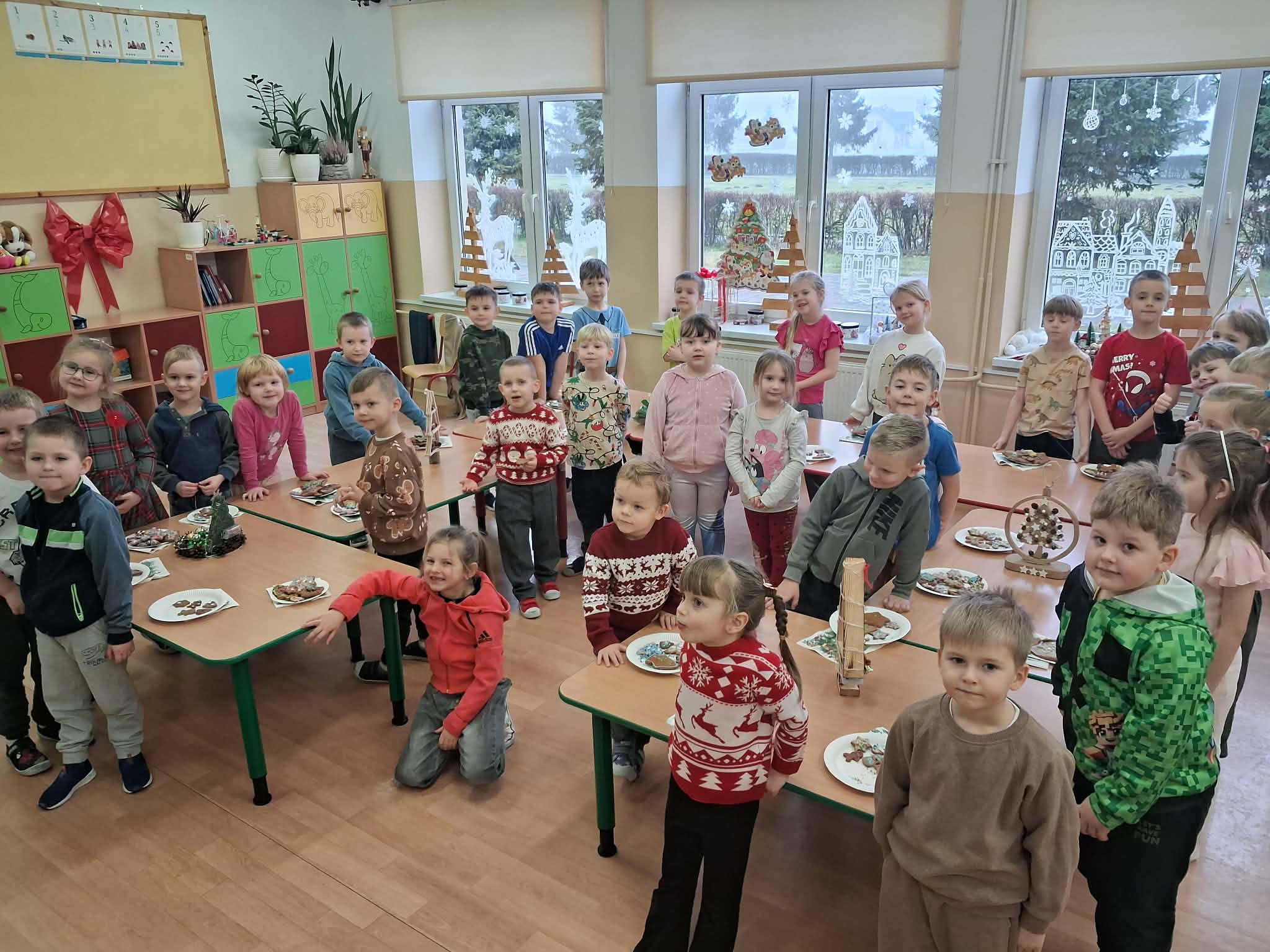 Atmosfera spotkania była wyjątkowo ciepła i świąteczna, a uśmiechy na twarzach przedszkolaków najlepiej oddawały radość wspólnego działania.