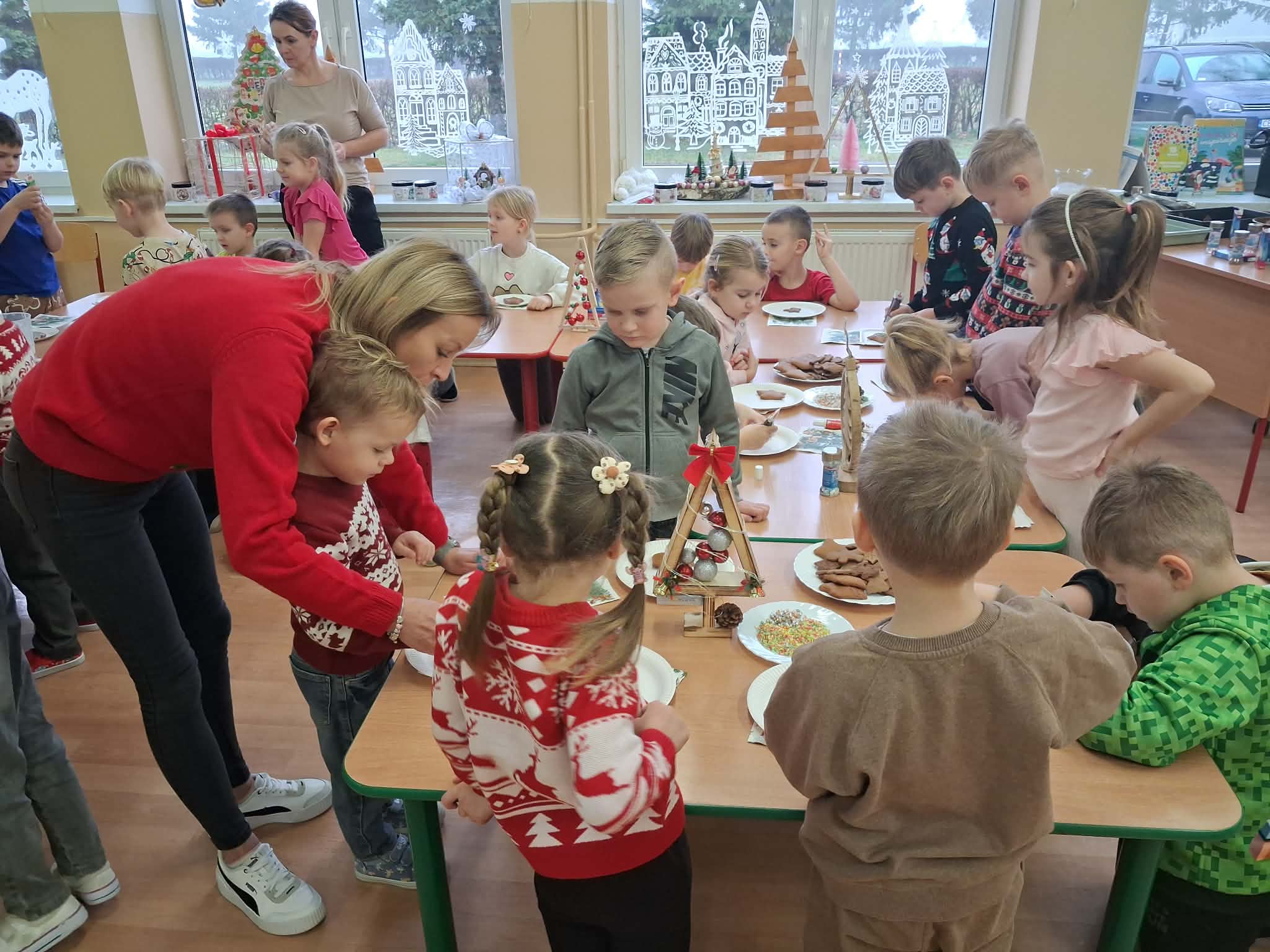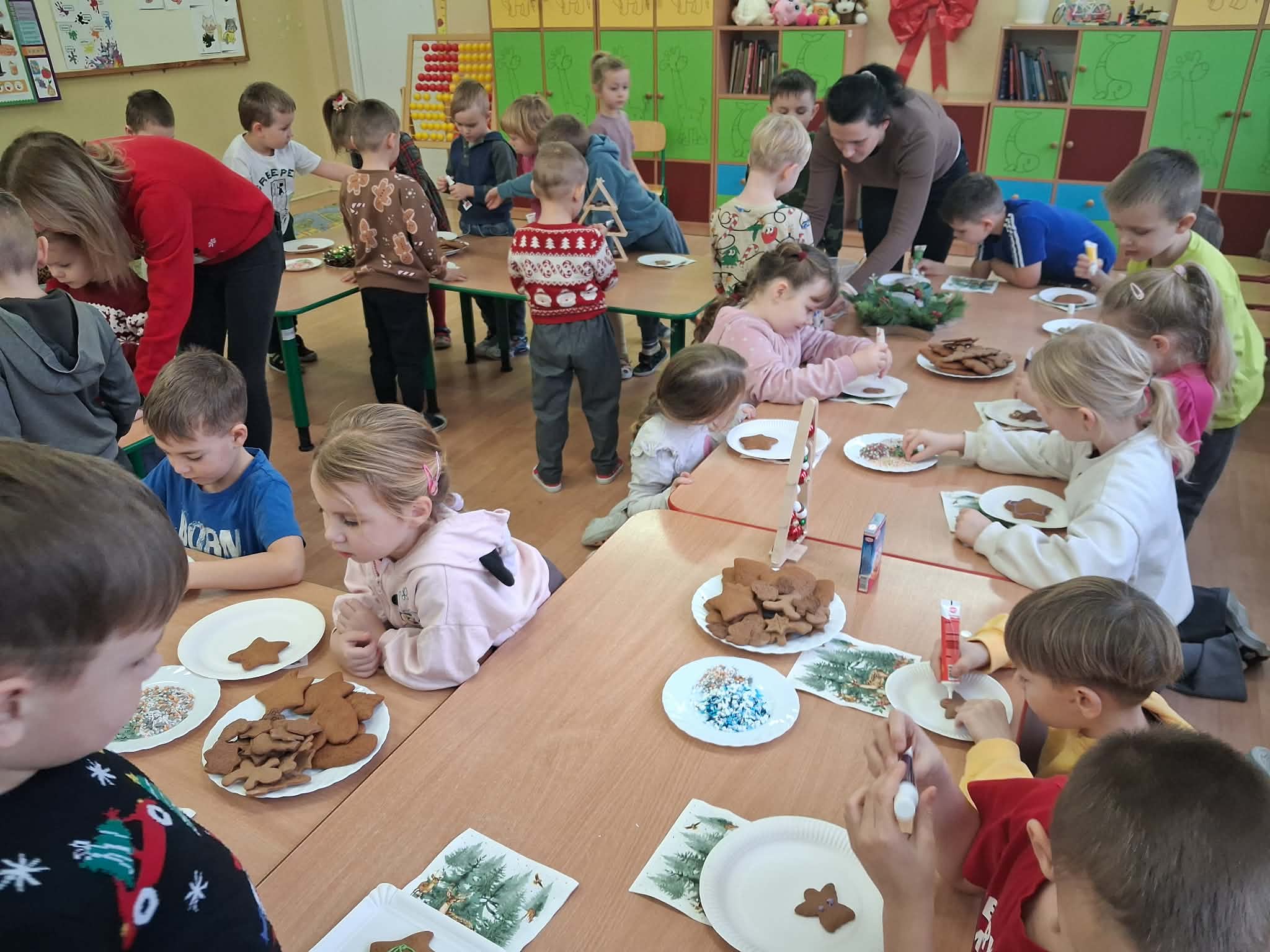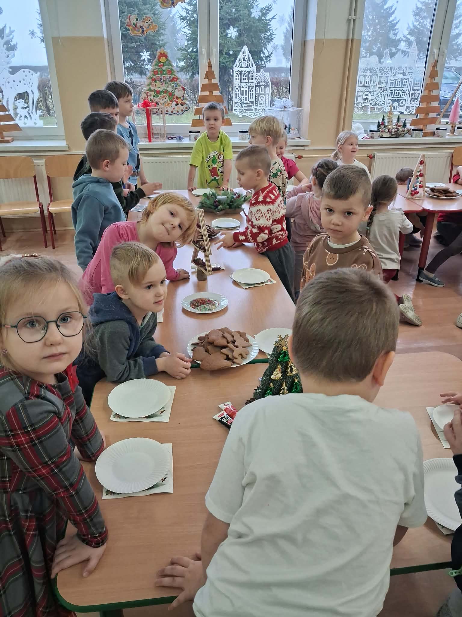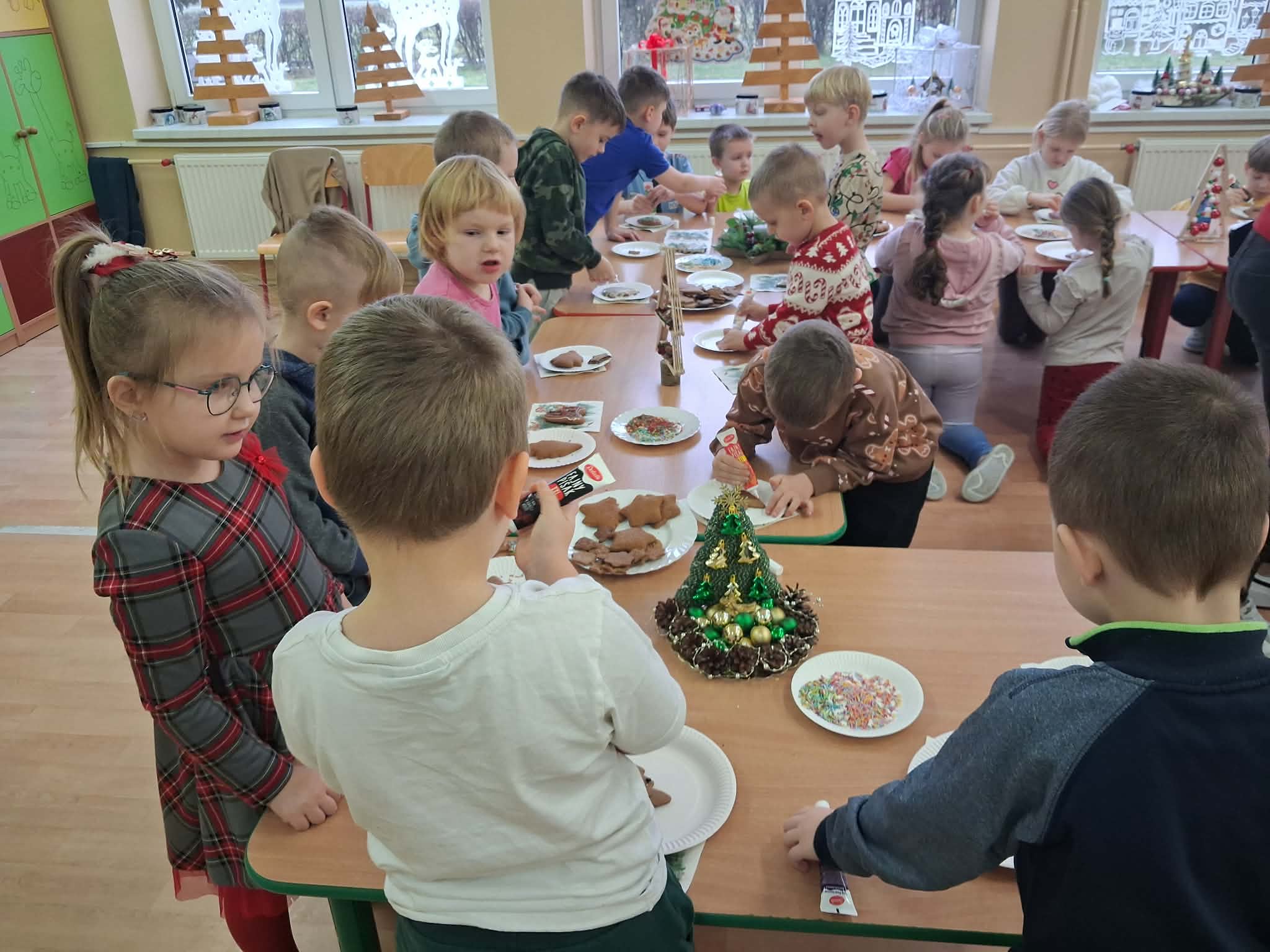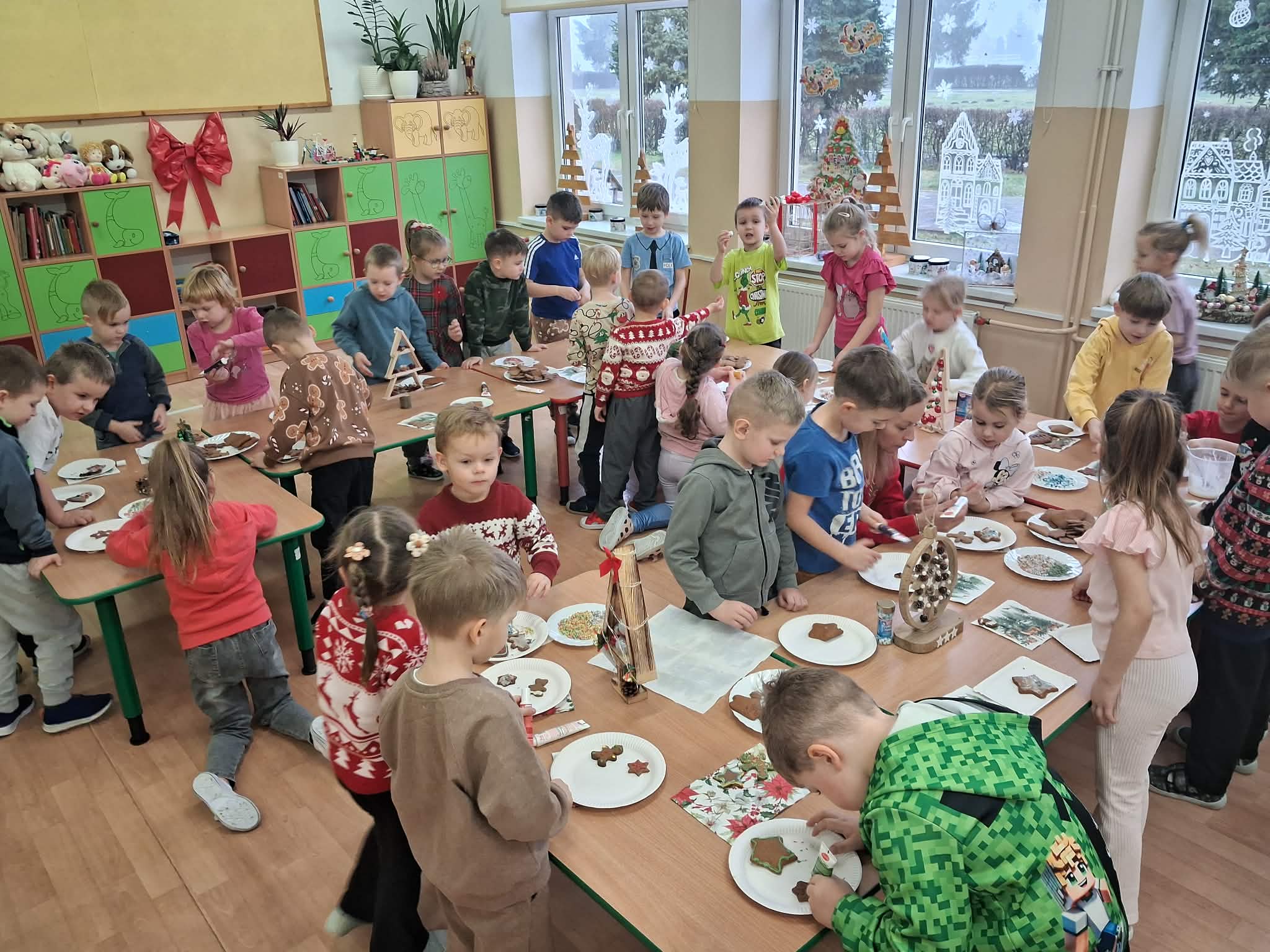 Atmosfera spotkania była wyjątkowo ciepła i świąteczna, a uśmiechy na twarzach przedszkolaków najlepiej oddawały radość wspólnego działania.