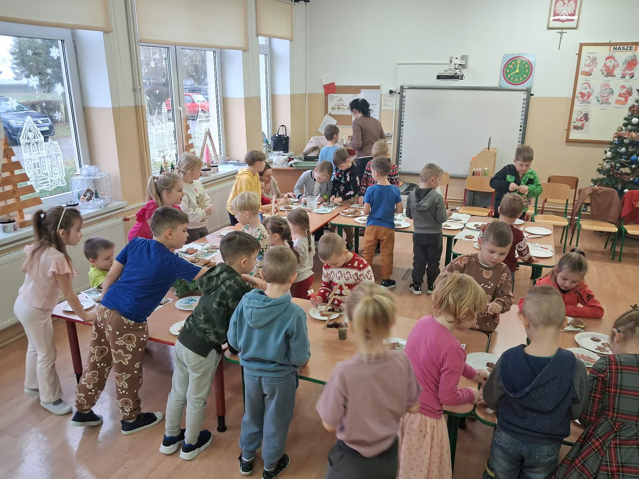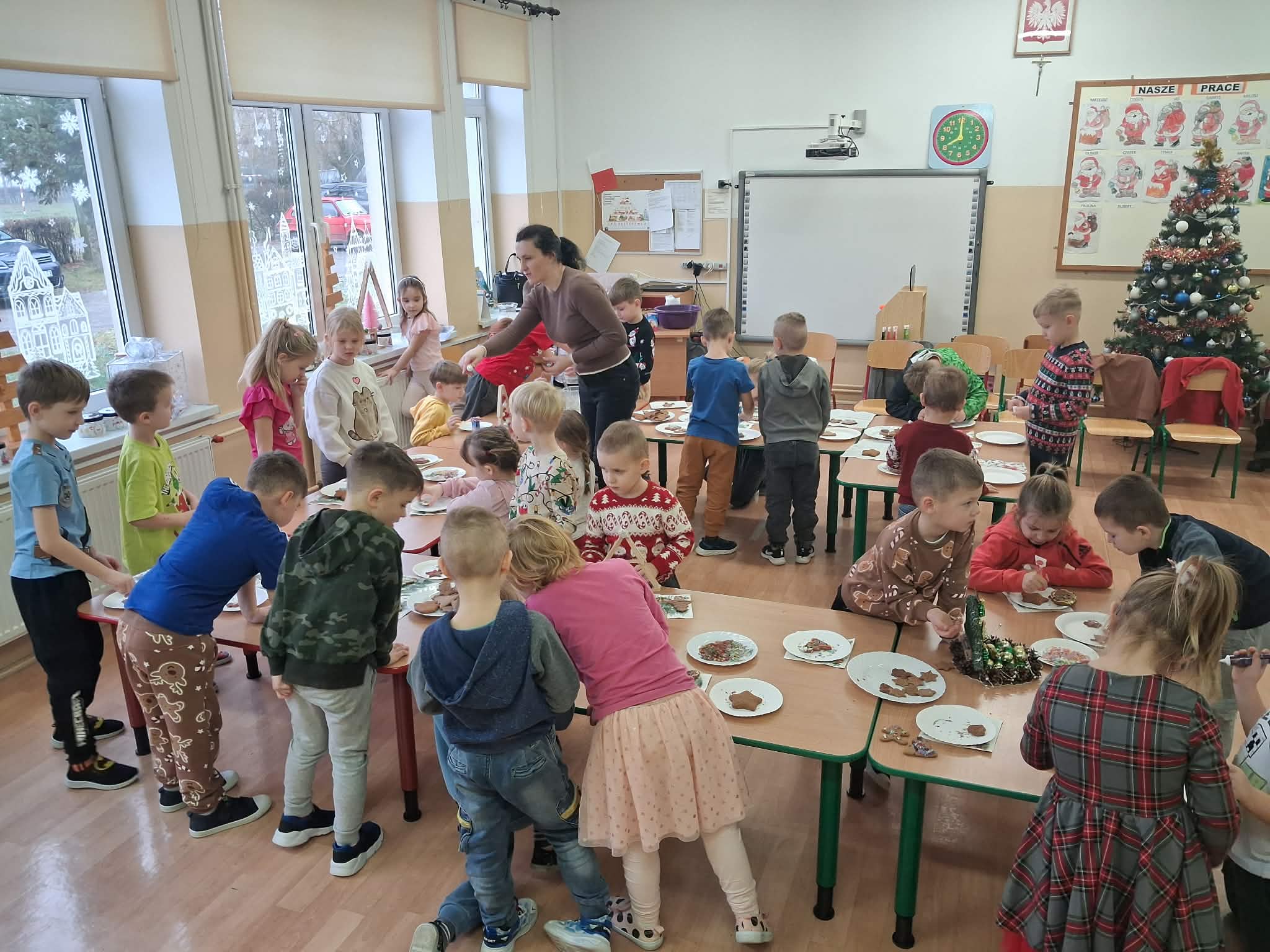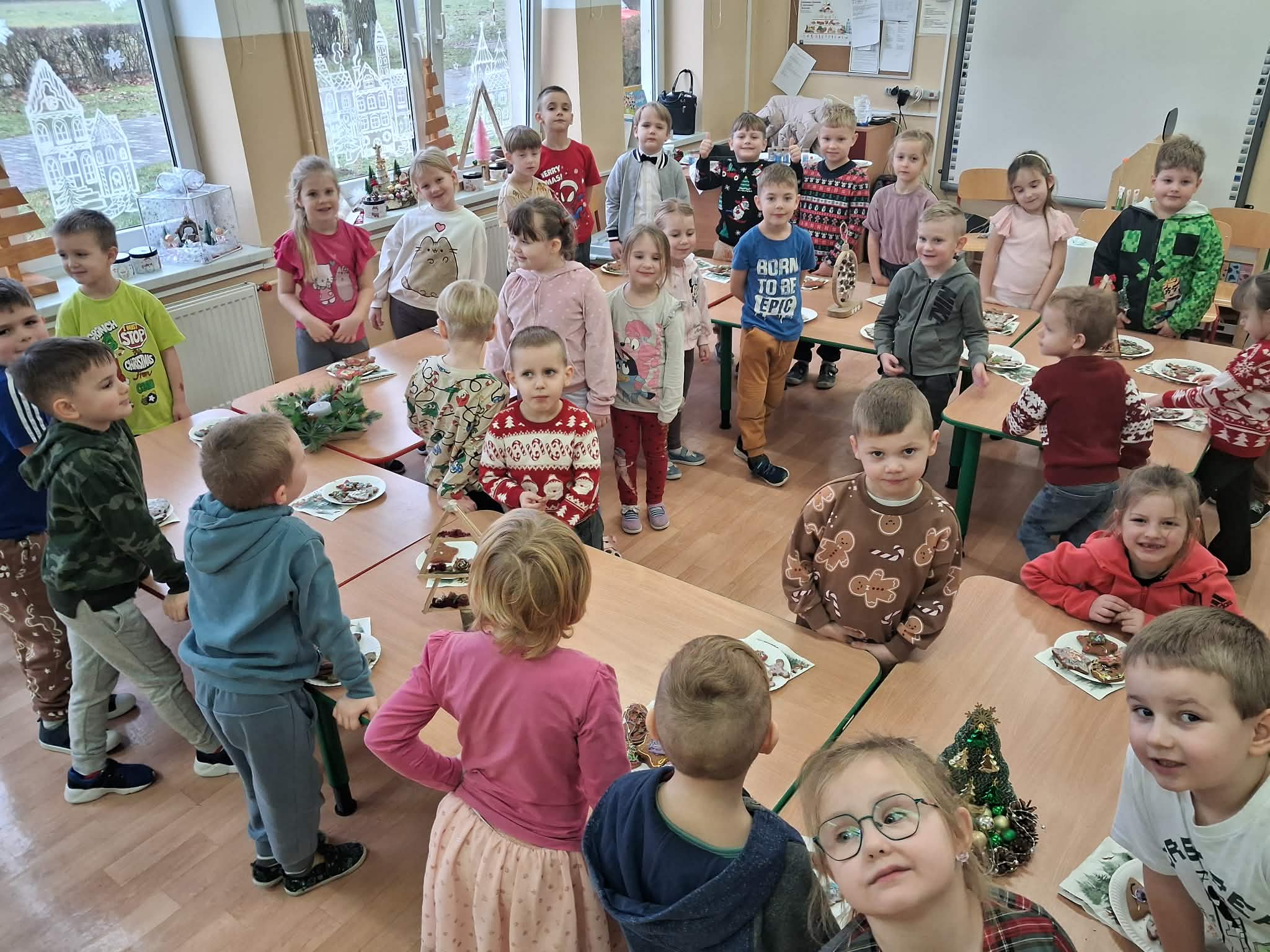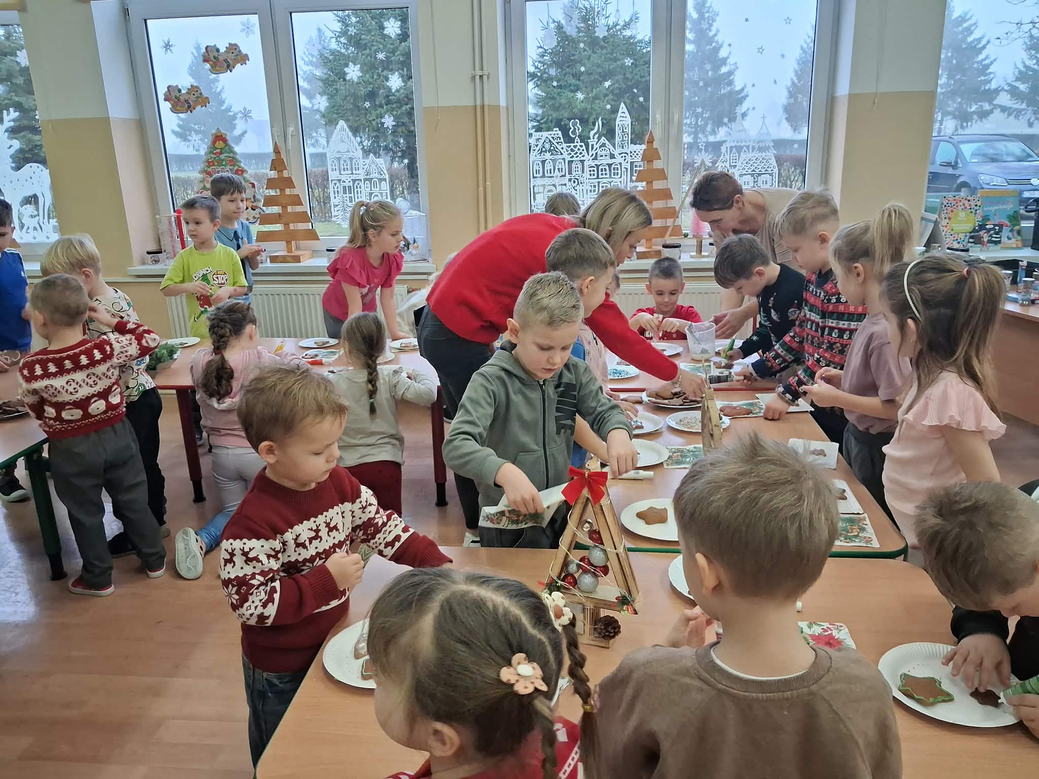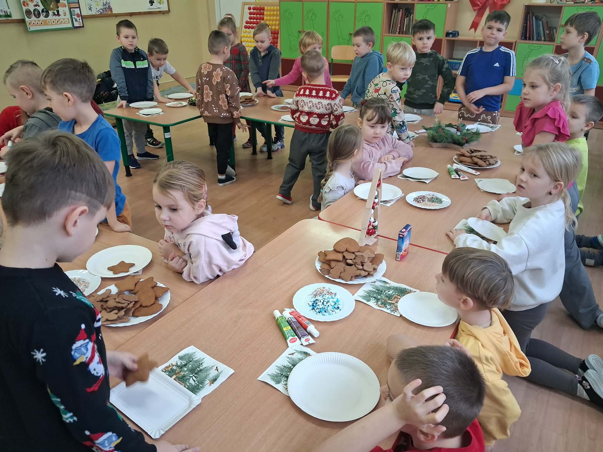 Atmosfera spotkania była wyjątkowo ciepła i świąteczna, a uśmiechy na twarzach przedszkolaków najlepiej oddawały radość wspólnego działania.