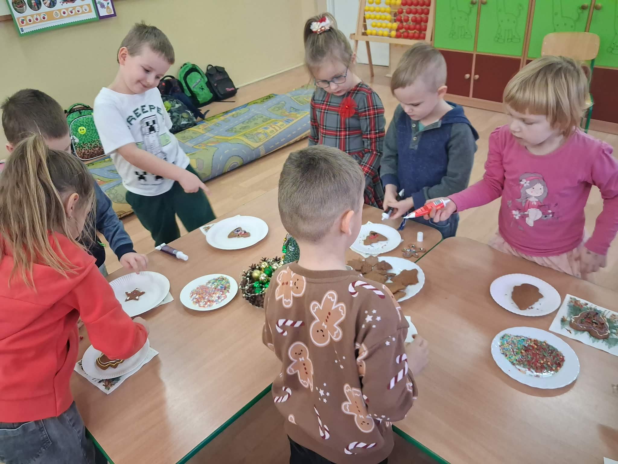 W dniu 18 grudnia 2025 r. w oddziałach przedszkolnych Szkoły Podstawowej im. Ziemi Dobrzyńskiej odbyły się radosne i pachnące świętami zajęcia ozdabiania pierników. Dzieci z wielkim zaangażowaniem i kreatywnością dekorowały pierniki kolorowymi lukrami oraz posypkami, rozwijając przy tym swoje zdolności manualne i wyobraźnię.
