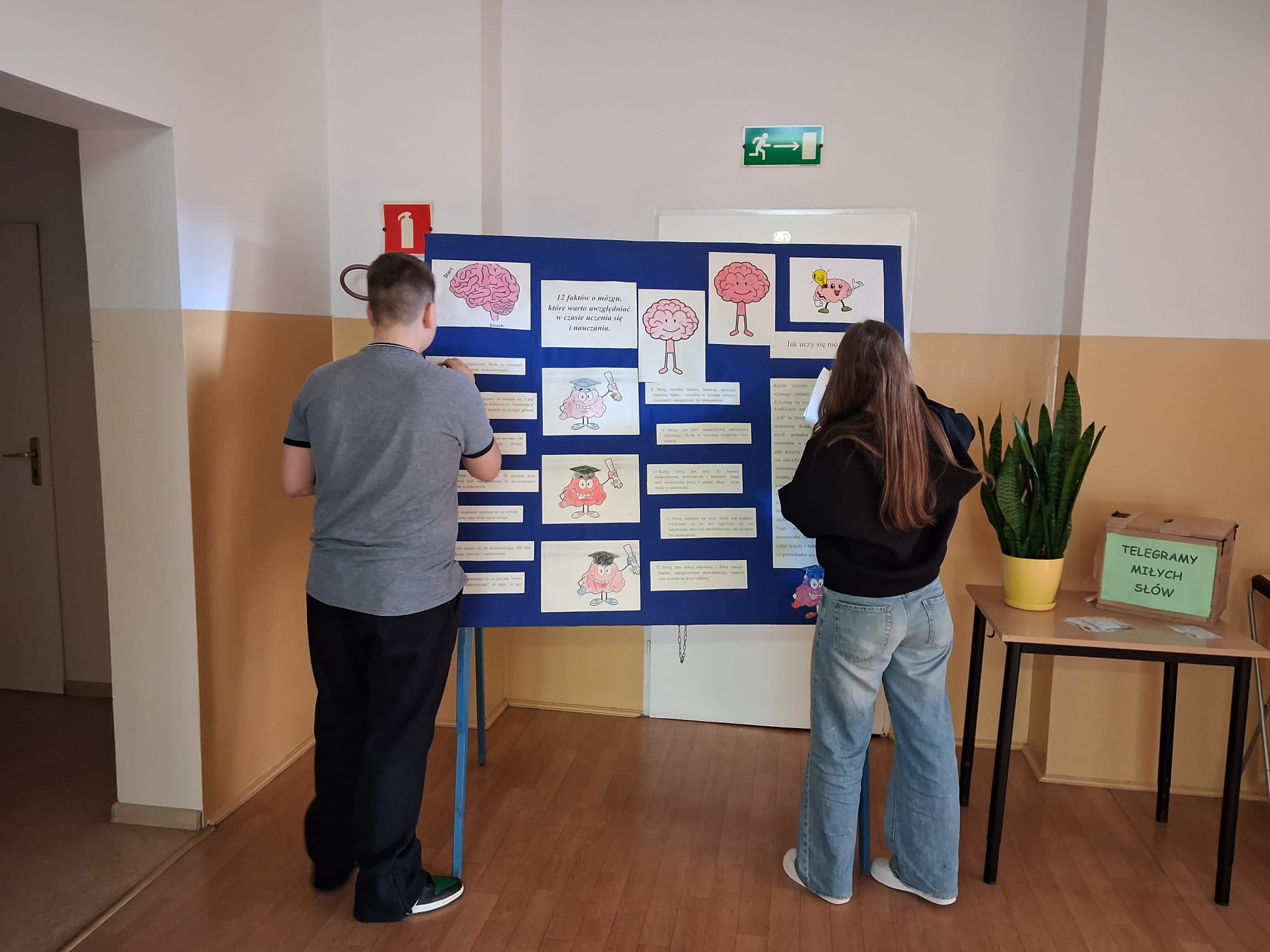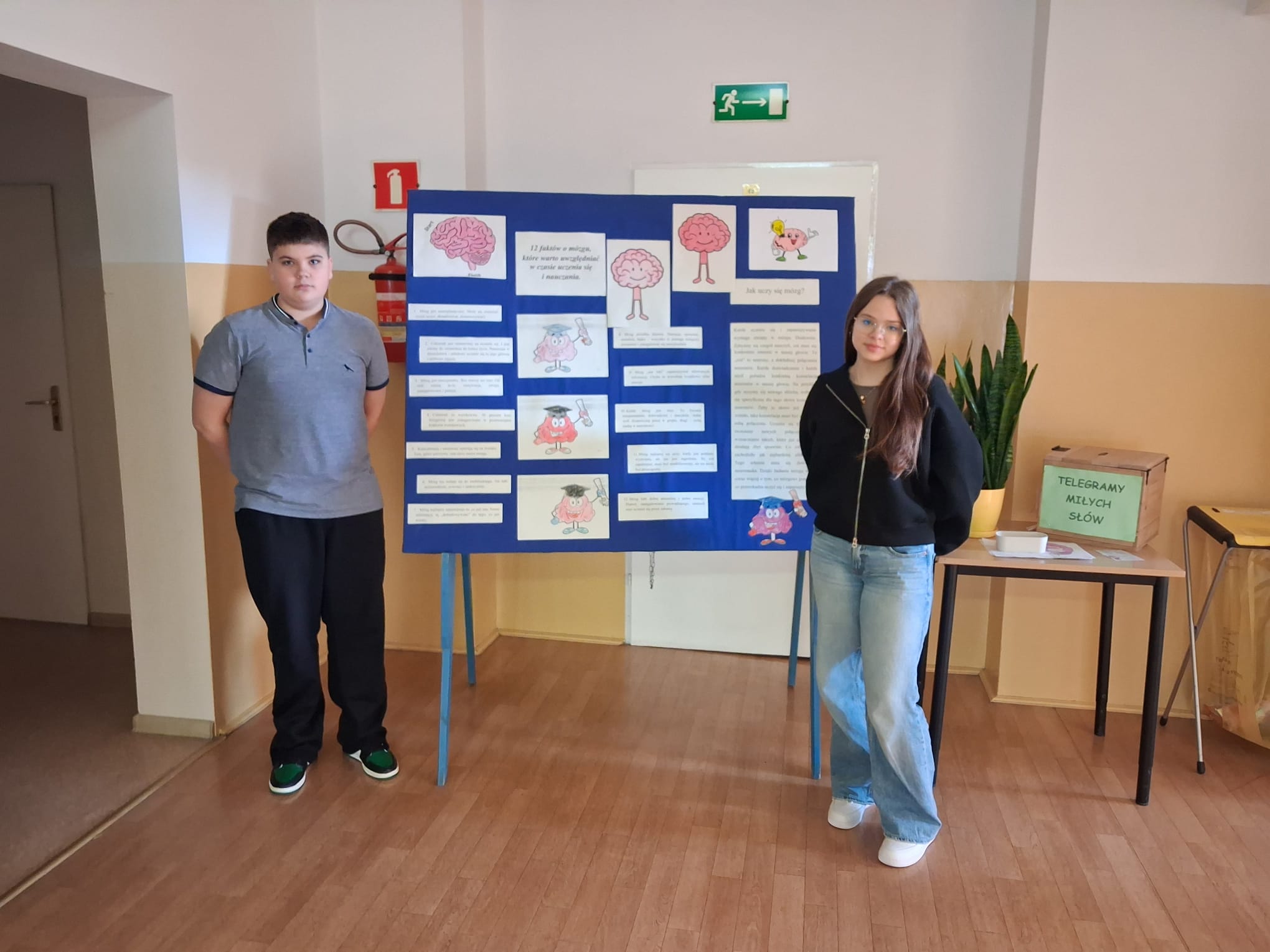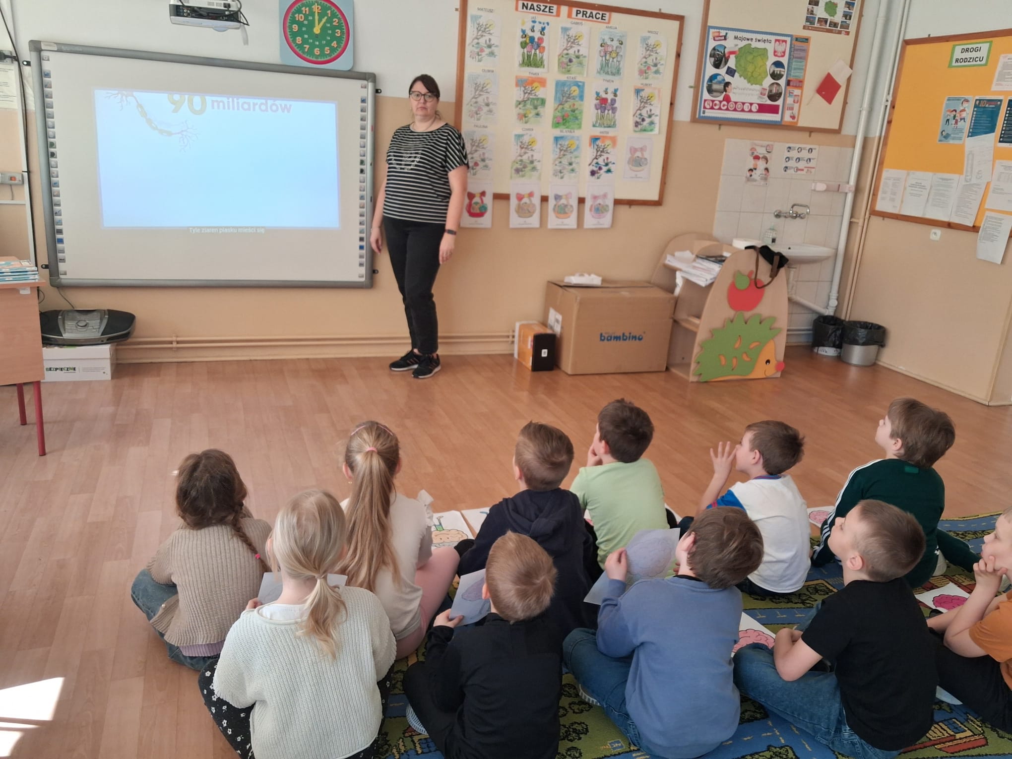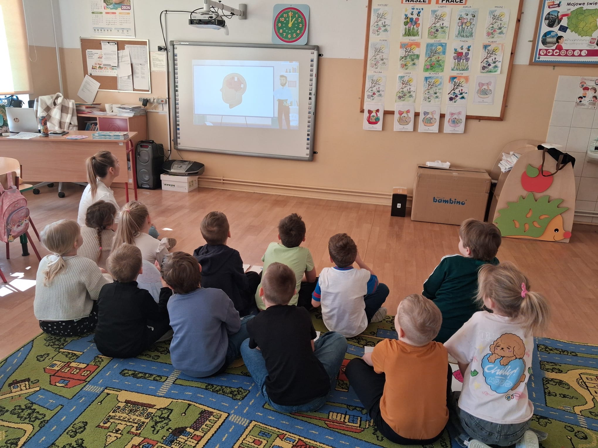 Przygotowano również gazetkę tematyczną, która przybliżała najważniejsze informacje związane z pracą mózgu, a uczniowie klas młodszych wykonywali kolorowanki nawiązujące do tej tematyki, rozwijając jednocześnie swoją kreatywność. Dodatkowo przeprowadzono prezentację edukacyjną, dzięki której uczniowie mogli w przystępny sposób poszerzyć swoją wiedzę.