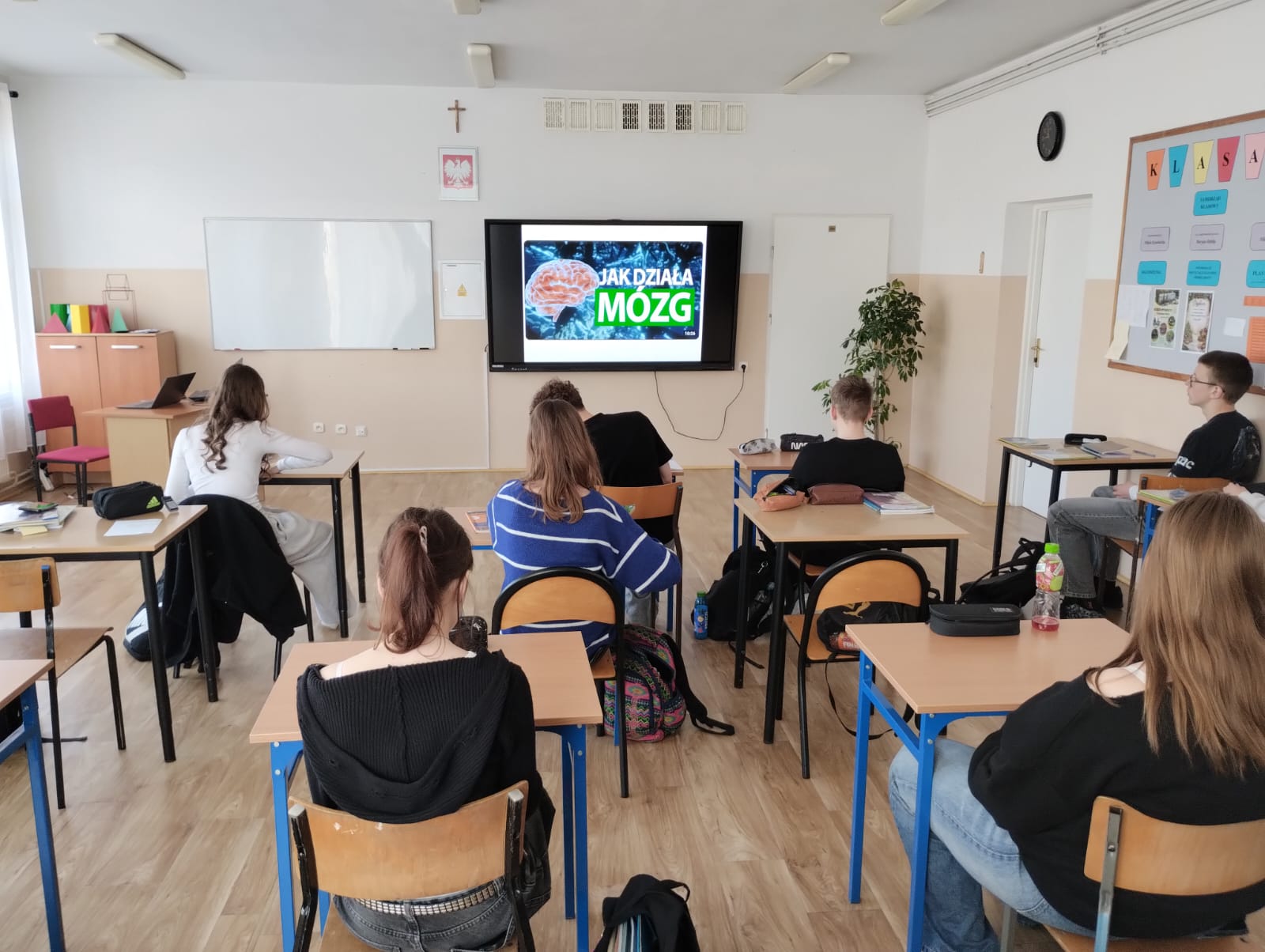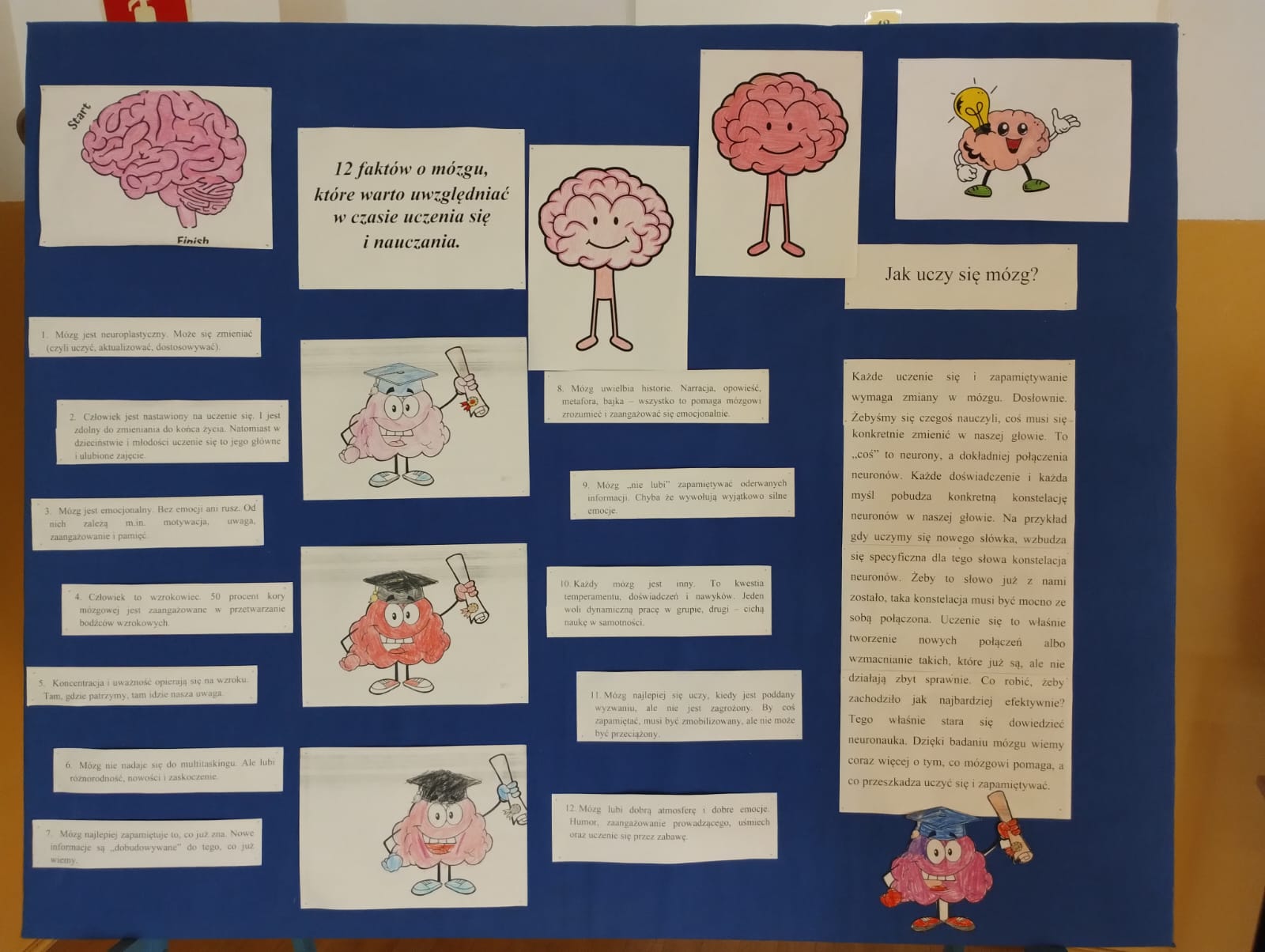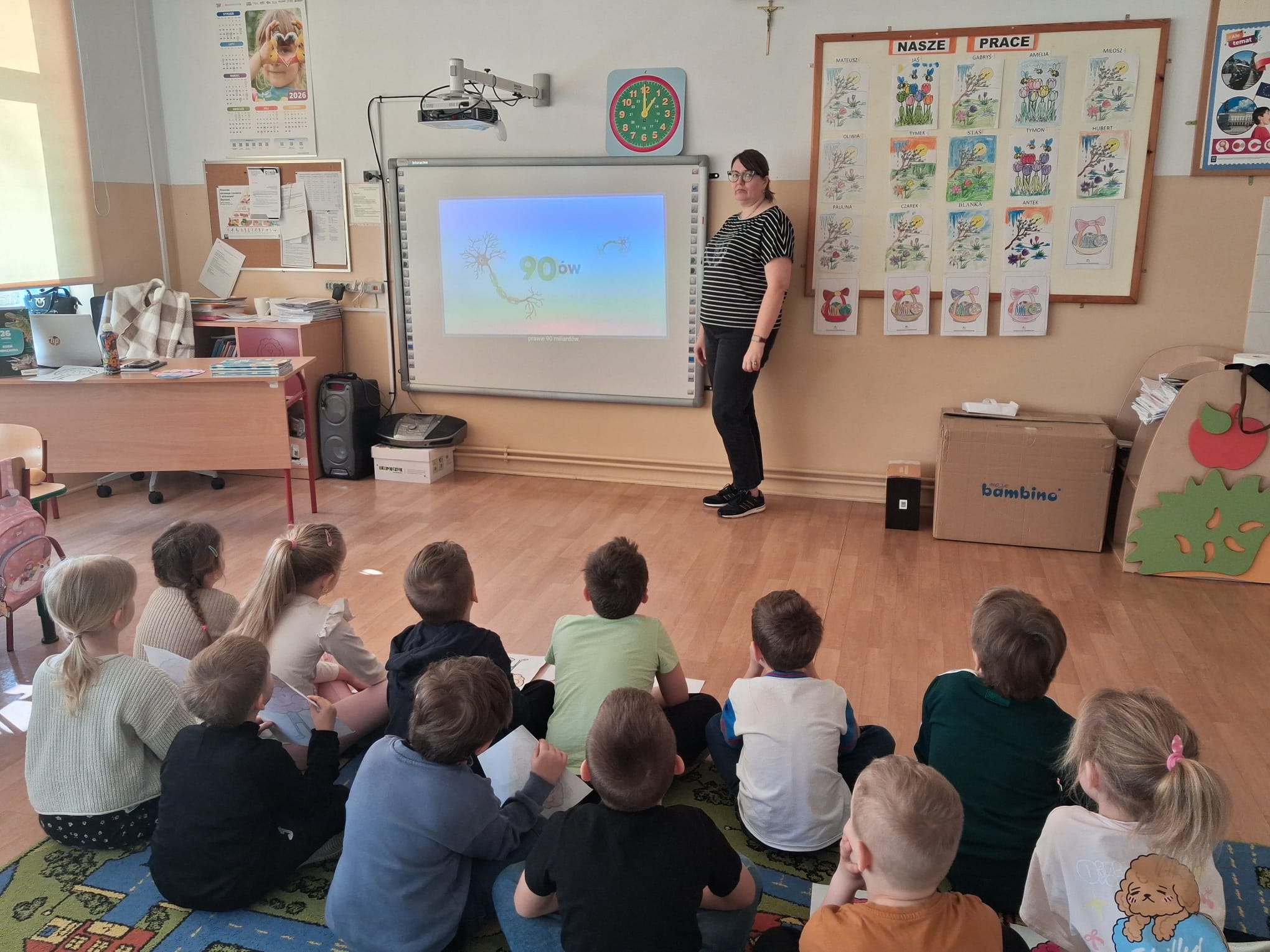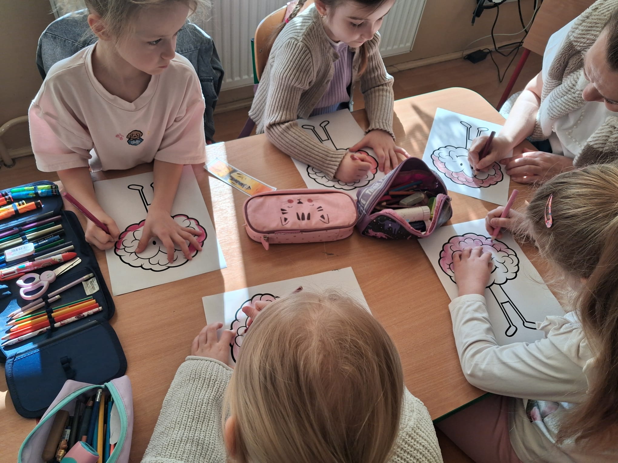Przygotowano również gazetkę tematyczną, która przybliżała najważniejsze informacje związane z pracą mózgu, a uczniowie klas młodszych wykonywali kolorowanki nawiązujące do tej tematyki, rozwijając jednocześnie swoją kreatywność. Dodatkowo przeprowadzono prezentację edukacyjną, dzięki której uczniowie mogli w przystępny sposób poszerzyć swoją wiedzę.