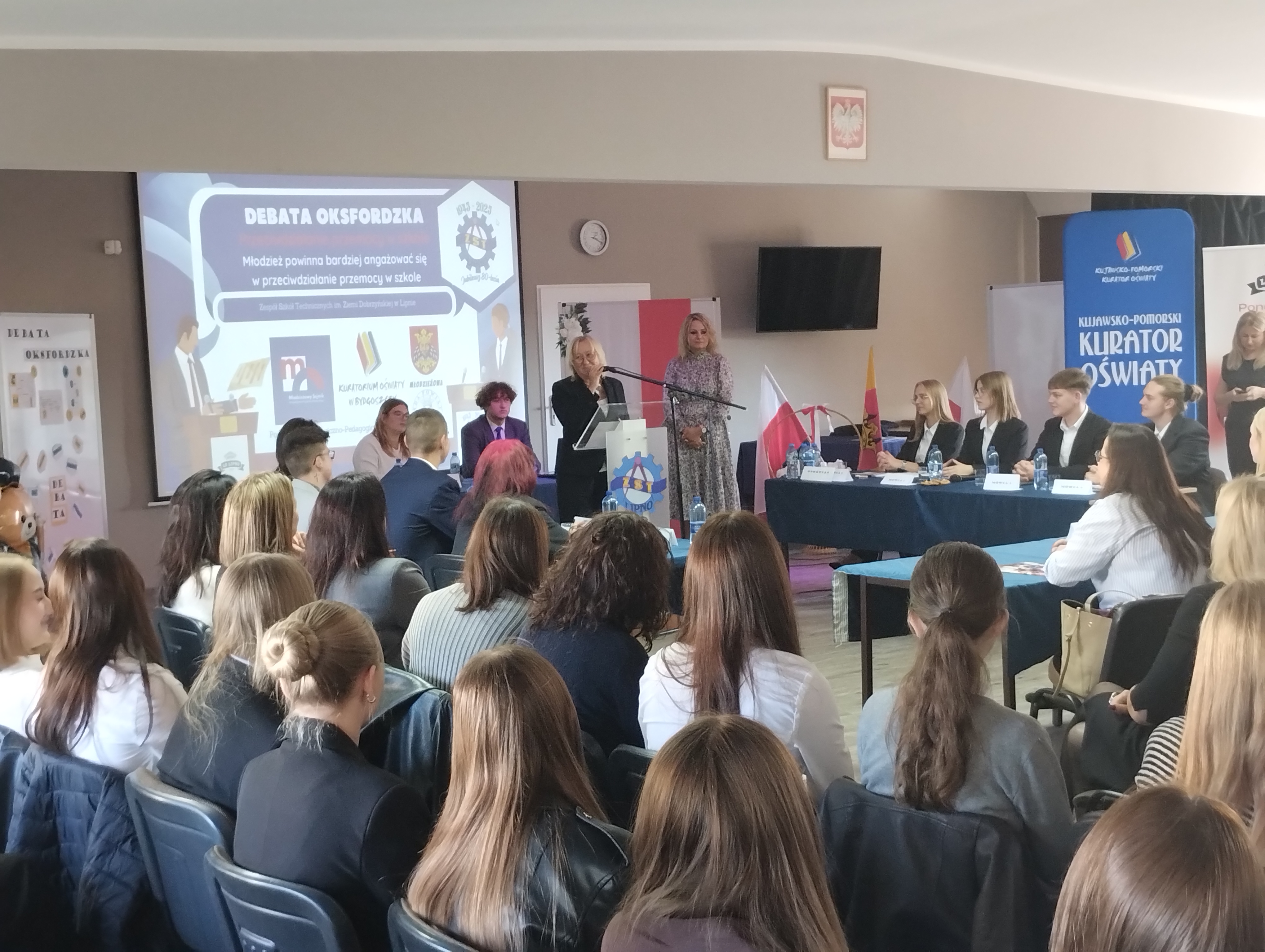 Następnie uczniowie udali się do Zespołu Szkół Technicznych w Lipnie, gdzie uczestniczyli w Debacie Oksfordzkiej pod tytułem „Przeciwdziałanie przemocy w szkole”, która wywarła na uczniach duże wrażenie i skłoniła ich do refleksji nad tym ważnym problemem.