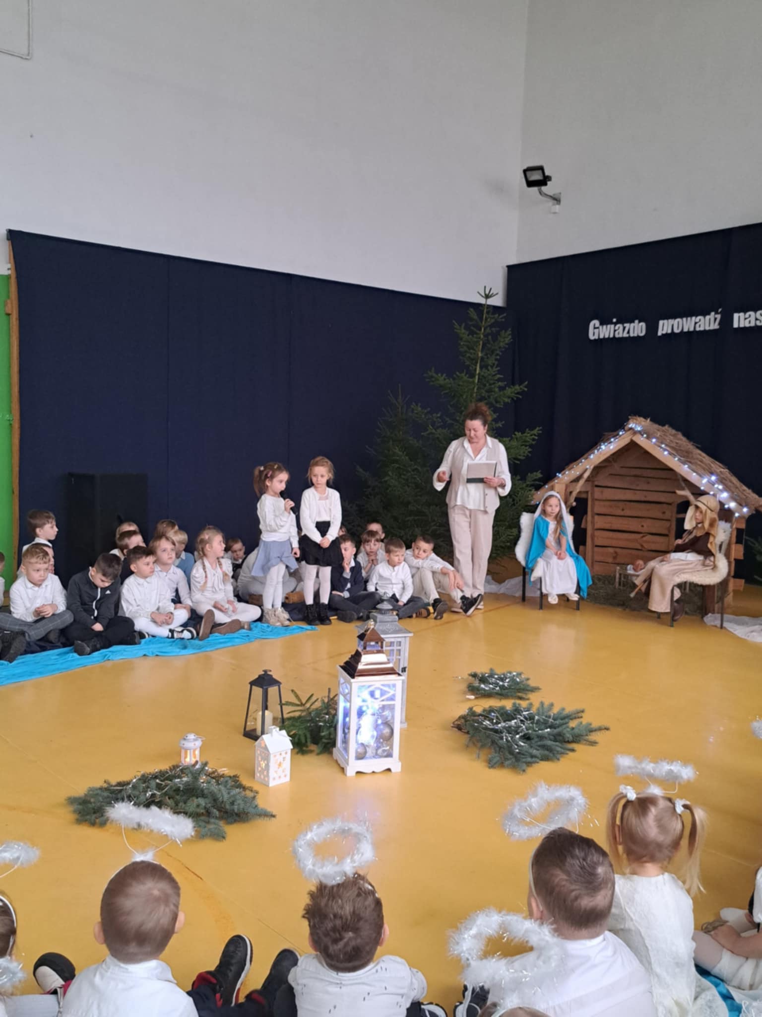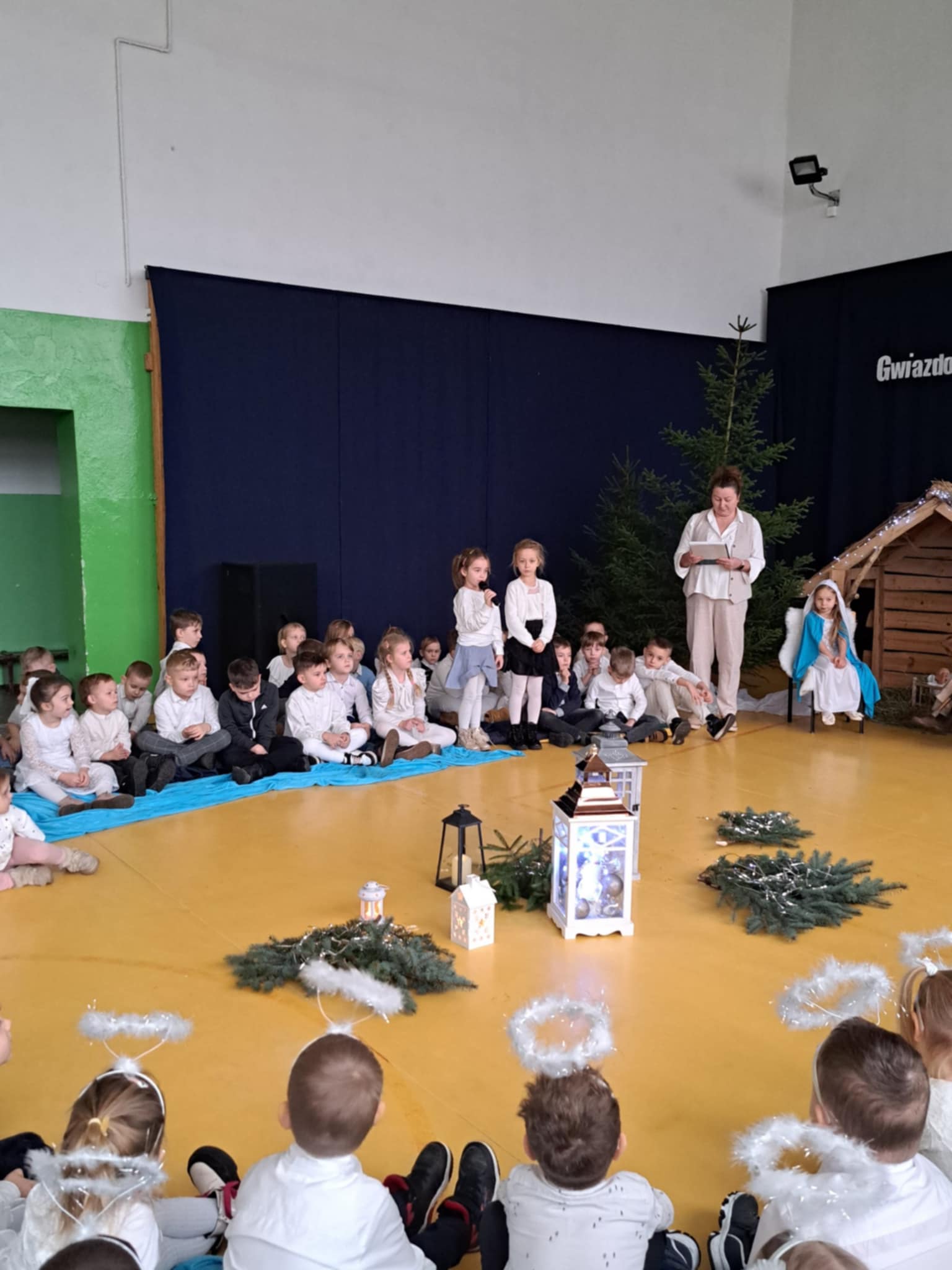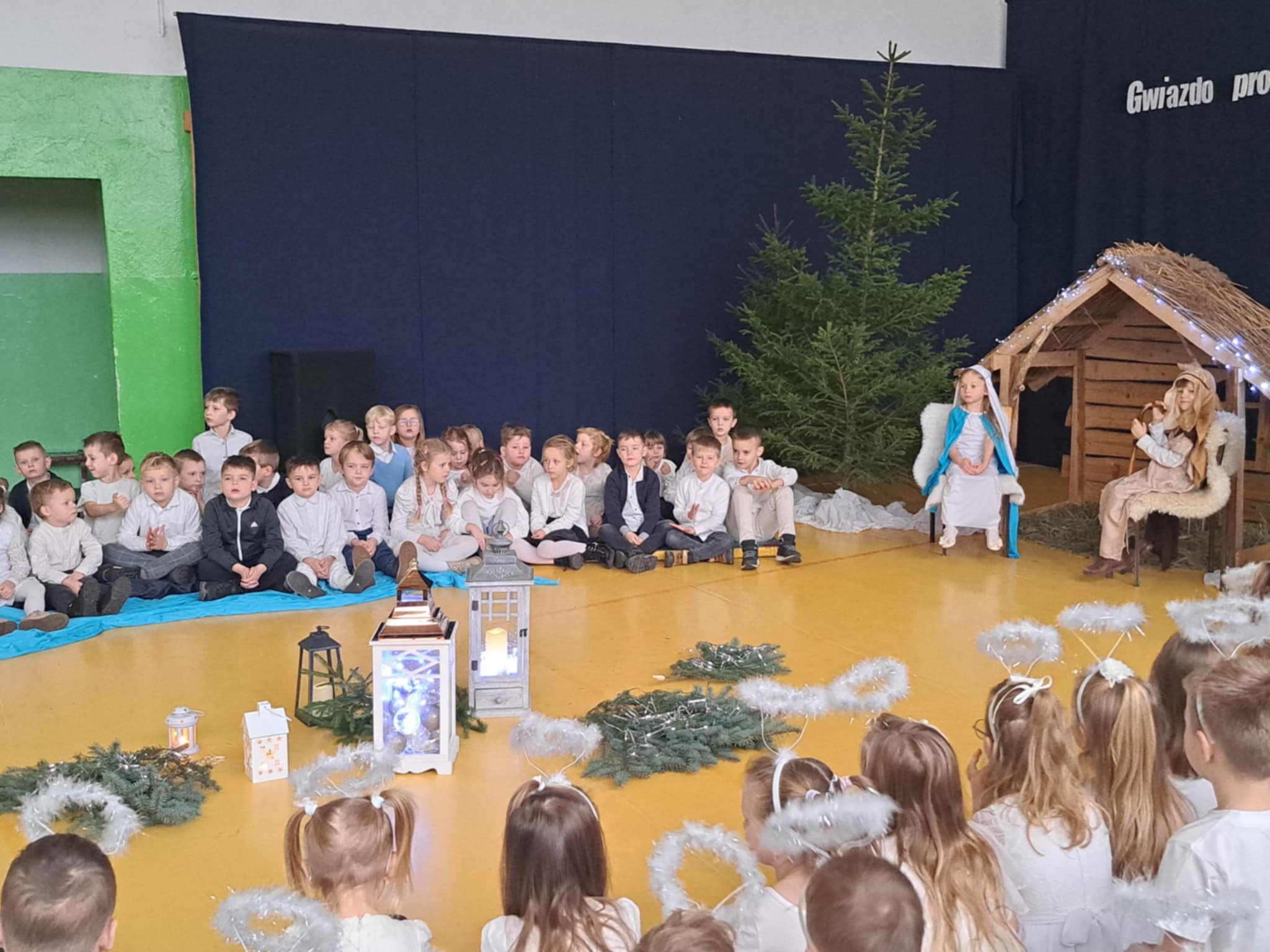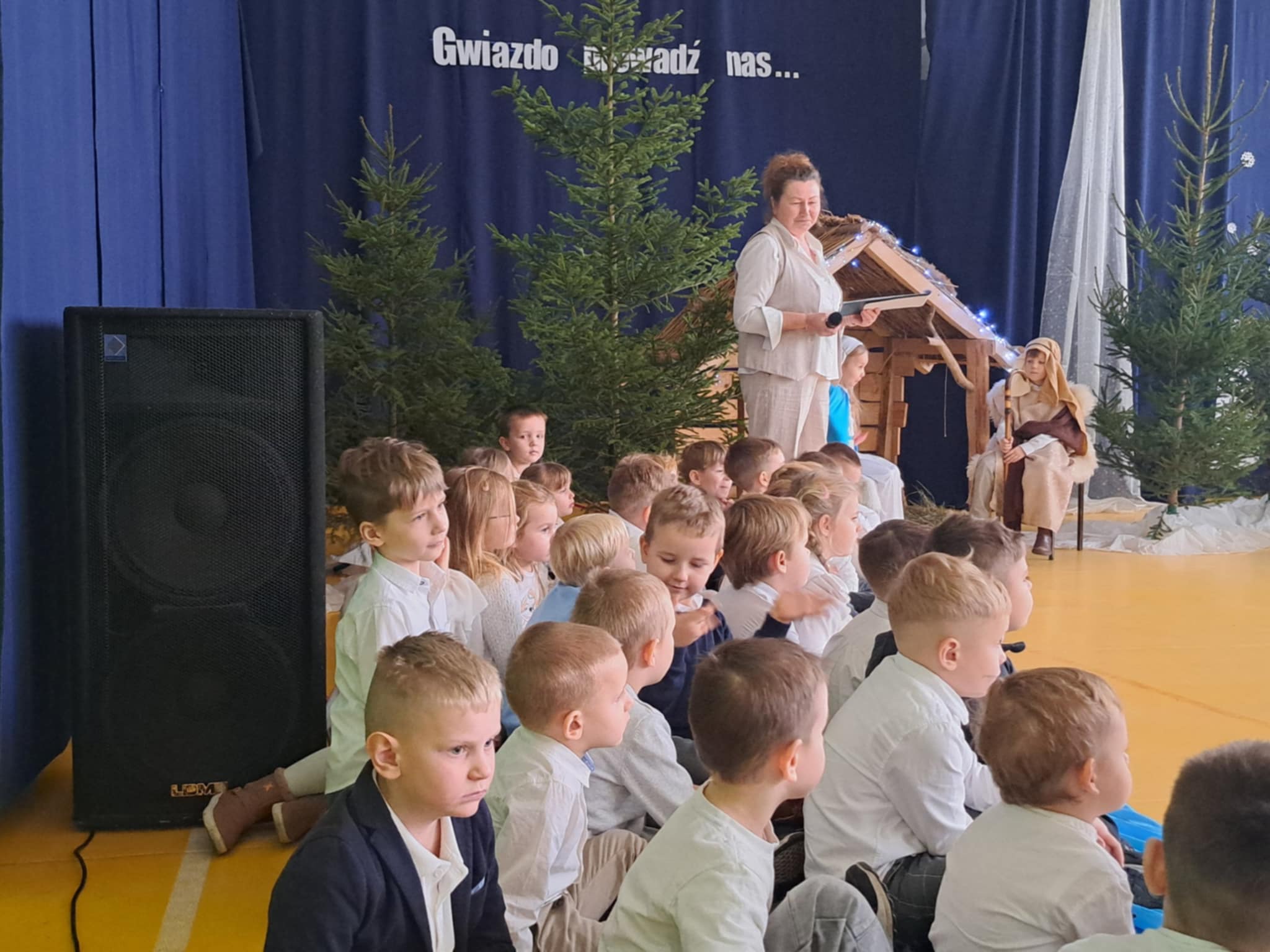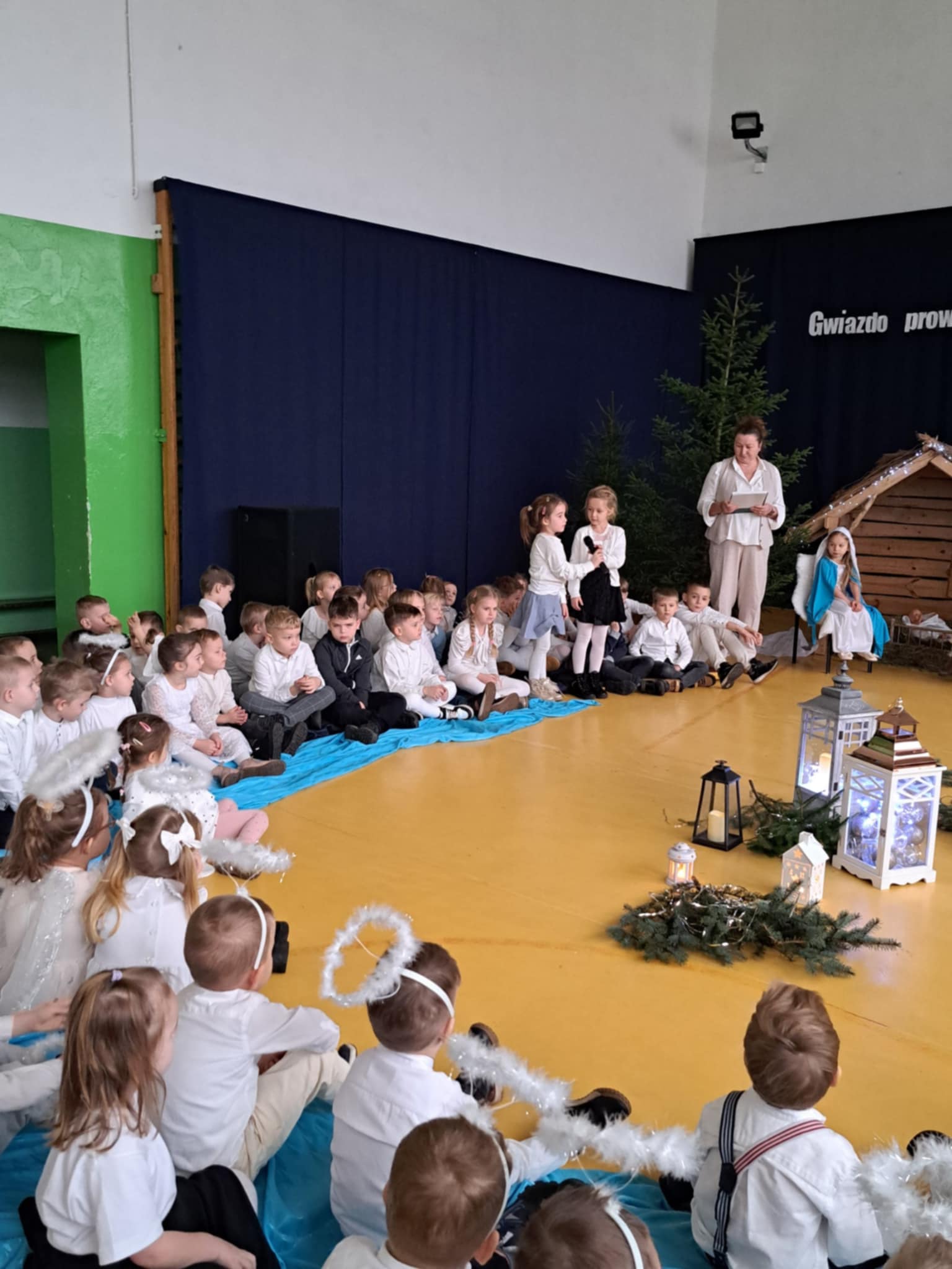 16 grudnia dzieci z oddziałów przedszkolnych naszej szkoły udały się na spotkanie do Szkoły Podstawowej w Skrwilnie z innymi przedszkolakami ze Skudzaw oraz z Gminnego Przedszkola w Skrwilnie. Podczas spotkania dzieci wysłuchały przedstawienia o Narodzeniu Bożego Dzieciątka oraz wspólnie śpiewały kolędy i pastorałki. Wspólne spotkanie wprowadziło dzieci w radosny, świąteczny nastrój.