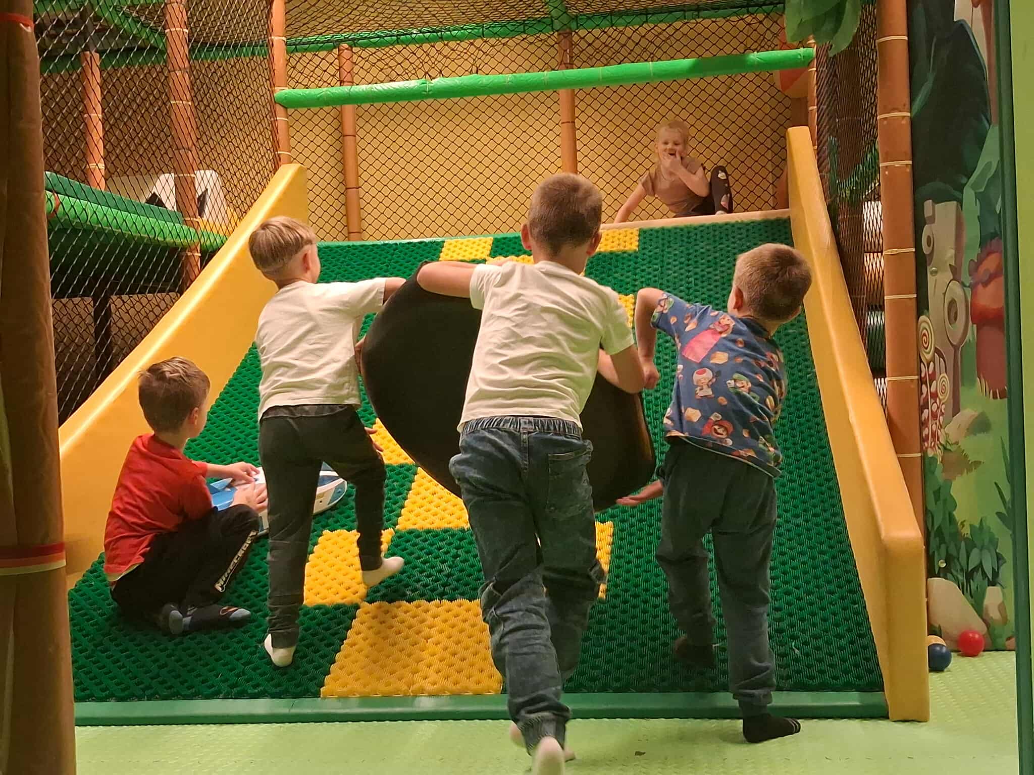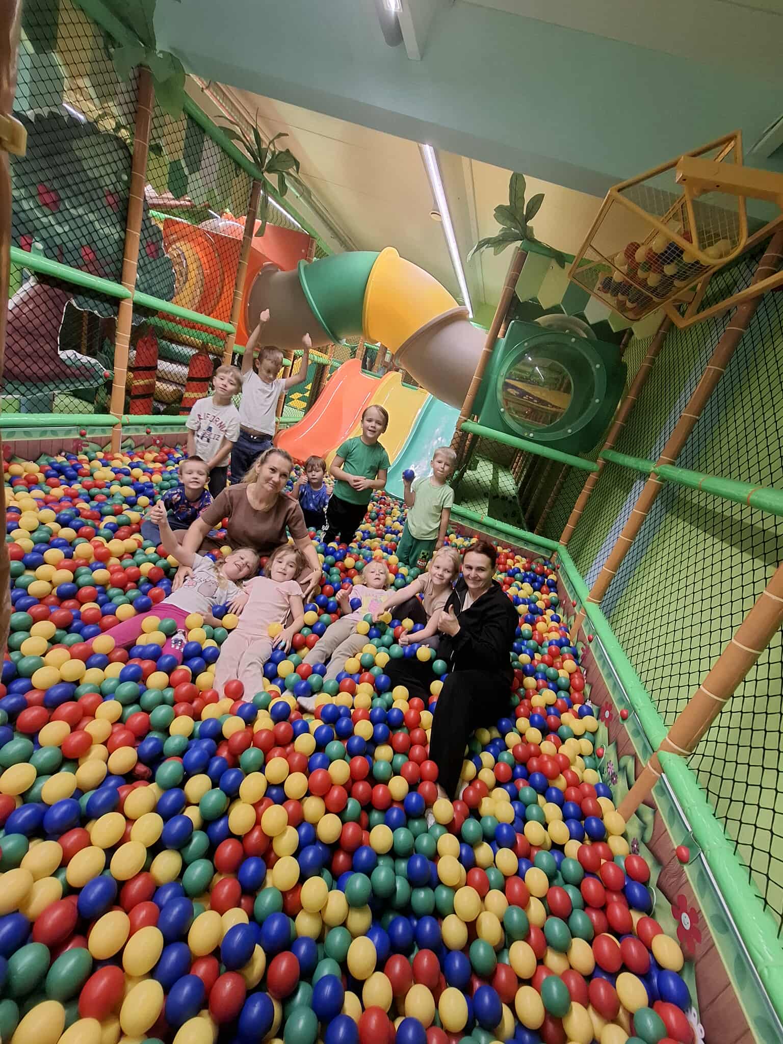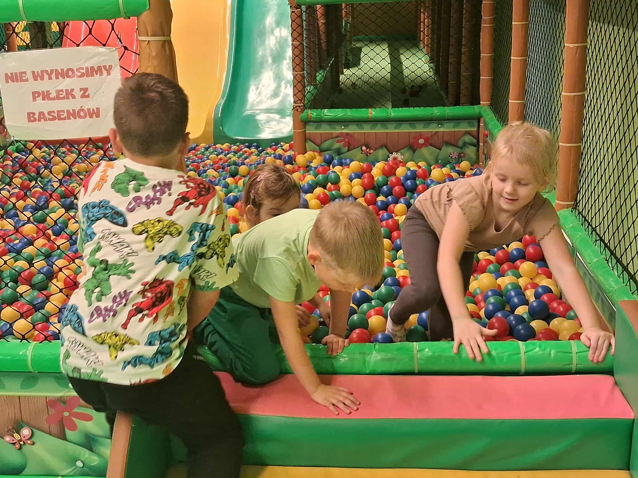 Dnia 29 września 2025 roku dzieci z oddziału przedszkolnego 0B Szkoły Podstawowej im. Ziemi Dobrzyńskiej w Okalewie wybrały się na wycieczkę do „Krainy Zabaw” w Żurominie. Celem wyjazdu była wspólna zabawa, integracja grupy oraz rozwijanie sprawności fizycznej dzieci. Przedszkolaki z ogromnym entuzjazmem korzystały z dostępnych atrakcji – zjeżdżalni, basenów z piłeczkami, torów przeszkód i trampolin. Nie zabrakło również zabaw ruchowych, śmiechu i radosnych okrzyków. Po intensywnej zabawie dzieci odpoczęły i zjadły posiłek. Następnie wrócili do szkoły zmęczeni, ale bardzo zadowoleni. Wycieczka do „Krainy Zabaw” była dla przedszkolaków wspaniałą okazją do aktywnego spędzenia czasu, rozwijania umiejętności społecznych i wzmacniania więzi koleżeńskich.