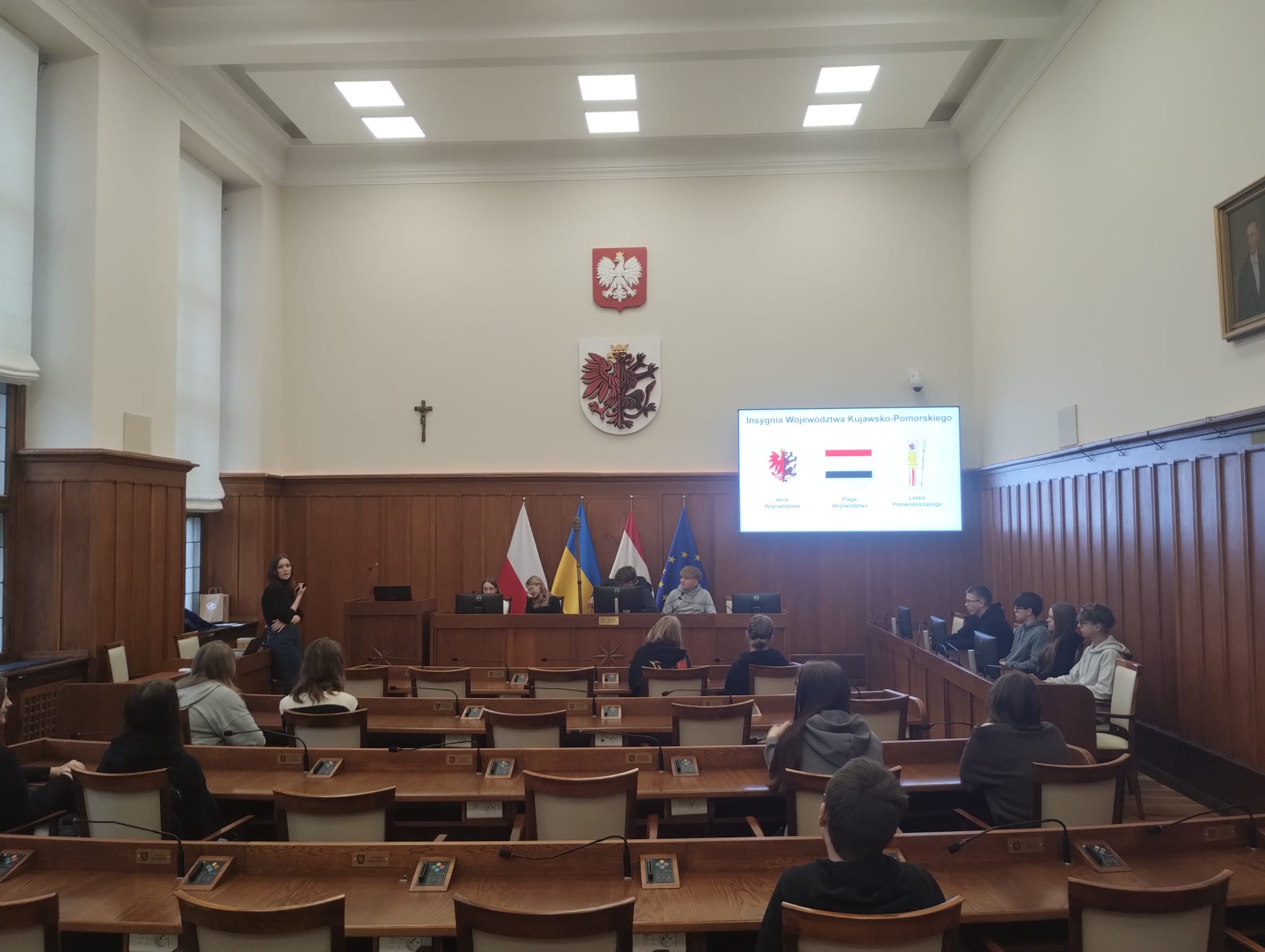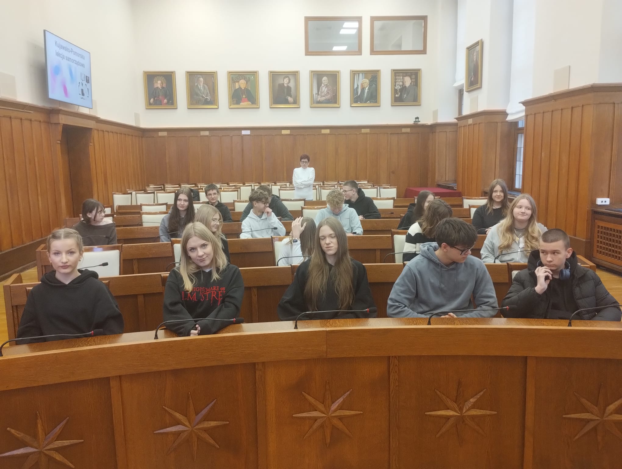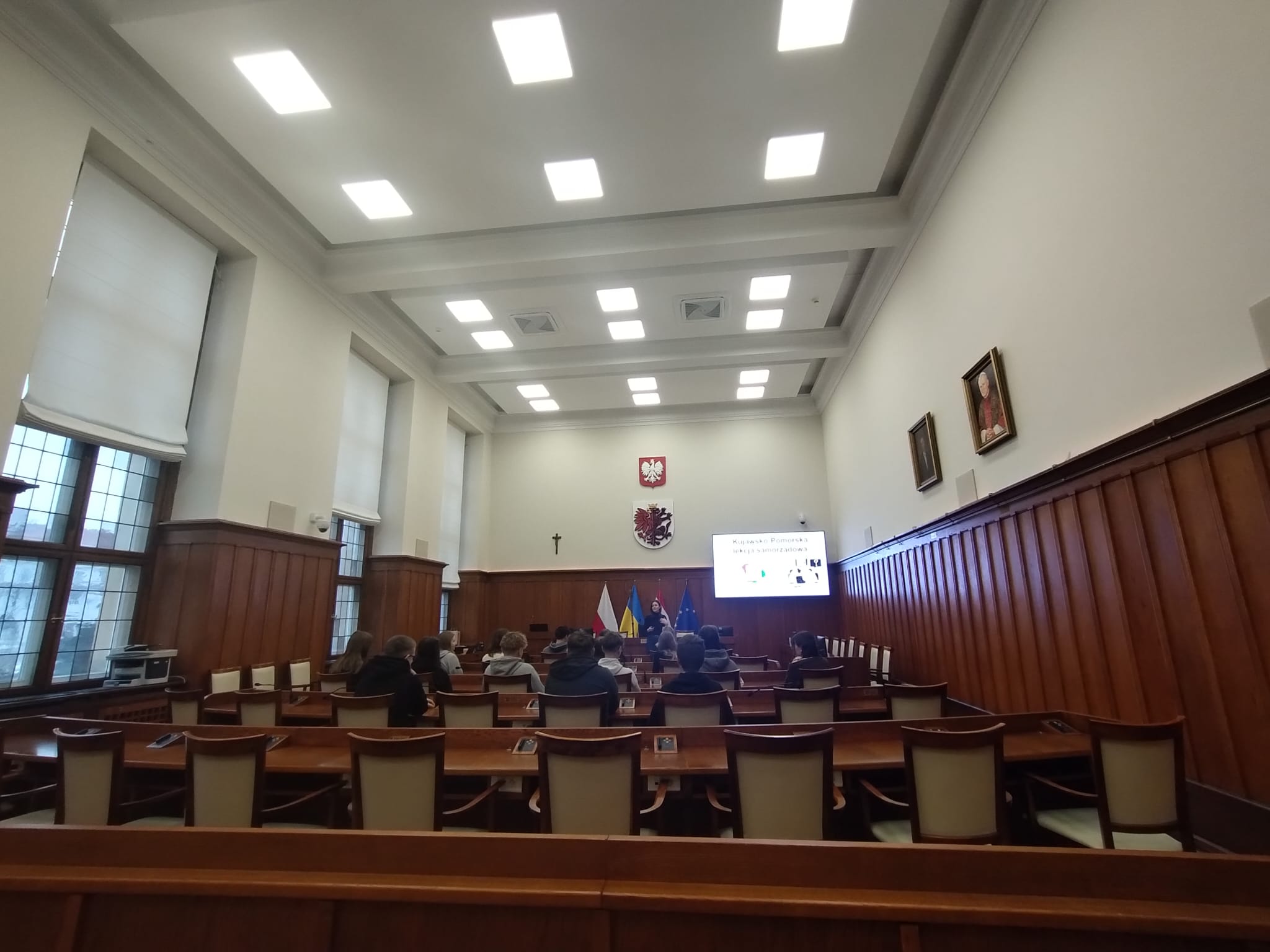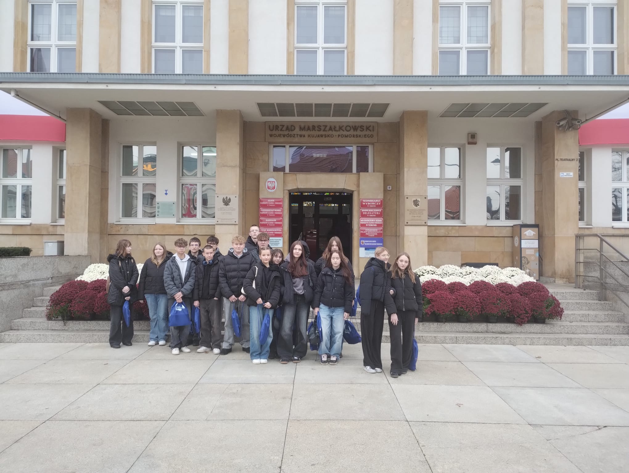 W dniu 18.11.2025 uczniowie klasy VIII Szkoły Podstawowej w Okalewie wzięli udział w ciekawych zajęciach poświęconych funkcjonowaniu samorządu województwa. Lekcja odbyła się w Urzędzie Marszałkowskim w Toruniu, gdzie uczniowie mogli poznać strukturę urzędu, zadania samorządu oraz pracę marszałka i jego współpracowników.