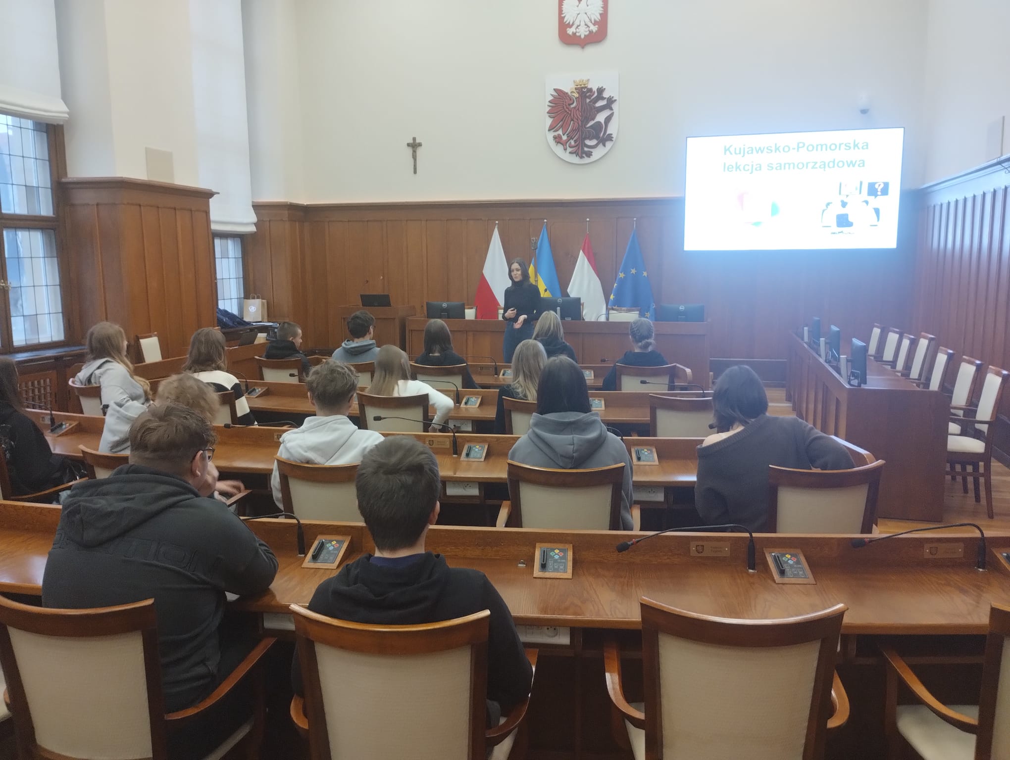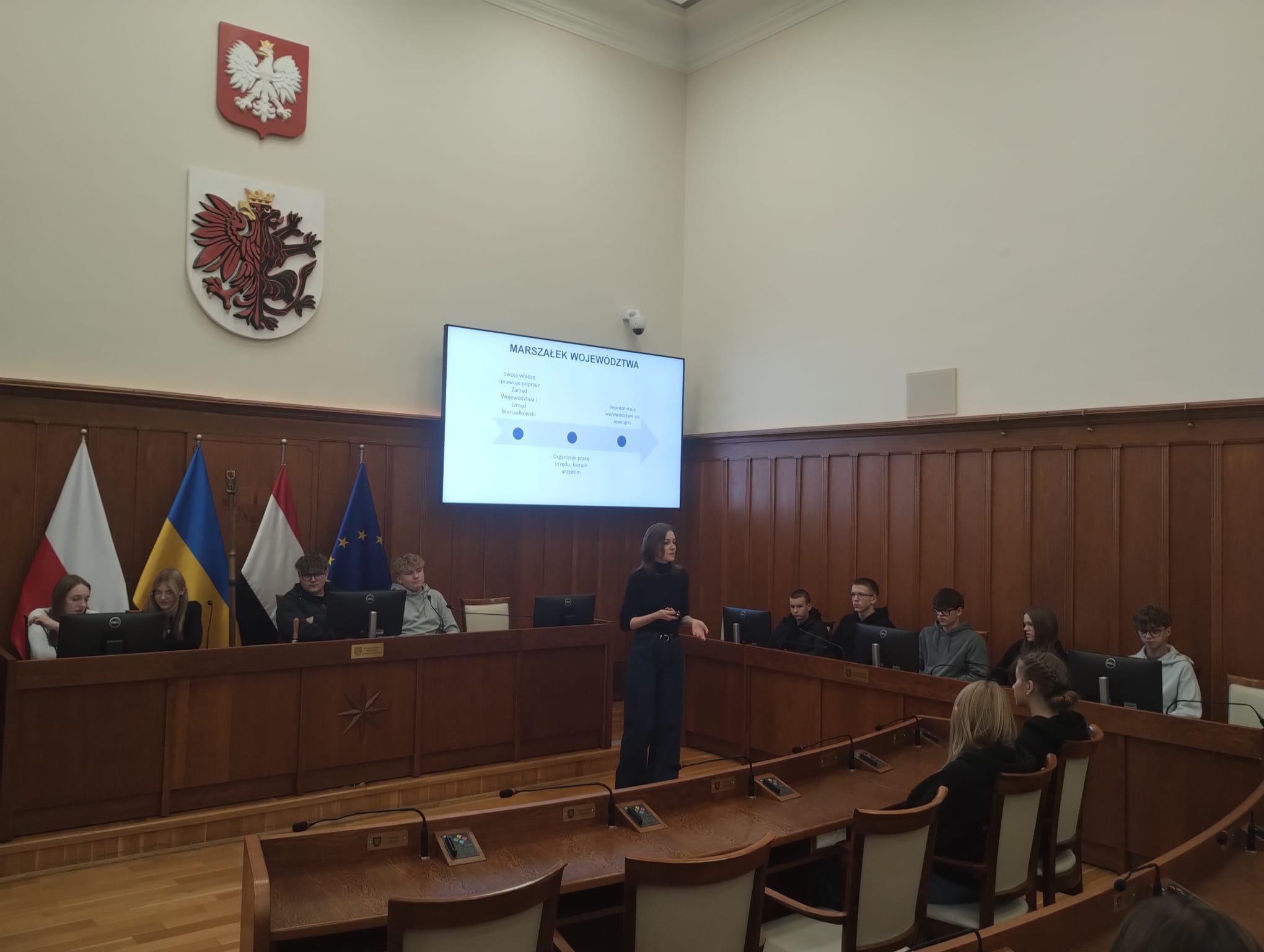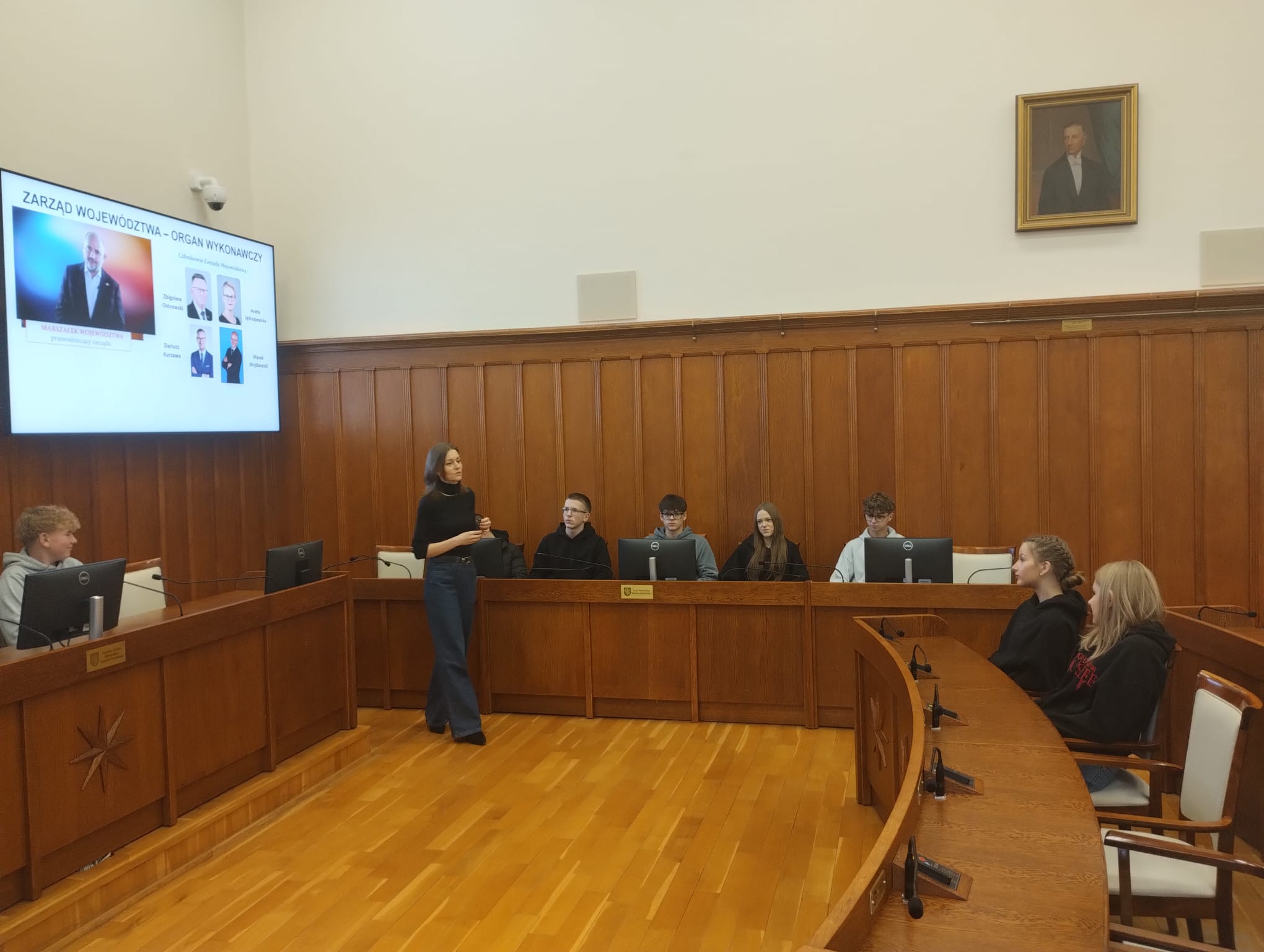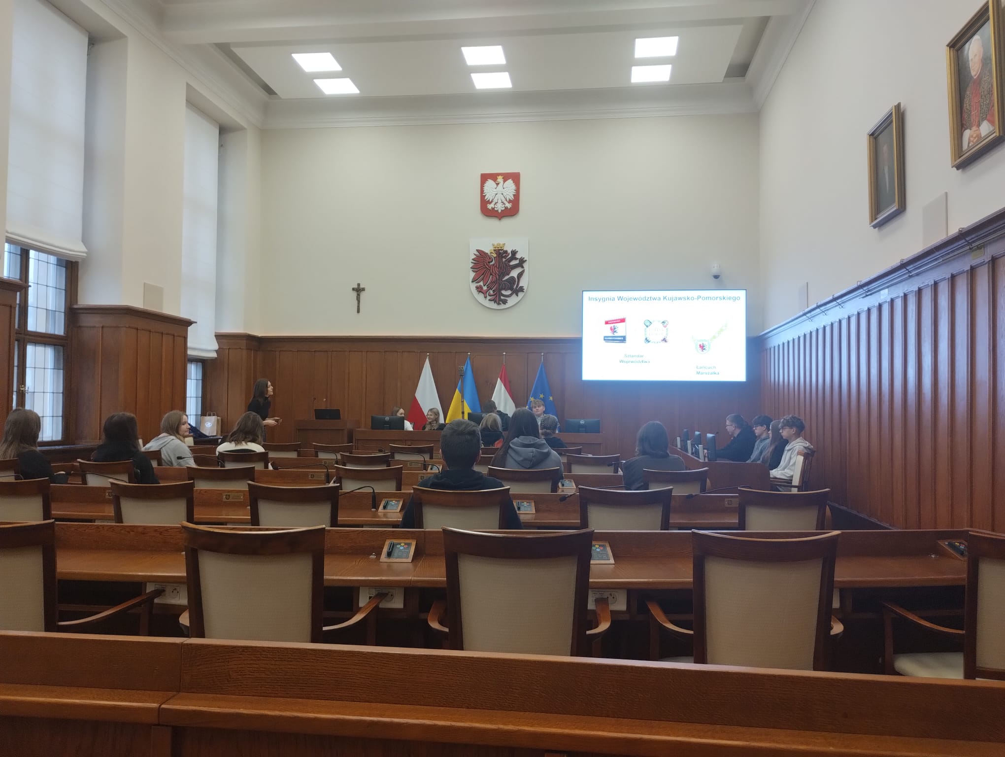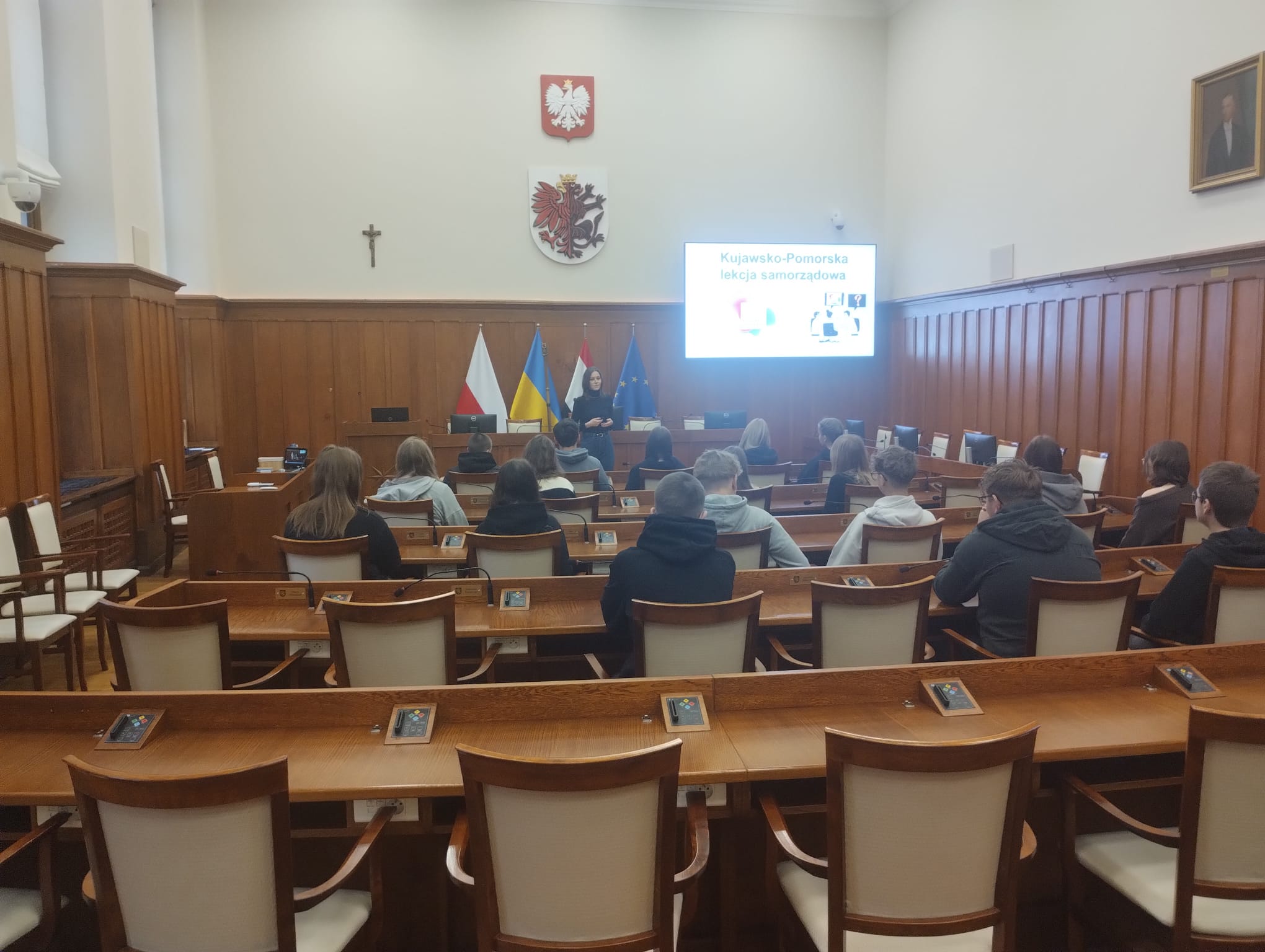 W dniu 18.11.2025 uczniowie klasy VIII Szkoły Podstawowej w Okalewie wzięli udział w ciekawych zajęciach poświęconych funkcjonowaniu samorządu województwa. Lekcja odbyła się w Urzędzie Marszałkowskim w Toruniu, gdzie uczniowie mogli poznać strukturę urzędu, zadania samorządu oraz pracę marszałka i jego współpracowników.