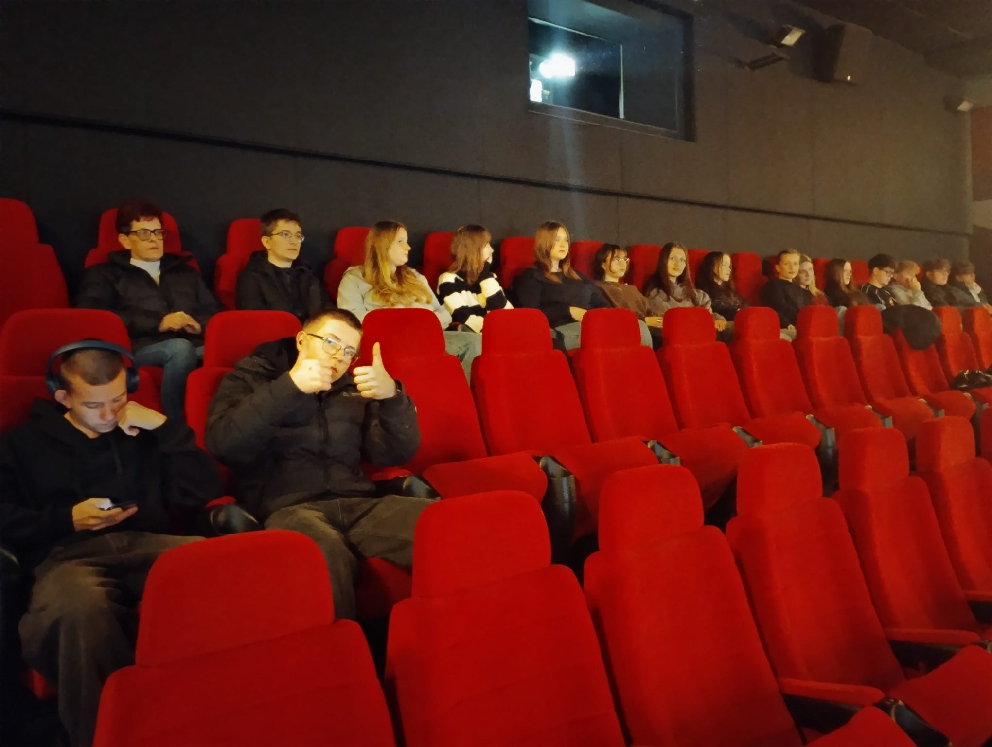 Po części edukacyjnej uczniowie udali się do kina Cinema City, gdzie obejrzeli wybrany seans filmowy. Wyjazd był nie tylko wartościową lekcją wiedzy o społeczeństwie, lecz także okazją do integracji i wspólnego spędzenia czasu.